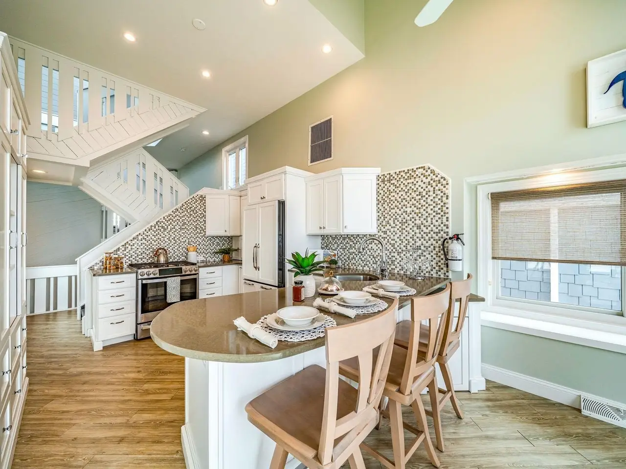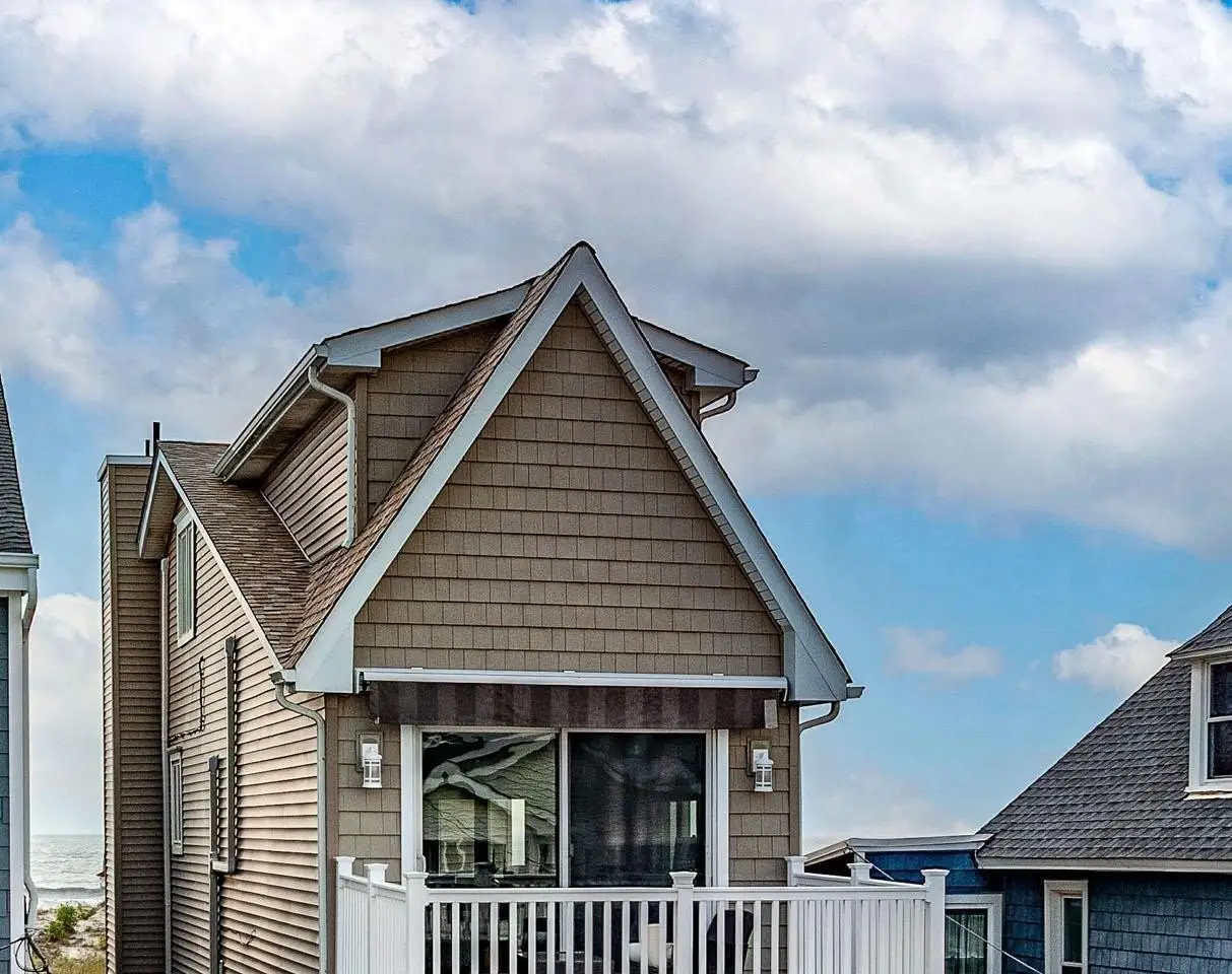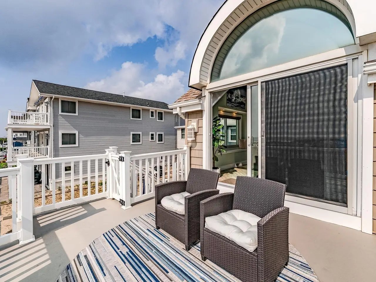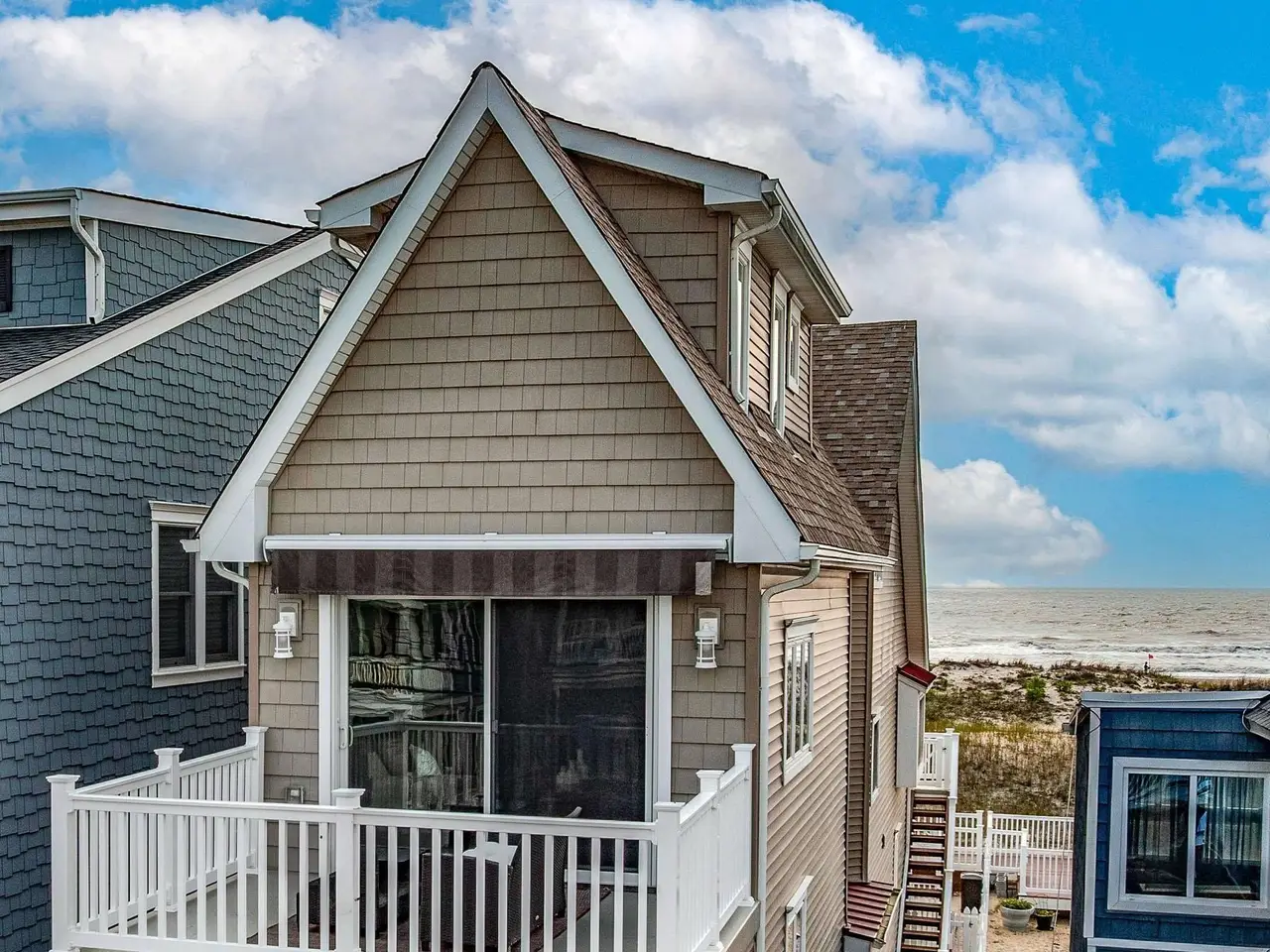 BEACHFRONT BEST BUY! From Brigantine to Cape May you will NOT find a more affordable single-family beachfront home along the South Jersey Shore coastline. Built on a unique 20 x 100-foot lot, this 2,200 square foot home is larger than most four bedroom, three bath condos and captures ocean views from multiple vantage points. Entering in the front door, you're greeted with the option of going up the steps or making a right into the ground floor bedroom complete with a full bath, that can be used as the primary bedroom if desired. Just off that bedroom is a covered deck. A few short steps up take you to another full bath that also services two more spacious bedrooms and some hall storage. Going up the stairs to the next level is the well-appointed kitchen with a cathedral ceiling, counter seating and an eat-in dining area. Step out onto the sweeping rear deck for panoramic ocean views during the day and star-gazing at night while enjoying the lights of the coastline. Up to the left is the sizable Living Room large enough to fit the whole family; featuring a big flat screen TV with Sonos Audio Technology, enough space to also include a sitting area with ocean views and complete with an expansive front deck great for happy hour as the sun sets, and covered by a retractable awning. The entire top floor hosts the Master Bedroom with an ensuite bathroom and multiple closets, including a walk-in closet. The split-level design utilizes all the space and gives this Beach House a comfortable flow while taking advantage of all the views and outdoor spaces that make Shore Living your Peace of Paradise. The ground floor area boasts parking for three cars, an oversized storage room, enclosed outside shower, outdoor staircase leading up to rear deck, patio-paver area for sunbathing and an elevated deck over the bulkhead for additional outdoor space when entertaining. This is your chance to buy that Beachfront Oasis in the South-end of Ocean City NJ. Easy to show. Call today for your private showing.