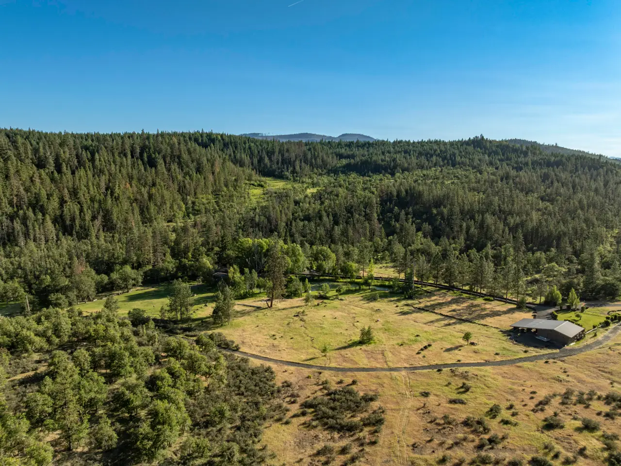 5 PARCELS INCLUDED - An opportunity to own property like this is almost never seen! Set above BIG BUTTE CREEK with more than 1,200ft OF LIVE WATER frontage, this 40-acre estate is bordered on 3 sides by over 7,000 ACRES OF PUBLIC LAND, creating an unmatched sense of privacy and access to recreation. The residence blends modern design with Northwest lodge character, centered on a dramatic great room with soaring ceilings, walls of glass, and a stone fireplace overlooking the creek and evergreens. The master suite is a private retreat with vaulted ceilings, dual baths, and patios perched above the water, while guest accommodations provide comfort for family and friends. Outdoor living is equally inviting with patios, decks, a newly finished pool, and a one HALF-ACRE POND with dock and pond house. Trails, gardens, and the surrounding public land extend opportunities for hunting, hiking, horseback riding, and YEAR-ROUND ADVENTURE on this ONE-OF-A-KIND SANCTUARY!