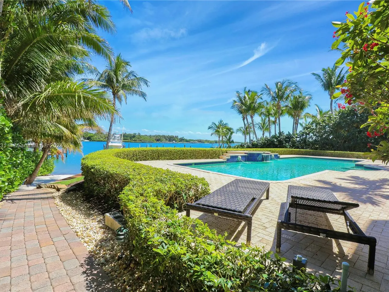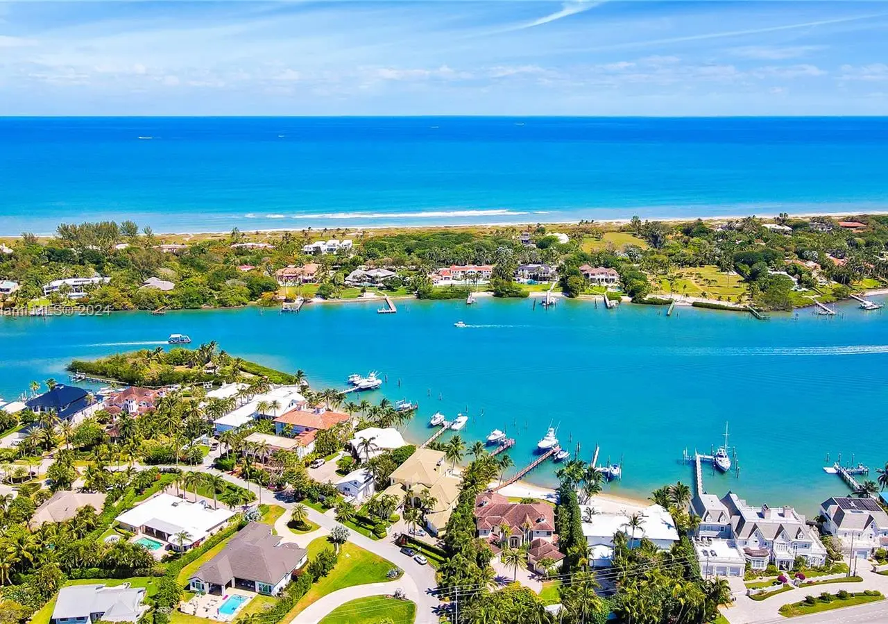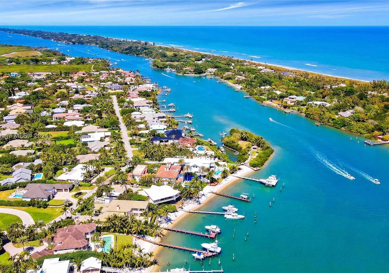 Absolutely stunning one-of-a-kind opportunity to own on the direct blue water Intracoastal in Martin County Jupiter/Tequesta encompassing .713 acres of gated privacy. This palatial estate home is custom designed and beautifully laid out for entertaining on a grand scale as well as family enjoyment. As you enter through the double doors into the two-story formal living room complete with gas fireplace and full wet bar will greet you with a wall of windows giving way to breath taking blue water views. The main level includes formal living, dinning, chef’s kitchen, family room/informal dinning, two en suite guest bedrooms, half bath, laundry, three-car garage. Second level boasts two sumptuous primary suites and baths with private balconies overlooking the intracoastal and another ensuite guest bedroom.