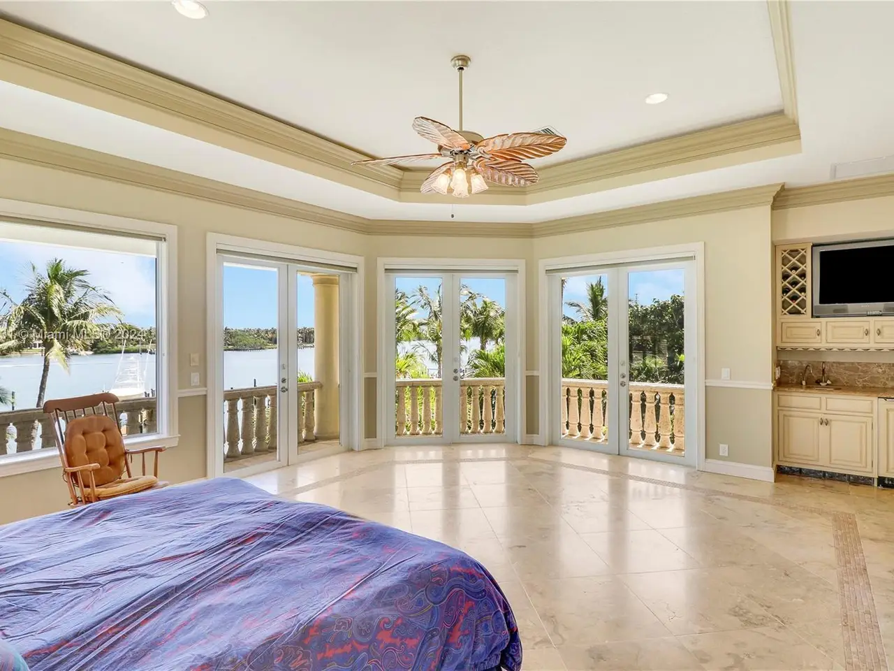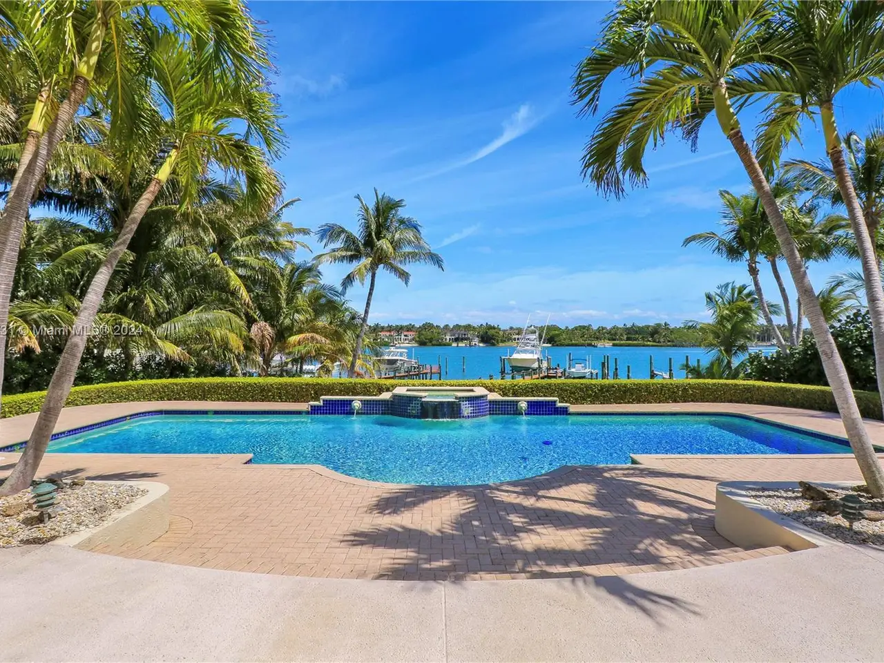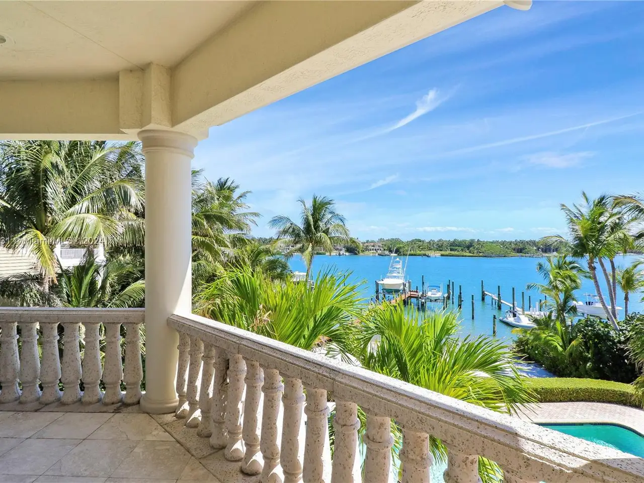 Absolutely stunning one-of-a-kind opportunity to own on the direct blue water Intracoastal in Martin County Jupiter/Tequesta encompassing .713 acres of gated privacy. This palatial estate home is custom designed and beautifully laid out for entertaining on a grand scale as well as family enjoyment. As you enter through the double doors into the two-story formal living room complete with gas fireplace and full wet bar will greet you with a wall of windows giving way to breath taking blue water views. The main level includes formal living, dinning, chef’s kitchen, family room/informal dinning, two en suite guest bedrooms, half bath, laundry, three-car garage. Second level boasts two sumptuous primary suites and baths with private balconies overlooking the intracoastal and another ensuite guest bedroom.
