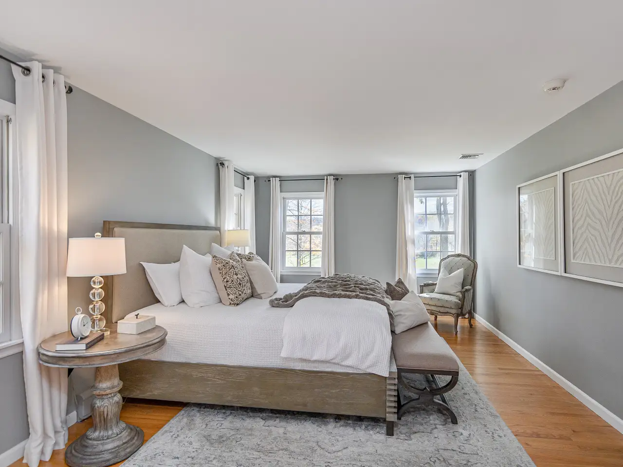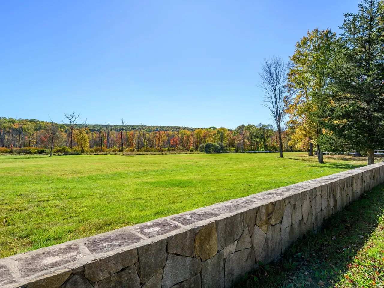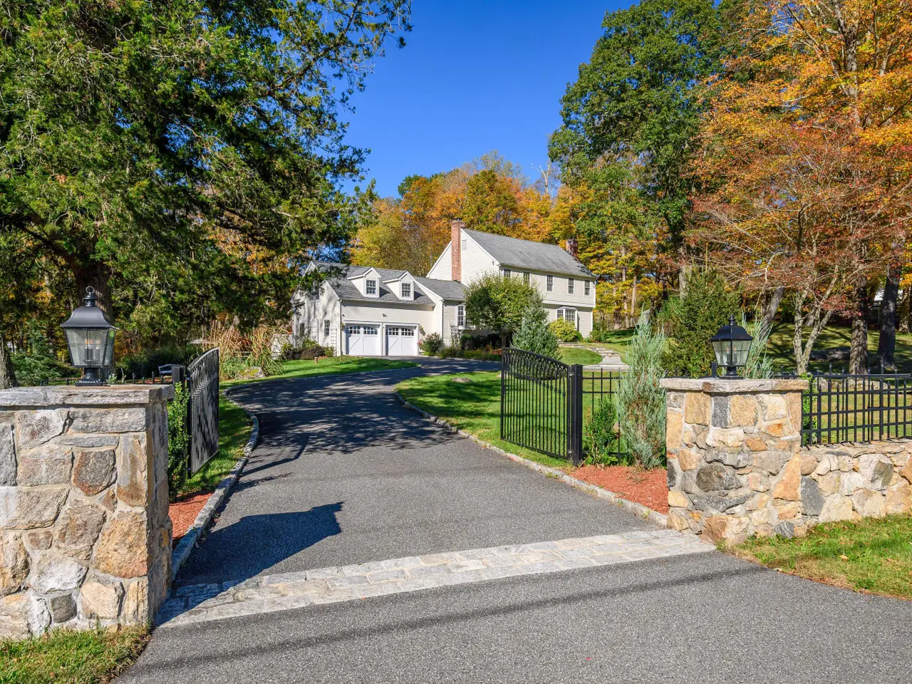 Quintessential Connecticut. Drive past estates on a country lane to be greeted by stone pillars, iron gates, professionally designed stone walls & a Belgian block lined circular driveway. An unparalleled setting of mature trees & a sweeping pastoral view just across the way. Step inside to discover a sophisticated yet relaxed country retreat ideal for weekend getaways or year-round living. Timeless character is evidenced by the bay windows with built-in seating, making the perfect spot for curling up with a book. Entertain friends in the step-down family room with a dramatic two-story brick fireplace where the sounds and smells of crackling wood can be enjoyed. Outdoor living takes place on the covered screened porch and adjacent spacious deck. Head upstairs to find a worthy primary suite that embraces a professionally designed walk-in dressing room/closet with built-ins leading to a designer bath. Do not miss the 5th bedroom over the garage, hosting a full bath, ideal for in-laws or weekend guests. Heated in-ground pool in a private, fully fenced-in park-like setting on over 5 acres. It is ideally located minutes to the sought-after quaint downtown of Ridgefield, offering charming boutiques, restaurants, the Ridgefield Playhouse, museums, a nearby golf course, award-winning schools, and so much more. The nearby equestrian center elevates the living experience at a home you will cherish forever.