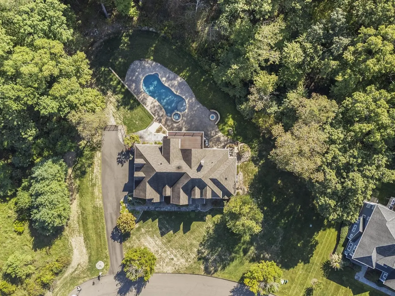 Nestled in the premier Farm River Estates, this stunning residence offers a peaceful cul-de-sac setting surrounded by woodlands. From the moment you enter, you'll be captivated by the custom millwork, tray ceilings, crown molding, and raised panel wainscoting that define the home's craftsmanship. The state-of-the-art chef's kitchen is a showpiece, featuring Wolf and Sub-Zero appliances, a granite island, spacious countertops, and a sunlit breakfast nook. A main-level primary suite provides the ultimate retreat with a cozy fireplace, dual walk-in closets, and a spa-inspired bath complete with heated marble floors, whirlpool tub, and tropical rain shower. The expansive grounds are a masterpiece in themselves, showcasing architect-designed stone walls, curated plantings, and a full irrigation system-all surrounding a beautiful inground pool with a waterfall feature. Entertain with ease thanks to a fully equipped outdoor kitchen, perfect for summer gatherings. The home also boasts an additional 2,500 sq ft walkout lower level-not reflected on the property card-offering endless possibilities for recreation, fitness, a media room, or multigenerational living, with seamless access to the outdoors. Modern conveniences abound, with central vac, a home audio system, video surveillance, and laundry on both levels. Every detail has been thoughtfully curated-only the best has gone into this fine home. Conveniently located near Yale, shopping, Rt.15 and award-winning school system!
