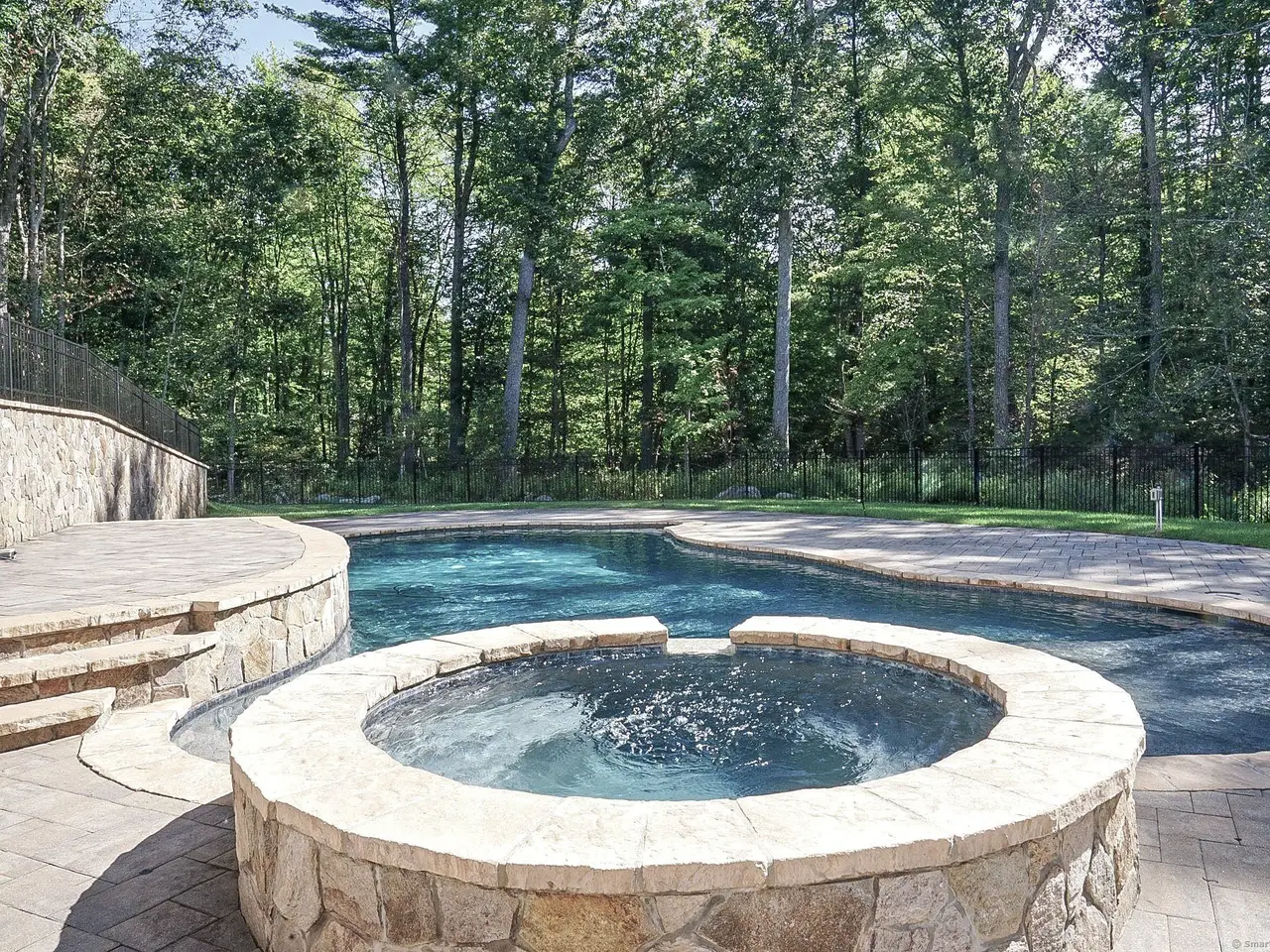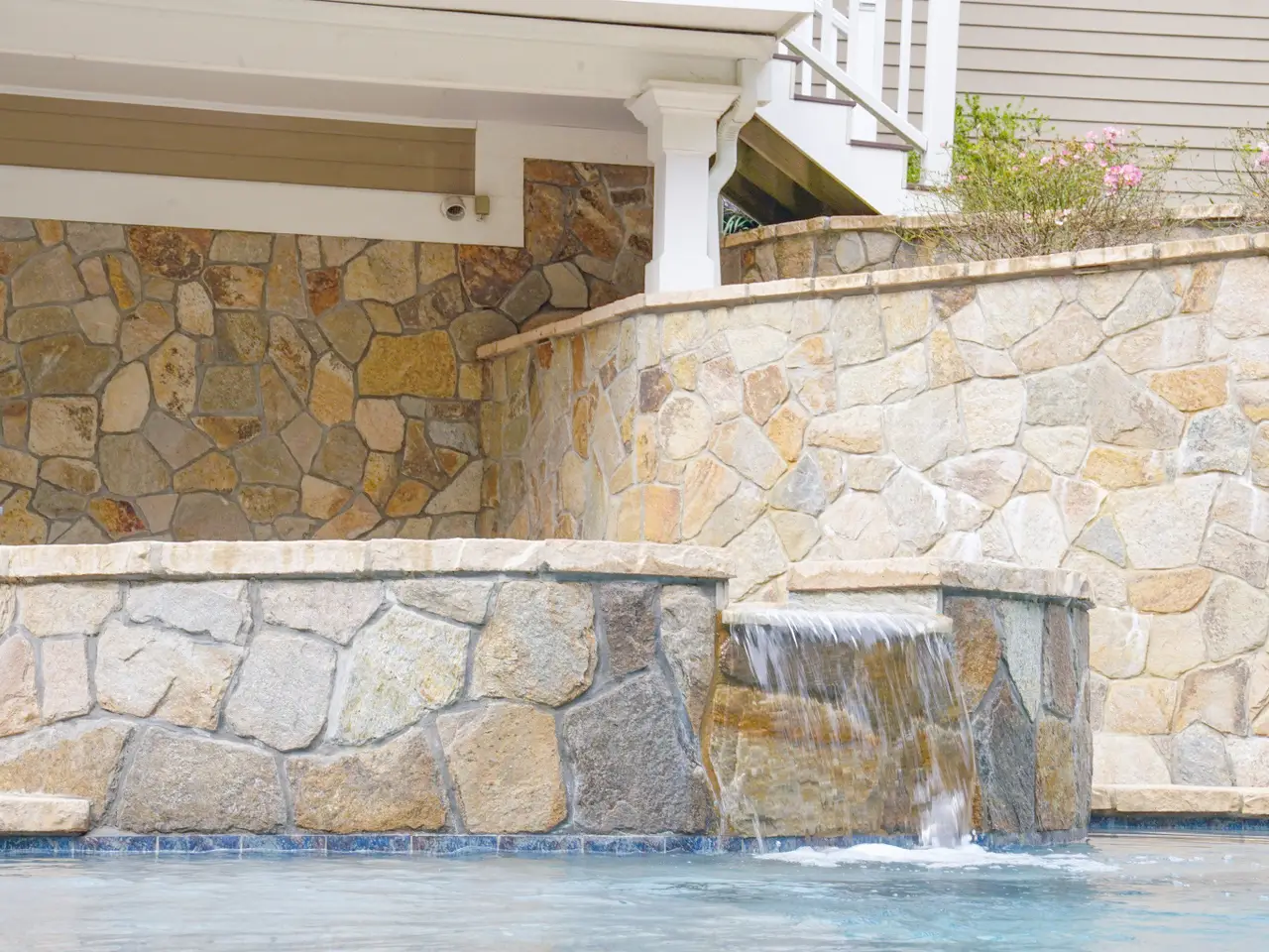 • Architect-designed stone walls and inground pool