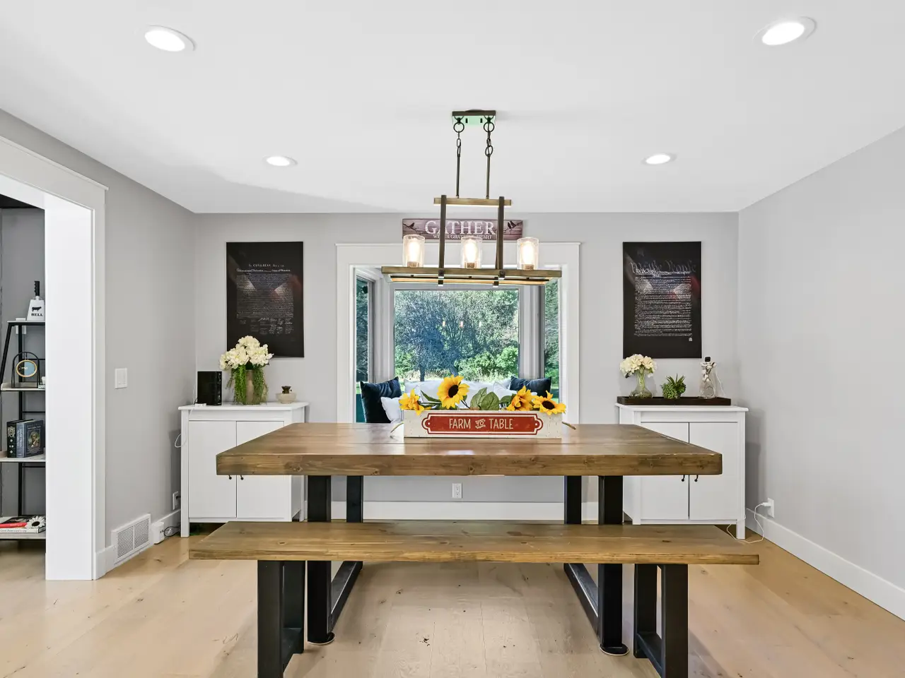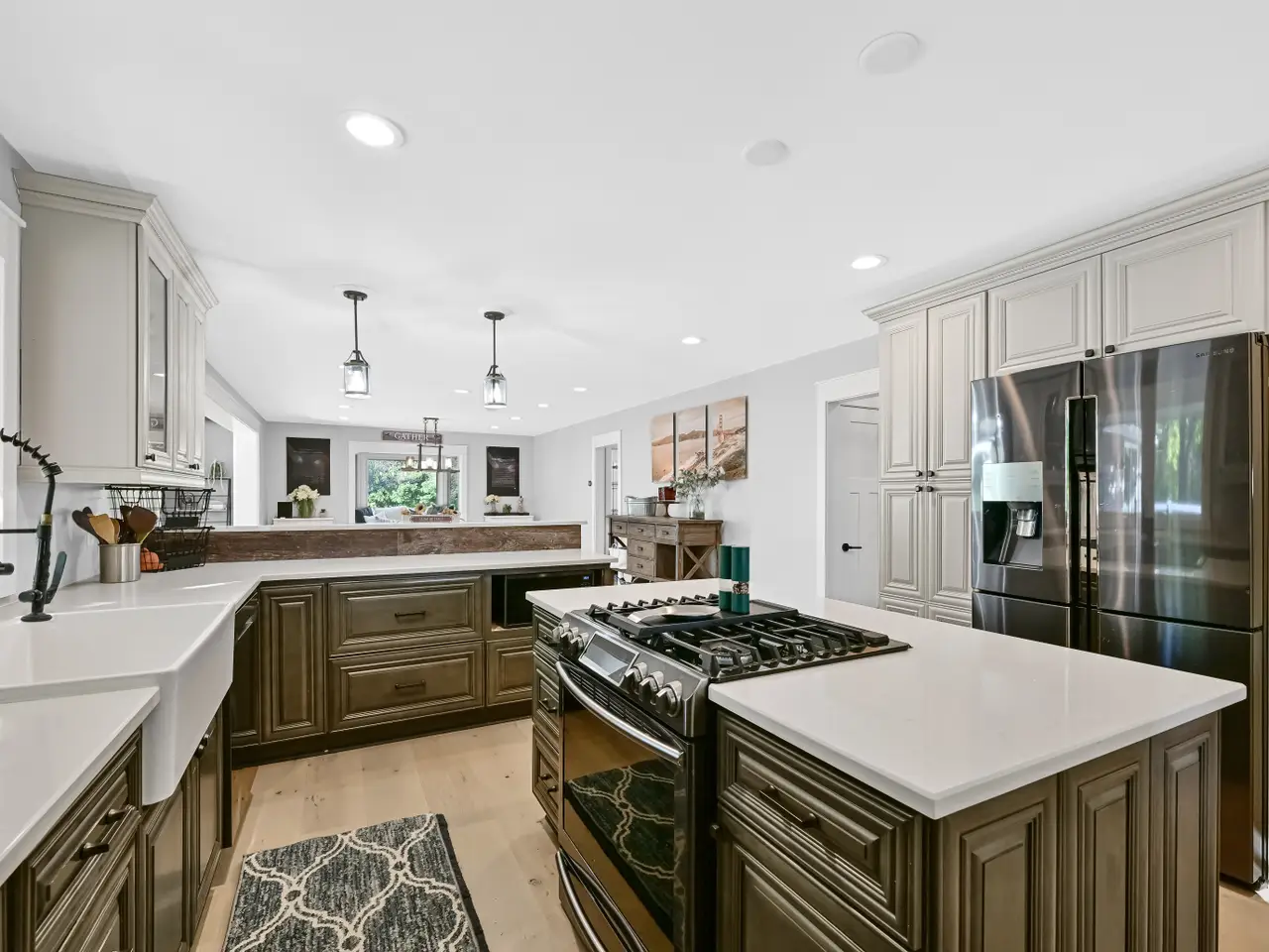 30-ACRE OUTDOOR PARADISE WITH COUNTRY CHARM! Rare find in Pleasant Prairie - 30 acres of privacy with a spring-fed pond, hay fields, wetlands, and multiple pole barns. This fully remodeled two-story farmhouse blends high-end finishes with rustic warmth. The chef's kitchen boasts a large island, custom cabinetry, and abundant storage, opening to an inviting dining area and living room. Enjoy the cozy family room with stone fireplace and beamed ceilings, or unwind in the spa-like primary suite with tiled shower. Relax on the deck at sunset or explore wooded trails teeming with wildlife. Easement on 28th allows potential to split or develop.