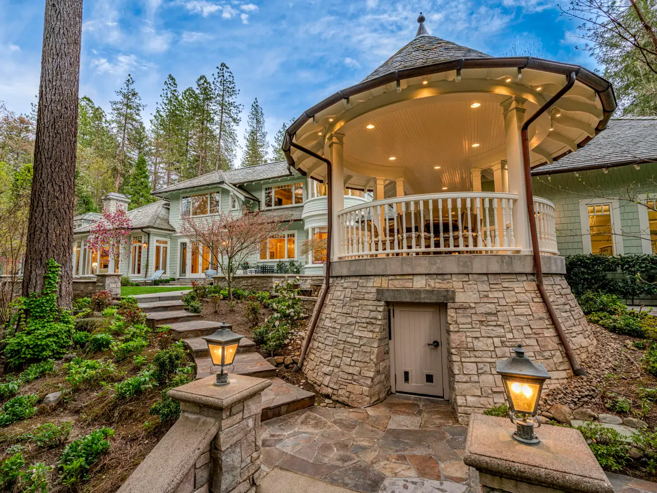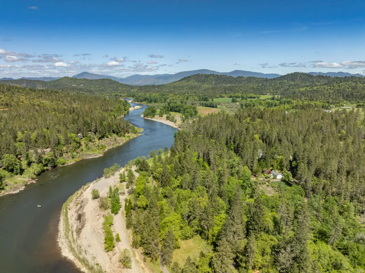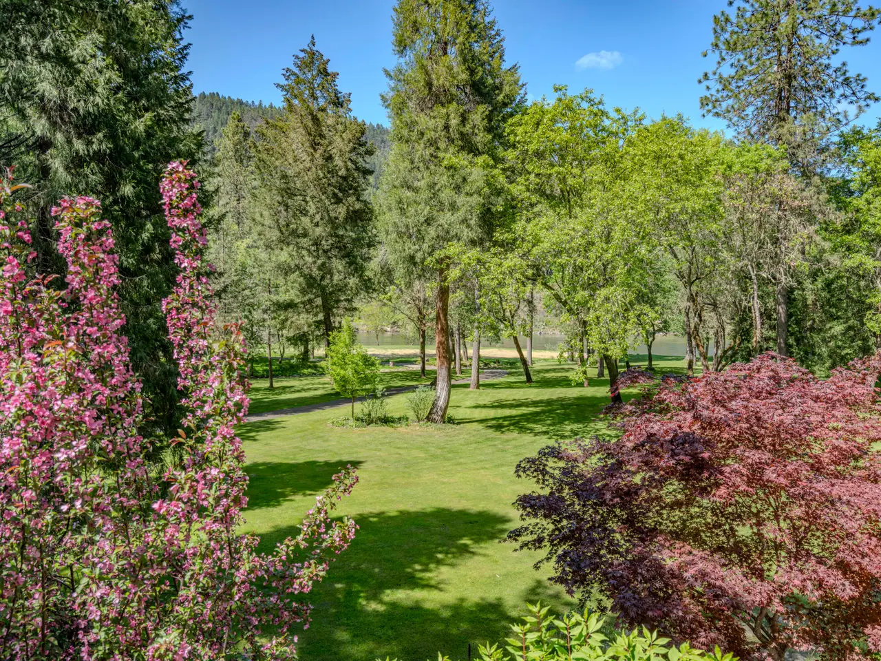 For the first time, this distinguished riverfront estate is made available for purchase. Greeted by a European-inspired bridge & water features, this exquisite English Country estate is elevated above & within the Wild & Scenic section of the Rogue River. Designed by Mike Casella, it blends Arts & Crafts details with Victorian elegance. Highest quality materials & craftsmanship throughout including imported slate roof, hand-carved Carrara marble fireplaces, & custom millwork. A well-appointed chef's kitchen, butler's pantry, root cellar, conservatory, library, main level primary suite with baja & steam showers, dressing room w/ extensive built-ins, and three vanities. Lush and irrigated, year-round color with 1000's of plantings. Numerous water features, 15000 SF garden w/ orchard, berries & vines. Detached gym/home office, finished 3 car garage, barn w/guest quarters, and private riverfront park.
