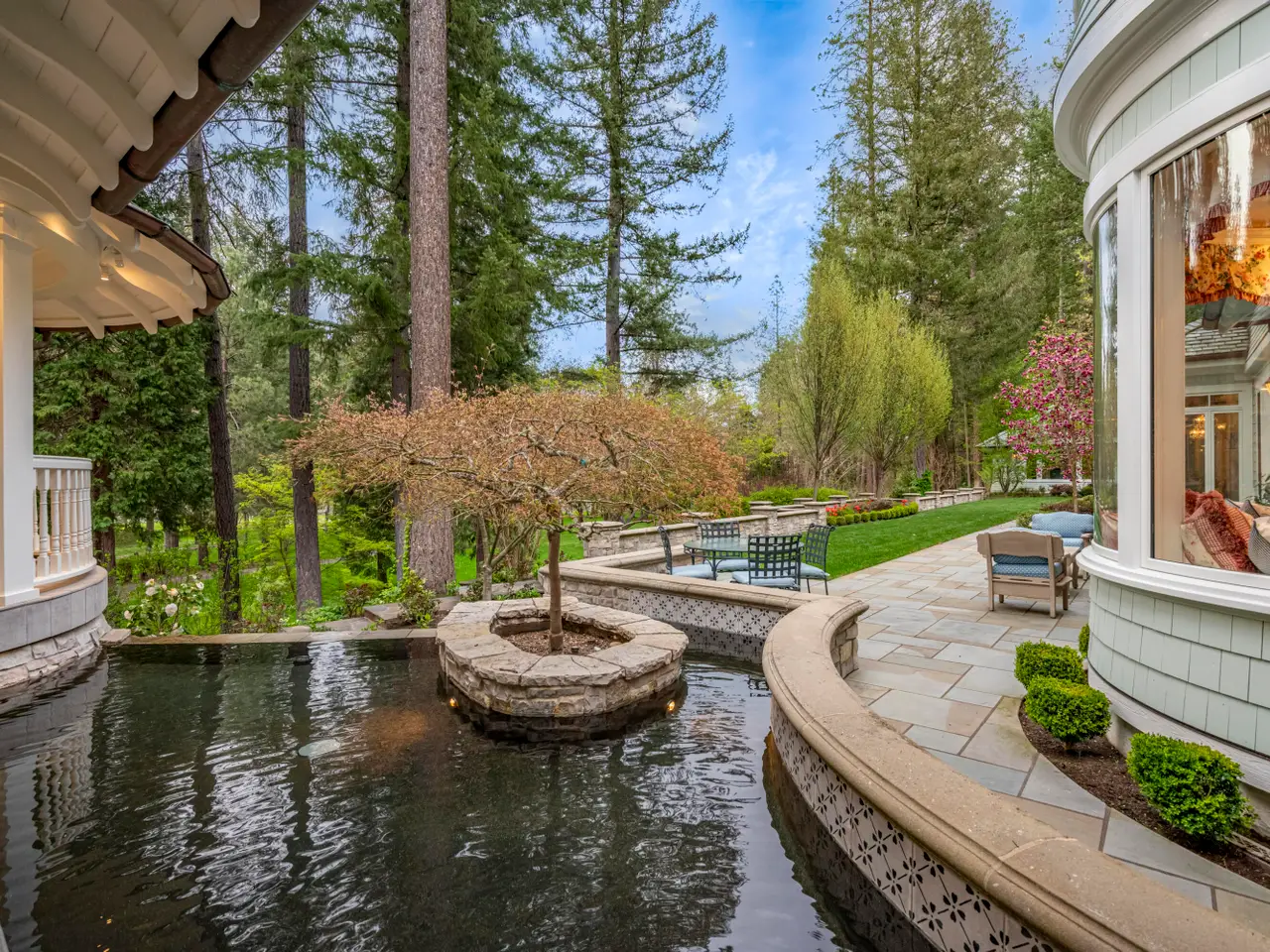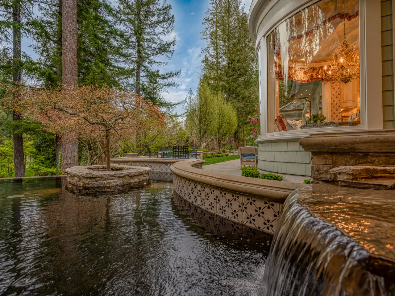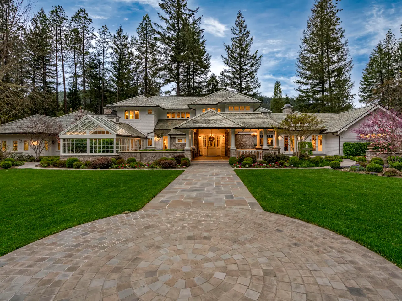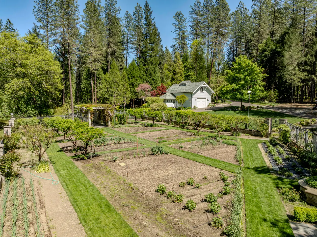 For the first time, this distinguished riverfront estate is made available for purchase. Greeted by a European-inspired bridge & water features, this exquisite English Country estate is elevated above & within the Wild & Scenic section of the Rogue River. Designed by Mike Casella, it blends Arts & Crafts details with Victorian elegance. Highest quality materials & craftsmanship throughout including imported slate roof, hand-carved Carrara marble fireplaces, & custom millwork. A well-appointed chef's kitchen, butler's pantry, root cellar, conservatory, library, main level primary suite with baja & steam showers, dressing room w/ extensive built-ins, and three vanities. Lush and irrigated, year-round color with 1000's of plantings. Numerous water features, 15000 SF garden w/ orchard, berries & vines. Detached gym/home office, finished 3 car garage, barn w/guest quarters, and private riverfront park.