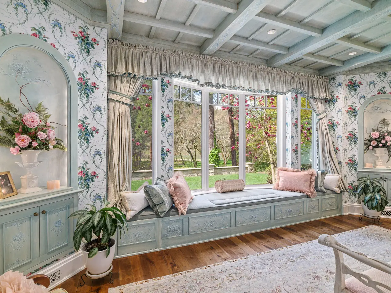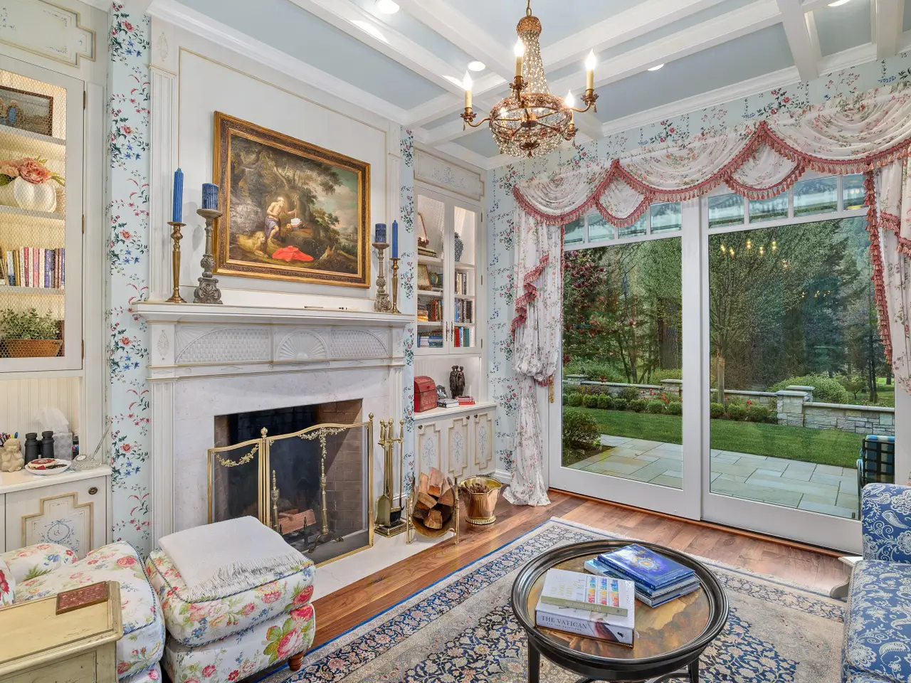 • Hand-carved Carrara marble fireplaces