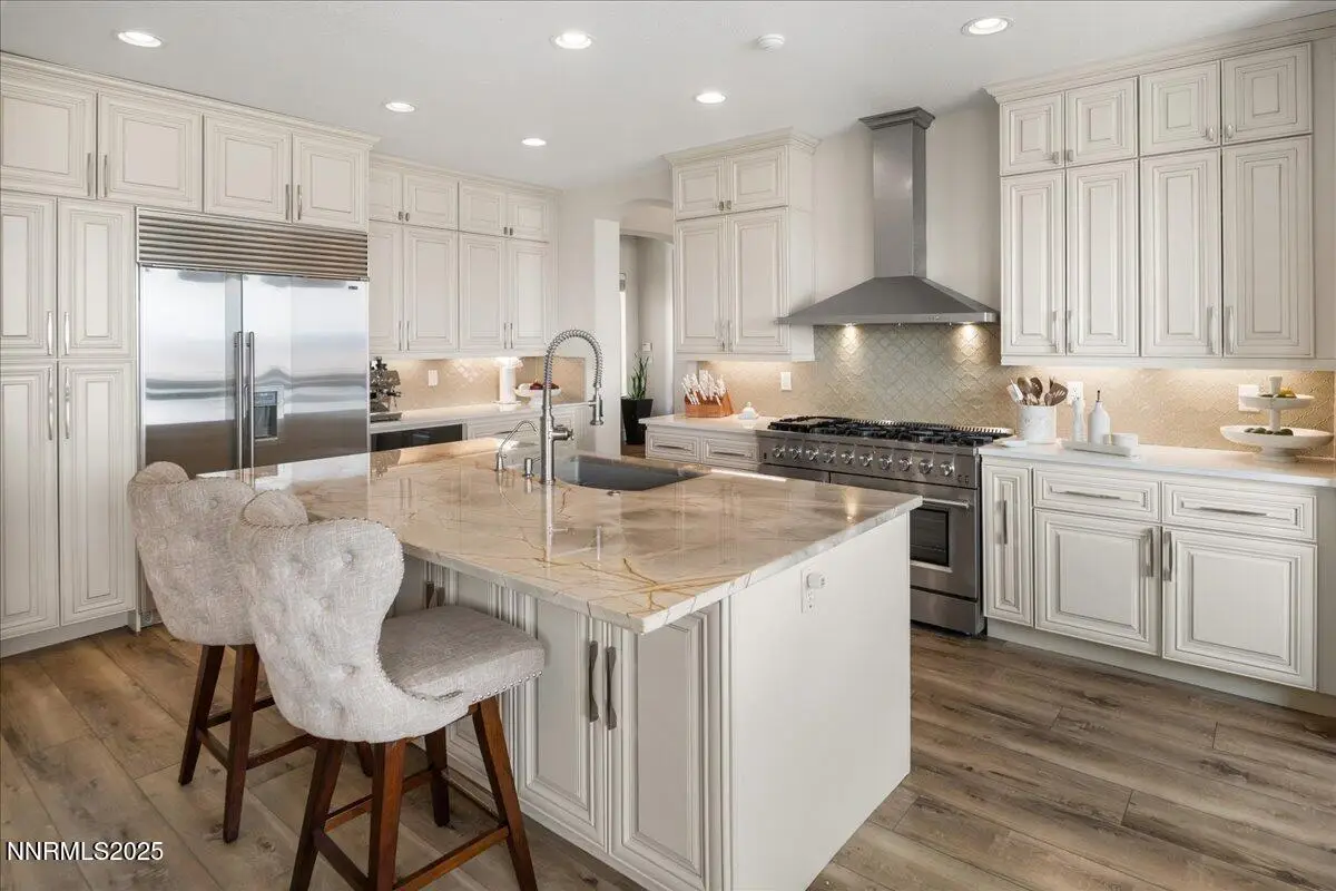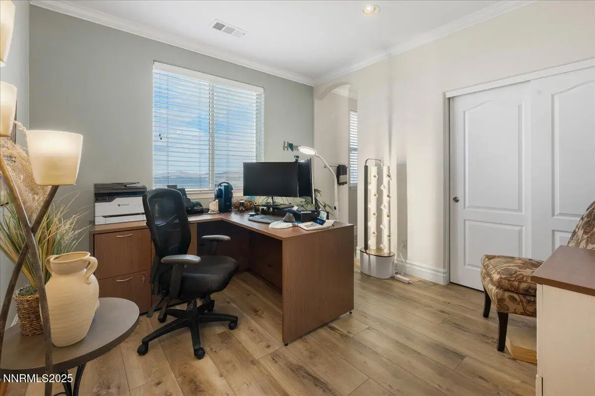 6080 Cour Saint Michelle — Panoramic City Views in ArrowCreek Set at the end of a quiet cul-de-sac in prestigious ArrowCreek, this designer-remodeled home captures sweeping views of city lights, the ArrowCreek golf course, and Mt. Rose. The main level offers a spacious primary suite with spa-like bath and two guest rooms, creating the ideal layout for modern single-level living. A chef's kitchen features a Sub-Zero refrigerator, double ovens, smart appliances, custom cabinetry, and new luxury vinyl plank flooring. The lower level is made for entertaining and recreation with three bedrooms, an exercise room, and a versatile bonus space. Perfect for hosting friends, workouts, or movie nights, it combines comfort and flexibility. Two private offices with hard-wired access, whole-home Wi-Fi, and a new water purification system add everyday convenience. Outdoor living includes extended driveway parking, a three-car garage, and patios and balconies framing mountain, valley, and city-light vistas. Direct trail access opens to miles of open space. Within ArrowCreek, residents enjoy resort-style amenities — two championship golf courses, pools, fitness centers, tennis and pickleball, dining, and a vibrant social calendar — all just 30 minutes to Mt. Rose, 40 minutes to Lake Tahoe, and minutes to Reno's top schools, shopping, dining, and the airport. At 6080 Cour Saint Michelle, luxury, convenience, and natural beauty come together seamlessly.