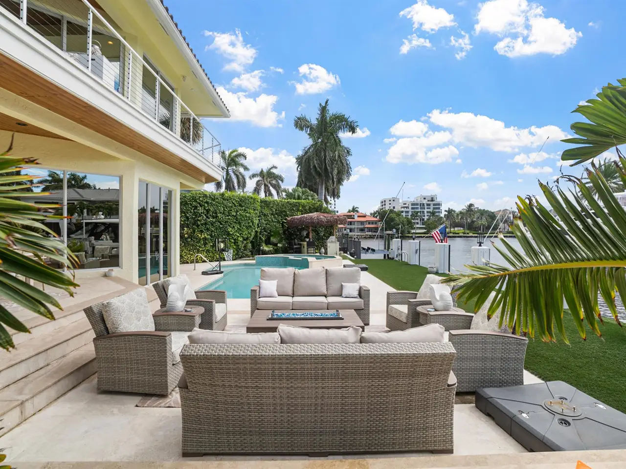 Waterfront Masterpiece with Intracoastal Views Stunning home with panoramic Intracoastal views and extra-wide canal! Dock up to a 100' yacht. Features include impact glass, resort-style pool and spa, tiki bar, large turfed backyard, and southern exposure for all-day sun. Spacious outdoor living areas perfect for entertaining. Interior showcases a gourmet chef's kitchen and designer finishes throughout. Offered turn-key furnished for rent. Shows like a model--inside and out. Available for rent: Annual: $27,000/month or 6-month minimum: $35,000/month
