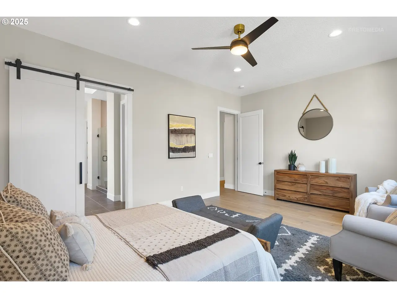 Primary suite with luxurious finishes and walk-in closet
