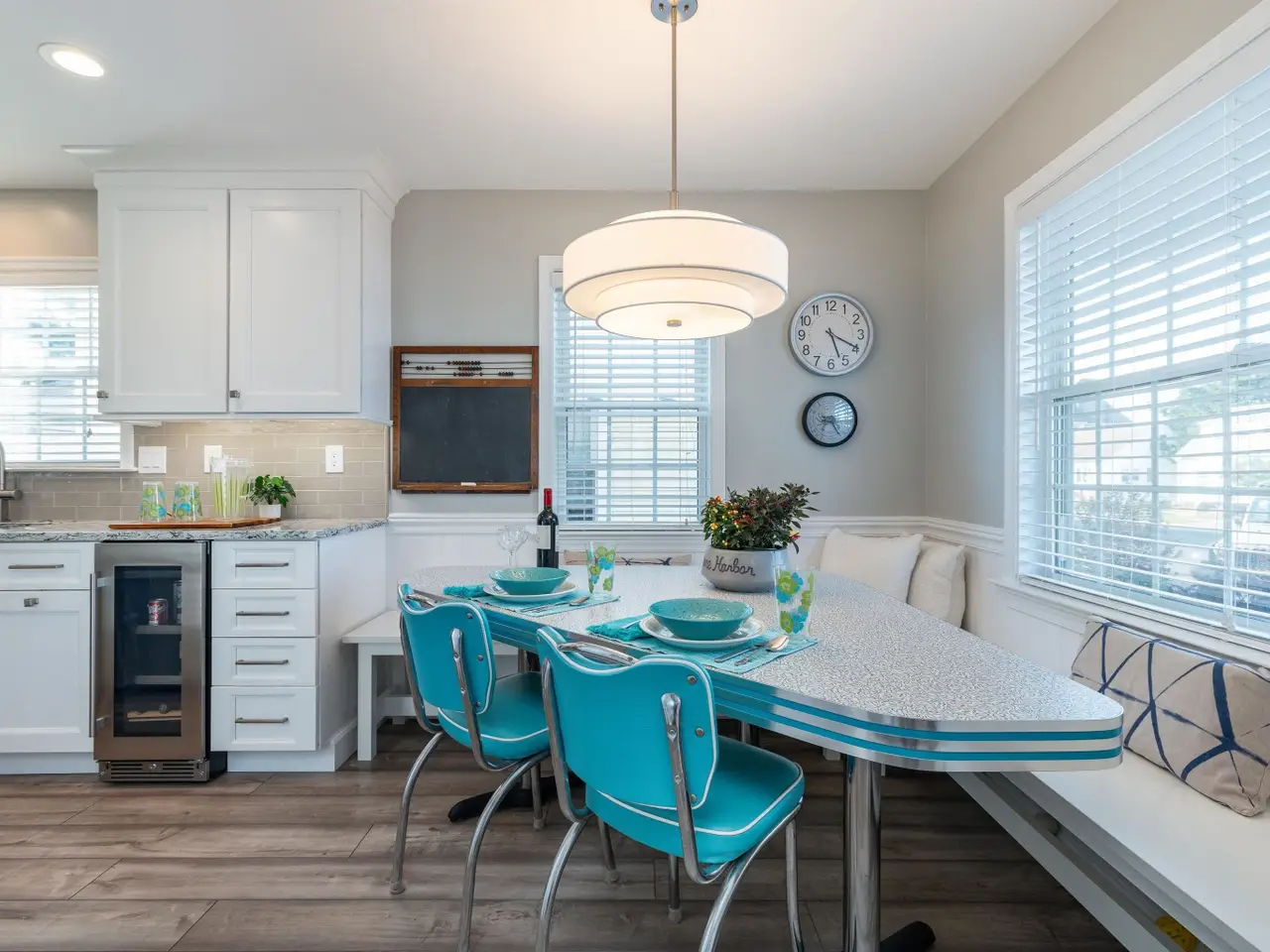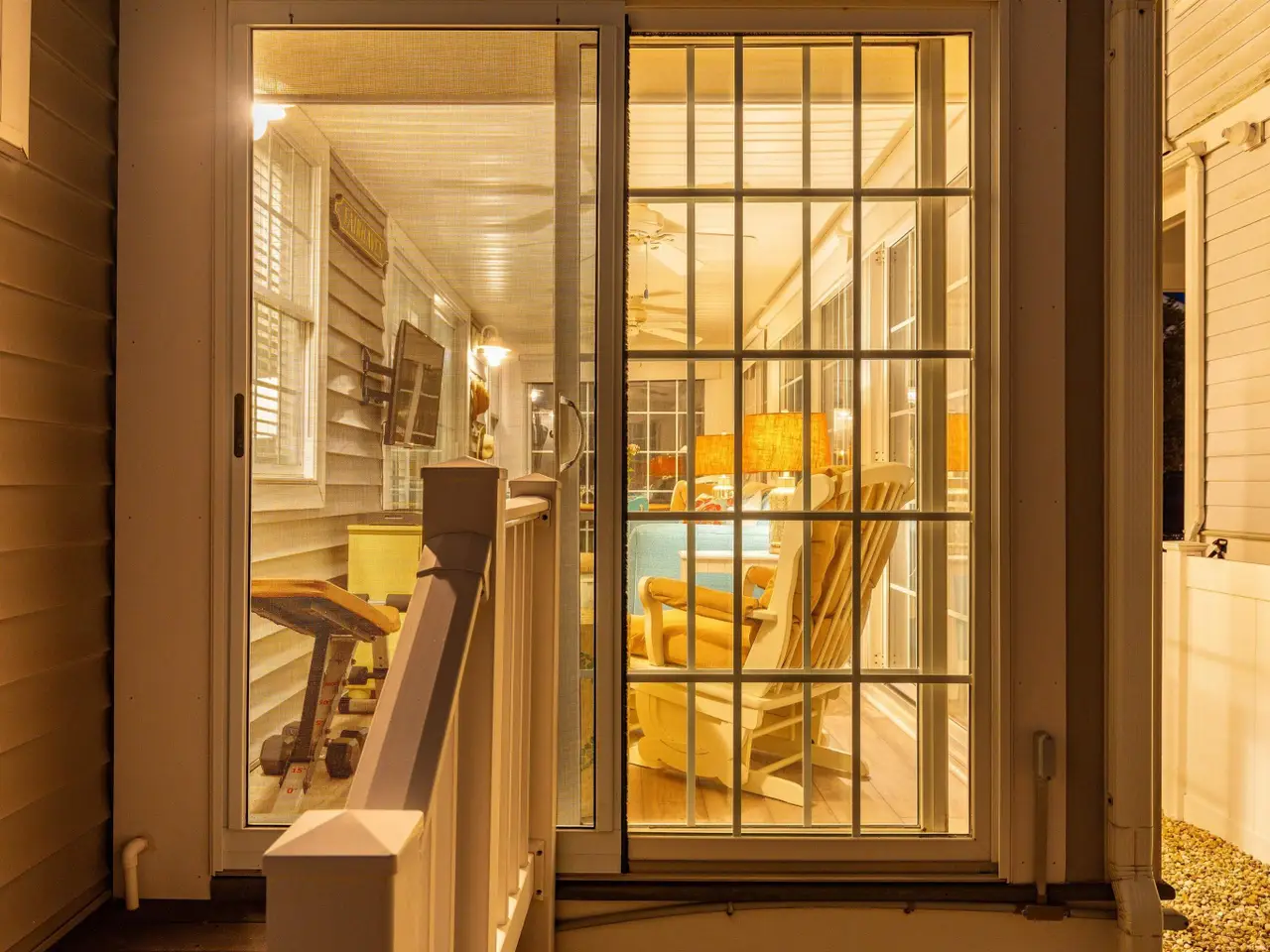 Discover this move-in-ready single-family home in the highly desirable South End of Stone Harbor. Built in 2002 and designed for easy first-floor living, this property on wide 110th street offers comfort, safety, and accessibility for every stage of life. The first floor features a spacious custom kitchen updated by Ocean Interiors in 2023 with white cabinetry, Cambria quartz countertops, generous storage, and perfectly hidden washer/dryer. Gourmet appliances, including a wine cooler, make it ideal for a cook's lifestyle, and the custom dining table with built-in bench seating and wainscoting maximizes space for gatherings with style. The inviting family room includes an entertainment area and opens to an expansive glass-enclosed, heated and screened porch with solar shades, two ceiling fans, and a wall-mounted TV-perfect for entertaining or cozy evenings year-round. Two slider white plantation doors were installed to separate the porch for privacy and shade as needed. Take the beautifully white wainscoted central staircase to the second level which offers three bedrooms, including a light-filled primary suite with vaulted ceiling and private full bath. Two additional bedrooms with side-by-side twin beds share a full hall bathroom, while an office alcove provides slider access to a north-facing porch shared with the primary suite. This elevated outdoor space is a private retreat where you can enjoy ocean breezes after work or before bedtime. Outside, there is a welcoming entry with a wide paver walkway, bilateral railings, The property features manicured Belgian block flower beds, a gated rear yard for privacy and safety, and a rear patio complete with outdoor shower, dining area, and a home grown vegetable garden. With two-zone heating and thoughtful architectural details, this home is both functional and charming. The location is one of the best in Stone Harbor's South End. Just steps from the bay and ocean, you'll find surfing at Nuns' Beach, swimming at the guarded 111th Street beach, and kayak access from 114th Street by the Bird Sanctuary. Chelsea Place playground, and downtown shops and dining are all nearby, making this a true South End gem. This is a rare opportunity to own a turn-key Stone Harbor home that blends easy living with coastal charm, modern updates, and an ideal location. Offered furnished with exclusions list. Note: Foundation and a few studs from one wall retained from original build in 1955.