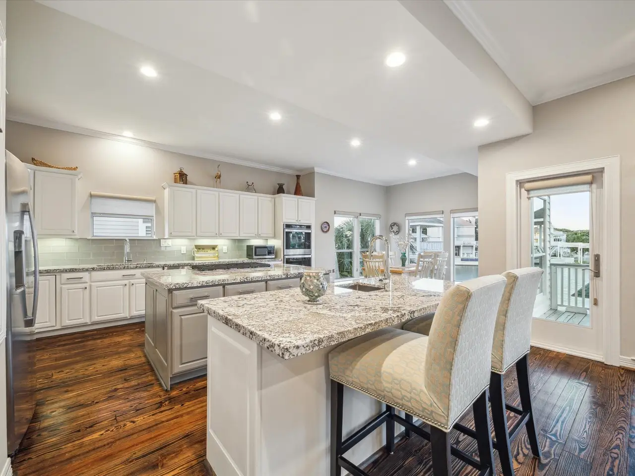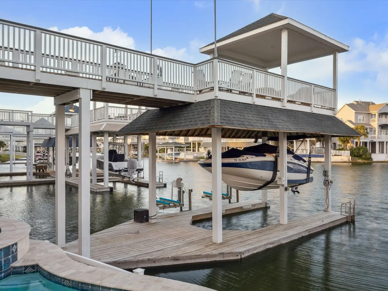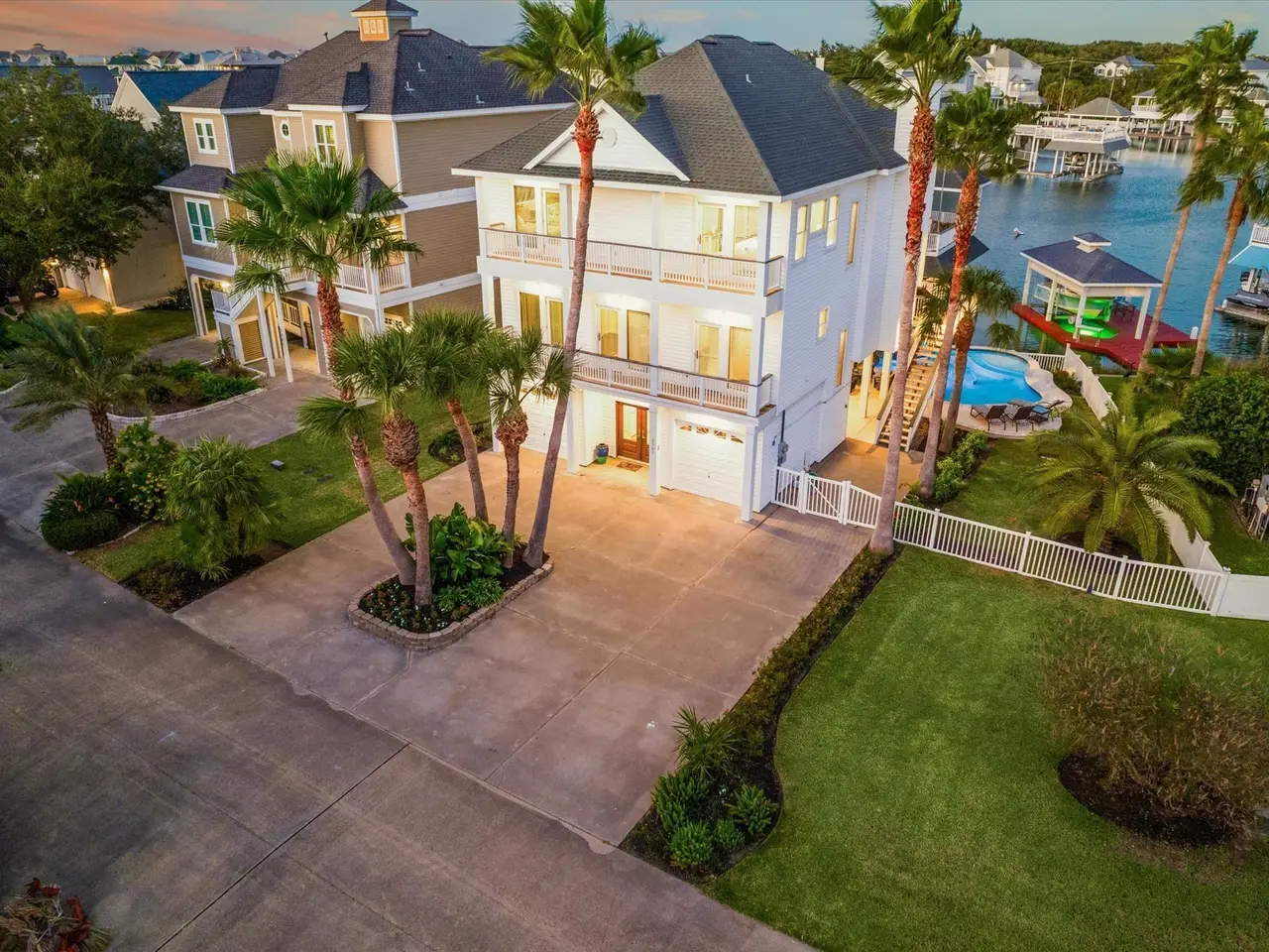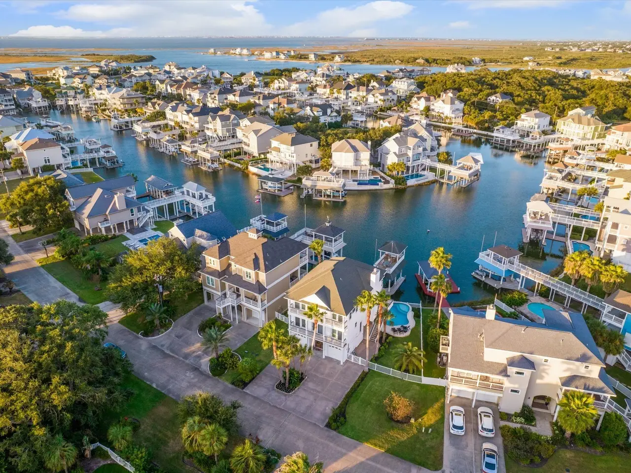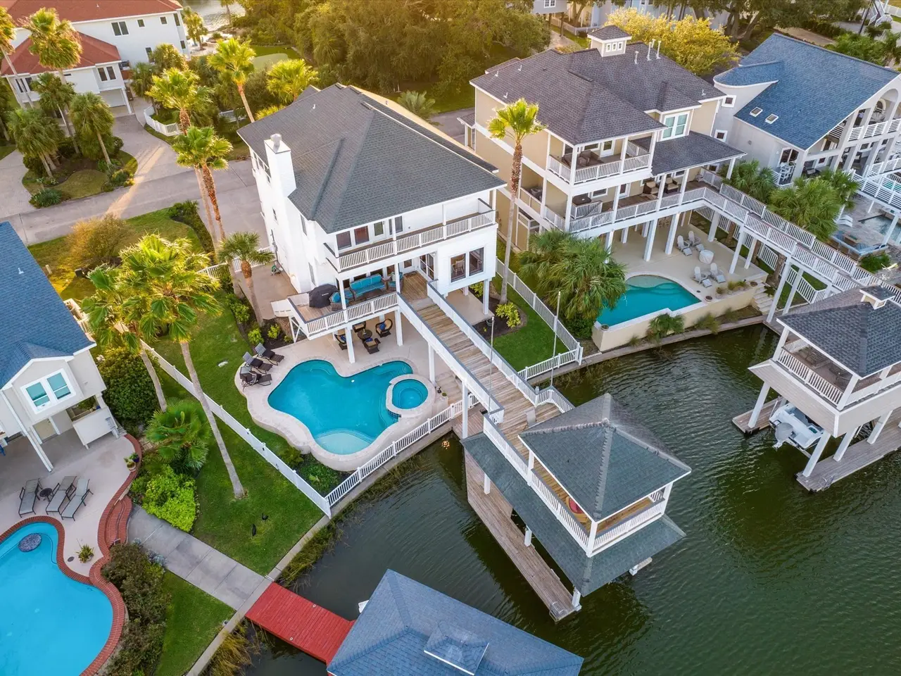 Welcome to your dream retreat in prestigious Laffites Cove, Galveston, where luxury meets coastal living. This beautifully updated home on a wide oxbow offers breathtaking views & southerly breezes, w/glimpses of Galveston Bay. Inside, 1” solid hardwood floors flow throughout spacious open plan, featuring 4 generous bedrooms, each w/its own ensuite bath, ensuring comfort & privacy. The gourmet kitchen is perfect for culinary enthusiasts, while the outdoor oasis including pool & spa invites relaxation & entertaining amidst beautifully landscaped grounds. Elevator capable to all 3 floors. This prime location is at the highest elevation in Laffites “The Ridge”. Located near the Galveston Country Club w/all its amenities & a golf cart ride to Pirates popular beaches, this exquisite property is the perfect blend of elegance & coastal charm. Social membership to Galveston Country Club transfers w/property. Don’t miss your chance to call this luxurious home your own! All info per Seller.