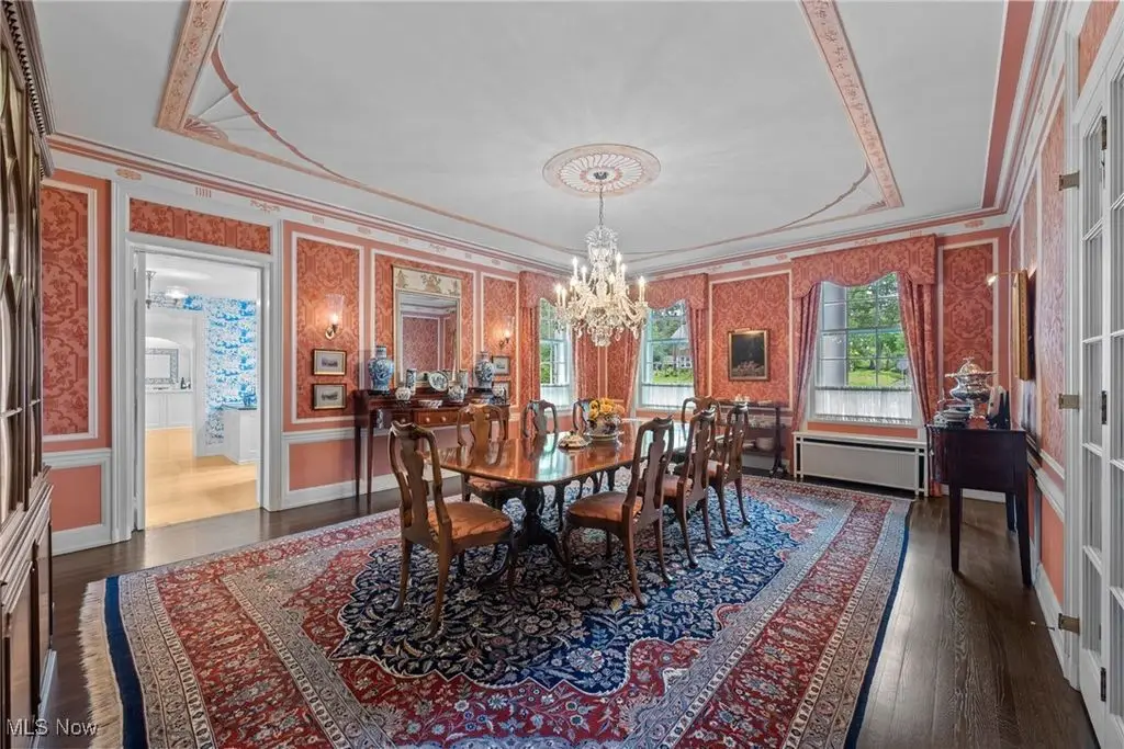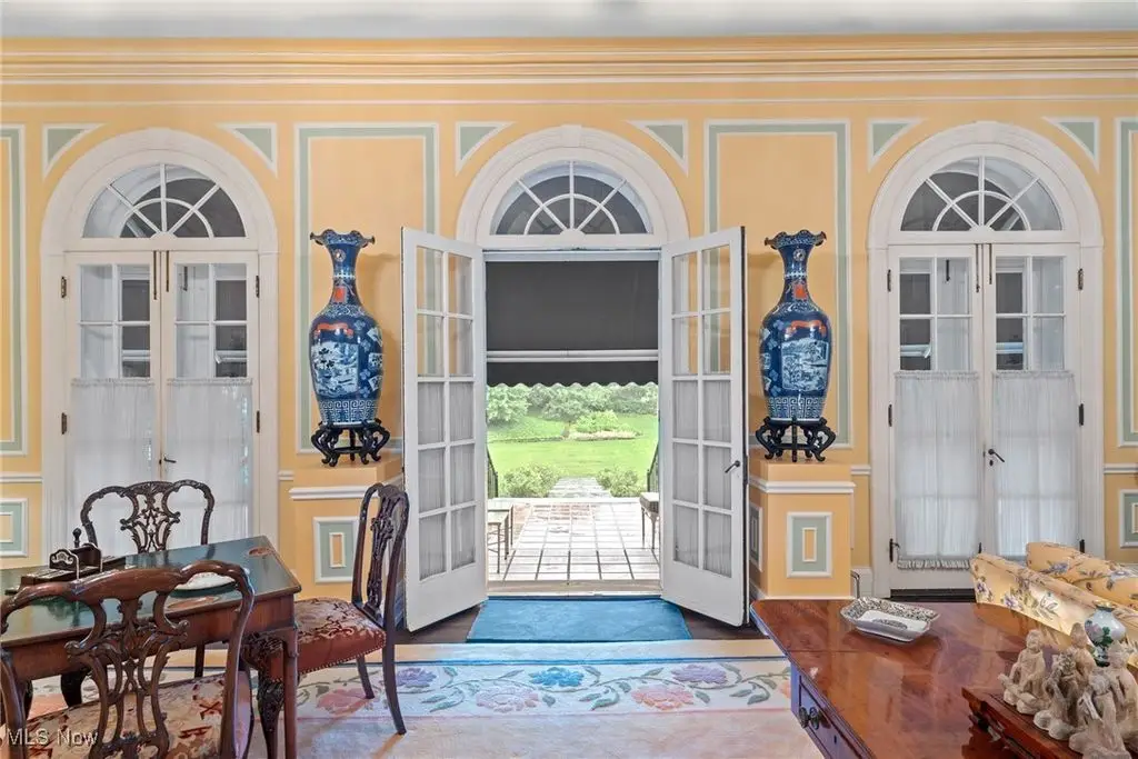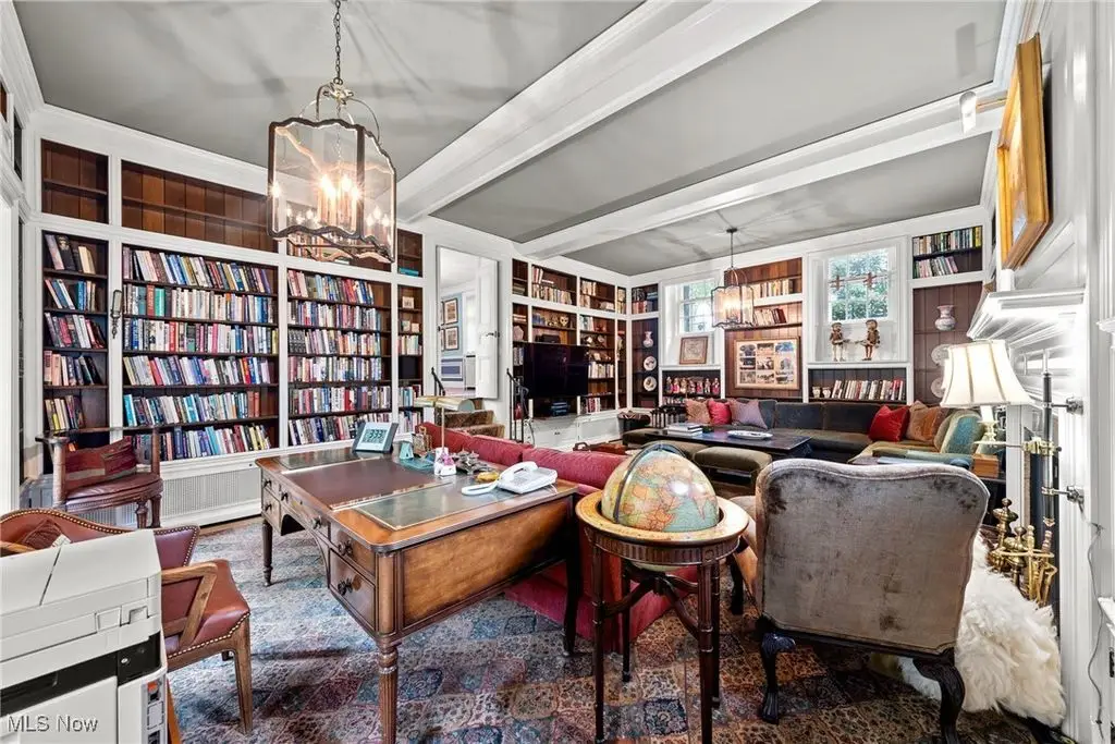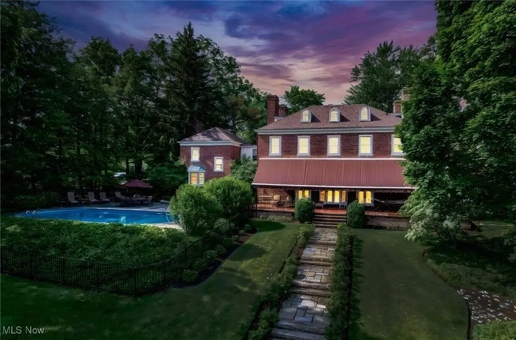 Steeped in history, this absolutely extraordinary Georgian Manor was the personal home of Newton D. Baker. Commissioned by him, designed by Meade & Hamilton, and built on a double lot overlooking the Shaker Heights Country Club, this home is an architectural treasure. A grand entry hall with Gracie handpainted wallpaper welcomes one into the extraordinary interior and leads to the breathtaking step down living room which features three sets of french doors which open onto the expansive rear terrace. This one-of-a-kind room has a built-in bar, features two crystal chandeliers, multiple seating areas, a handsome fireplace, and exquisite plaster detailing. The grand formal dining room is perfect for elegant affairs and has another exquisite crystal chandelier. Across from the dining room is the formal library with fireplace. A three room kitchen area includes a butler's pantry, wonderful white kitchen, and lovely breakfast room. And the true showstopper is the family room/library where Newton D. Baker had his desk and worked. This incredible room has walls of bookshelves, an exposed beamed ceiling, and another handsome fireplace. A second foyer area features a triple arched wall which envelopes the staircase to the second floor. Here you will find a private owner's suite with sewing room, dual bathrooms, and dual dressing rooms. In addition, there are 5 other bedrooms, a bonus room, and second floor laundry. The finished third floor has a wonderful play room and there is ample storage. Summers will be enjoyed on the rear terrace (awning covered) overlooking the most incredible park like yard or in the in ground pool. All of this overlooks the Shaker Heights country club golf course and the views are simply unmatched. Here is your chance to own of the most magnificent homes in Shaker Heights.