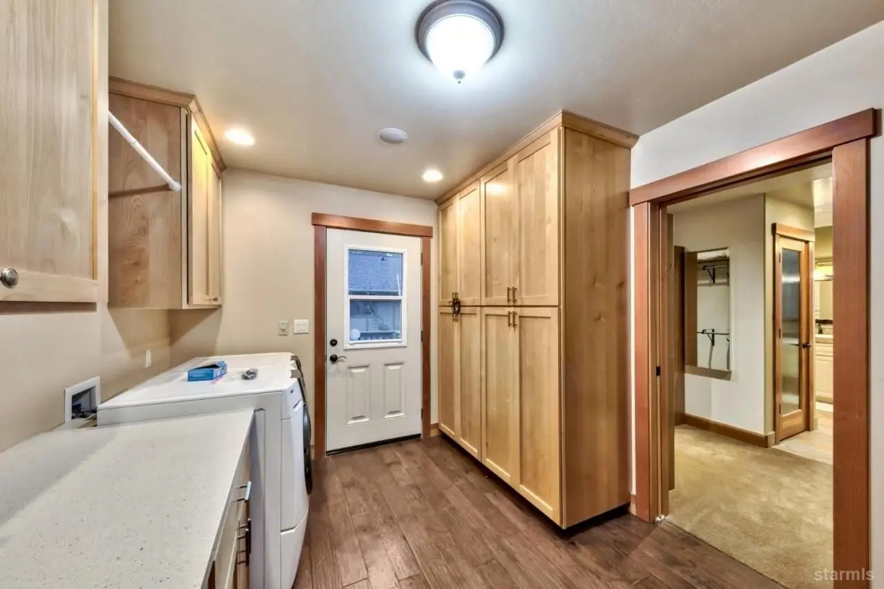 Nestled in the prestigious Montgomery Estates neighborhood, this custom-built home offers an unparalleled living experience in South Lake Tahoe. Backing onto miles of National Forest, this property provides direct access to an extensive network of hiking and biking trails, perfect for outdoor enthusiasts and nature lovers alike.The downstairs living floorplan showcases an open and inviting atmosphere. The living area boasts vertical grain Douglas fir wrapped windows, hardwood flooring, and surround sound speakers, creating a warm and inviting ambiance. A gas fireplace serves as a cozy focal point, while the beautiful forest views provide a serene backdrop.The heart of the home is undoubtedly the expansive kitchen, featuring dual islands that offer ample counter space for culinary adventures. Custom cabinets, two dishwashers, and a Thermador gas range cater to the needs of even the most discerning chef. Adjacent to the kitchen, a butler's pantry with built-in cabinets adds extra convenience and storage.Upstairs, the primary bedroom suite is a true retreat. Vaulted ceilings and a private balcony overlooking the forest create a sense of luxury and tranquility. The spa-like bathroom includes dual vanities, a tub with forest views, and a walk-in shower with dual showerheads. A spacious walk-in closet with built-in cabinets completes this opulent suite.Two additional guest rooms, one featuring a built-in desk, and a shared full bathroom provide comfortable accommodations for family or visitors. The home's thoughtful design includes an office area and conveniently located laundry room on the upper level.This property boasts high-quality finishes throughout, including custom travertine tile, hydronic in-floor heating, an alarm system, and a central vacuum system. The lushly landscaped lot creates a park-like setting, perfect for enjoying the crisp mountain air and peaceful surroundings.Fully furnished and move-in ready, this exceptional Tahoe home offers the perfect blend of luxury, comfort, and natural beauty. Don't miss the opportunity to make this your mountain retreat or year-round residence in one of South Lake Tahoe's most desirable neighborhoods.