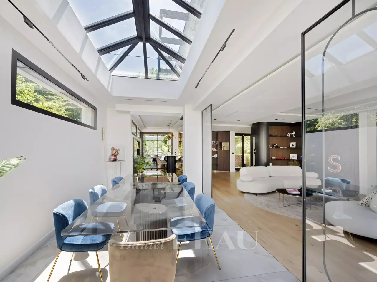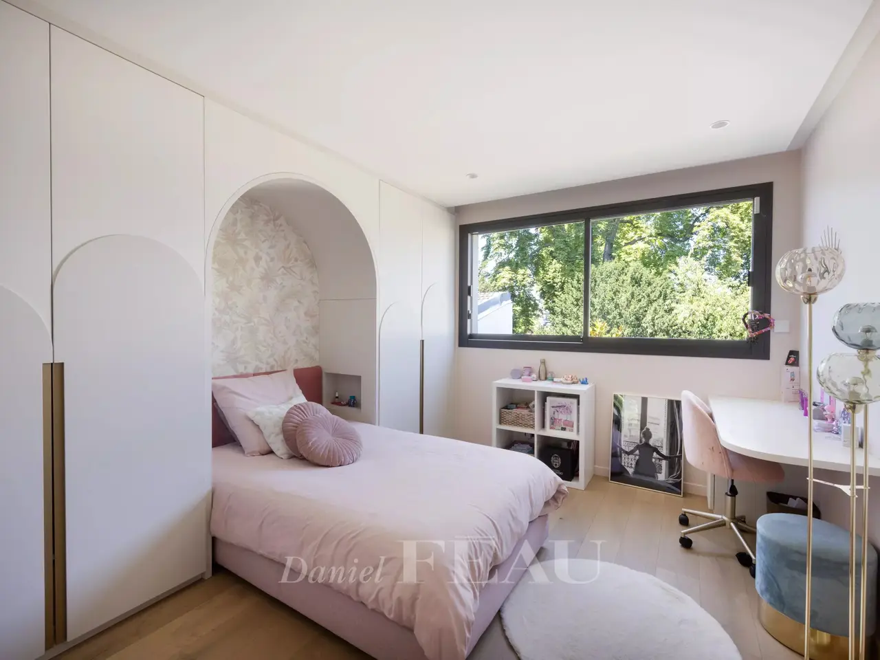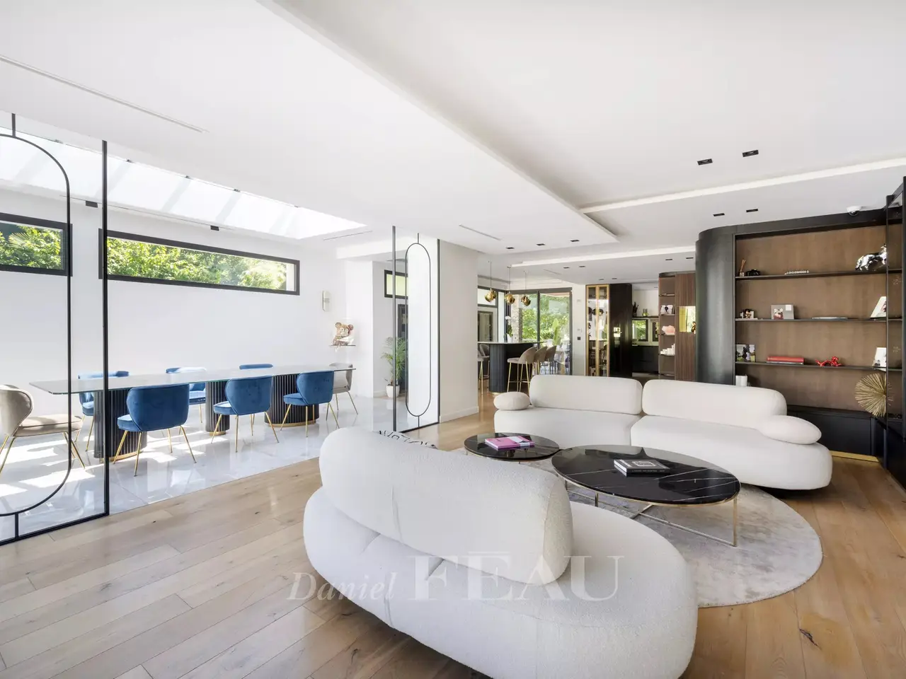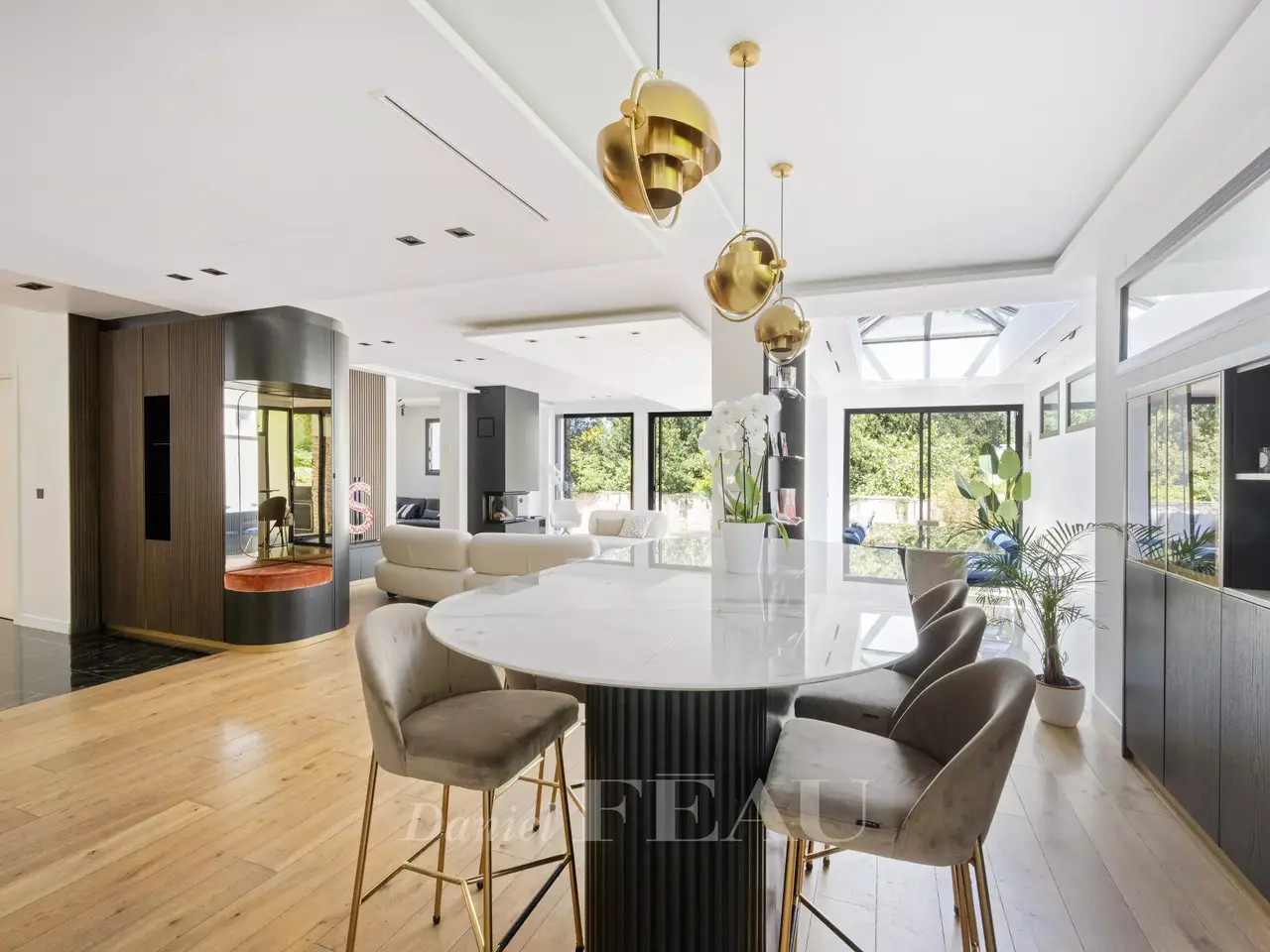Contemporary Architect-Designed House in La Varenne Saint-Hilaire – Just Steps from the Banks of the Marne Located in the sought-after neighborhood of La Varenne Saint-Hilaire, just a few steps from the banks of the Marne River, this architect-designed house, built in 2018, combines raw concrete and schist for a strikingly contemporary aesthetic. With approximately 400 m² (4,305 sq ft) of living space spread over three levels, this exceptional property sits on a nearly 800 m² (8,611 sq ft) plot, with a 145 m² (1,560 sq ft) building footprint. It also includes a fully equipped 50 m² (538 sq ft) pool house (25 m² on the garden level and 25 m² upstairs). Layout of the spaces: Garden level: Entrance hall with built-in storage Dual-aspect kitchen facing Boulevard de la Marne, with direct access to a first terrace Spacious and bright living room opening directly onto a second terrace and the garden Lounge/study with garden views and direct access Guest toilet with storage Fully equipped technical room: home automation system, distribution panels, thermodynamic water heater, underfloor heating (present on all three levels), centralized air conditioning First floor (sleeping area): 5 bedrooms, including: A master suite with walk-in closet, en-suite bathroom, and access to a private terrace with panoramic Marne views Two bedrooms with private shower rooms Two additional bedrooms with direct access to the terrace 4 bathrooms and 3 separate toilets Pool House (total of 50 m² / 538 sq ft): Open kitchen and living area Bedroom, bathroom, and toilet Natural light-filled basement: Gym with garden access Office with large window overlooking the garden (can serve as an extra bedroom), with adjoining shower room Large storage room with built-in closets Children’s playroom Secondary refrigerator and laundry area Double garage with storage and electric vehicle charging station Outdoor features and amenities: 3 terraces, including one with unobstructed views of the Marne Heated swimming pool (11 x 4.5 m / depth: 1.45 m) with heat pump Landscaped, private garden with no overlooking neighbors This recent home combines contemporary design, functionality, and comfort in a quiet, green setting, just steps from the Marne and the conveniences of La Varenne. The building complies with RT2012 energy regulations.