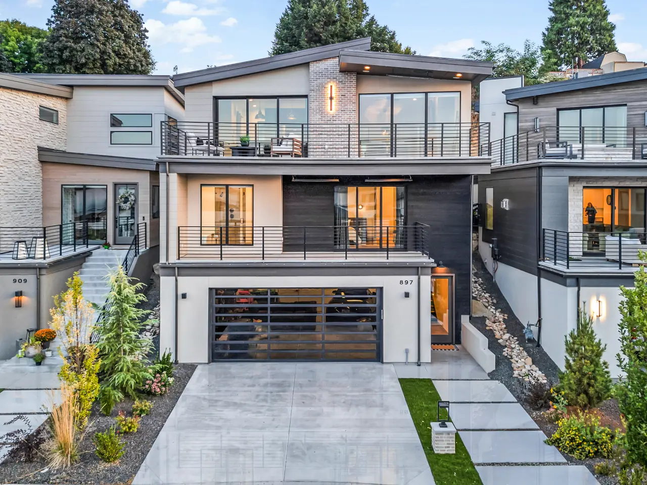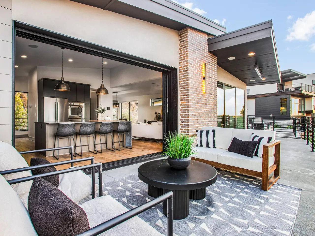 Step into luxury and convenience in this sleek, modern masterpiece! Imagine coming home, placing your groceries in the dumbwaiter, and sending them up while you head into your home to prepare dinner with breathtaking views of the Boise River and Foothills. With 2,600 sq. ft. of indoor space and over 1,000 sq. ft. of outdoor living, this designer home is built for entertaining! The gourmet kitchen boasts a Thermador appliance package, custom inlay cabinetry, Iron Abode metal/glass shelving, and quartz countertops with a waterfall-edge custom island. Bathrooms feature full-tiled showers, modern fixtures, and stylish tile flooring. The owner’s suite is a retreat with a soft-close iron barn door leading to a spa-like bath. Interior highlights include engineered hardwood, 8-ft doors, designer lighting, a linear fireplace, built-in WiFi/audio, Marvin black-framed windows, multi-point sliding doors, and soffit heaters. The 900+ sq. ft. garage stuns with an 18’ Amarr Modern door and epoxy floors.