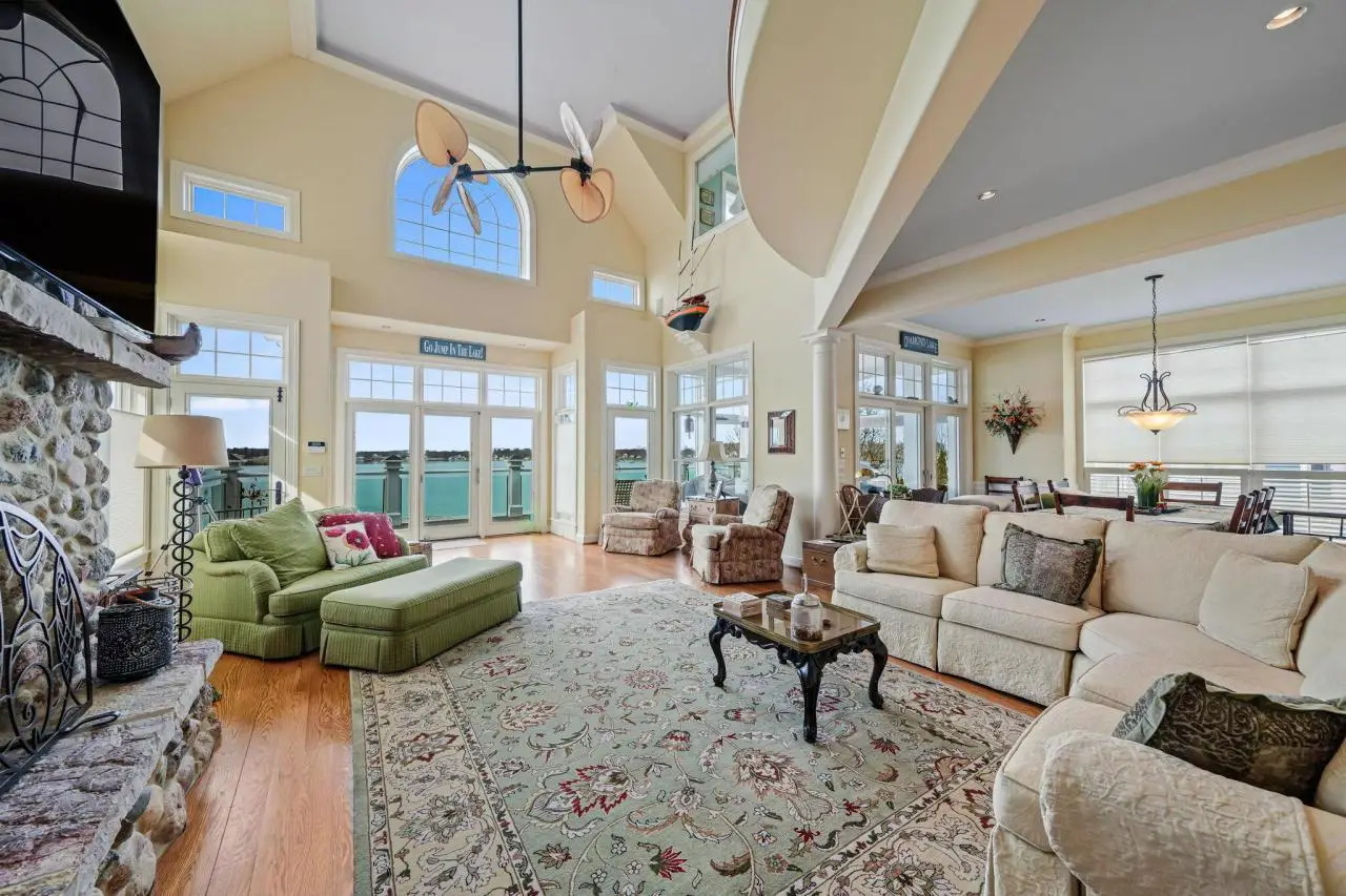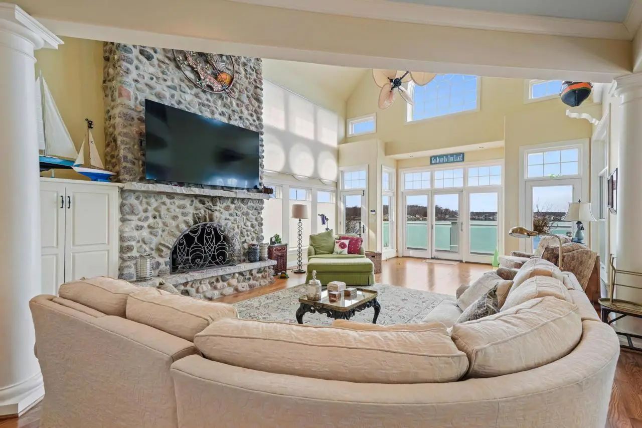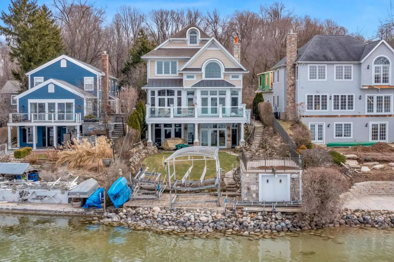 Fantastic custom-built home by Rans is as fine a home on any lake, and offers the highest vantage point with spectacular views on impeccable all sports 1020 acre diamond lake. This majestic home has six bedrooms,( three en- suite), six baths, almost 7,000 square feet of finely finished space plus an elevator. The main floor with its grand staircase features a large gourmet kitchen open to the living room with its unparalleled views, large stone fireplace and 22 high ceilings. The lower level is great space for entertaining with a tin copper ceiling, stone fireplace, bar with nautical rope columns, kitchenette and walkout. The sandy bottom waterfront has a pier plus a grandfathered-in boathouse that could be converted into a lakeside bar and gathering area plus .35 acres back lot for extra parking.