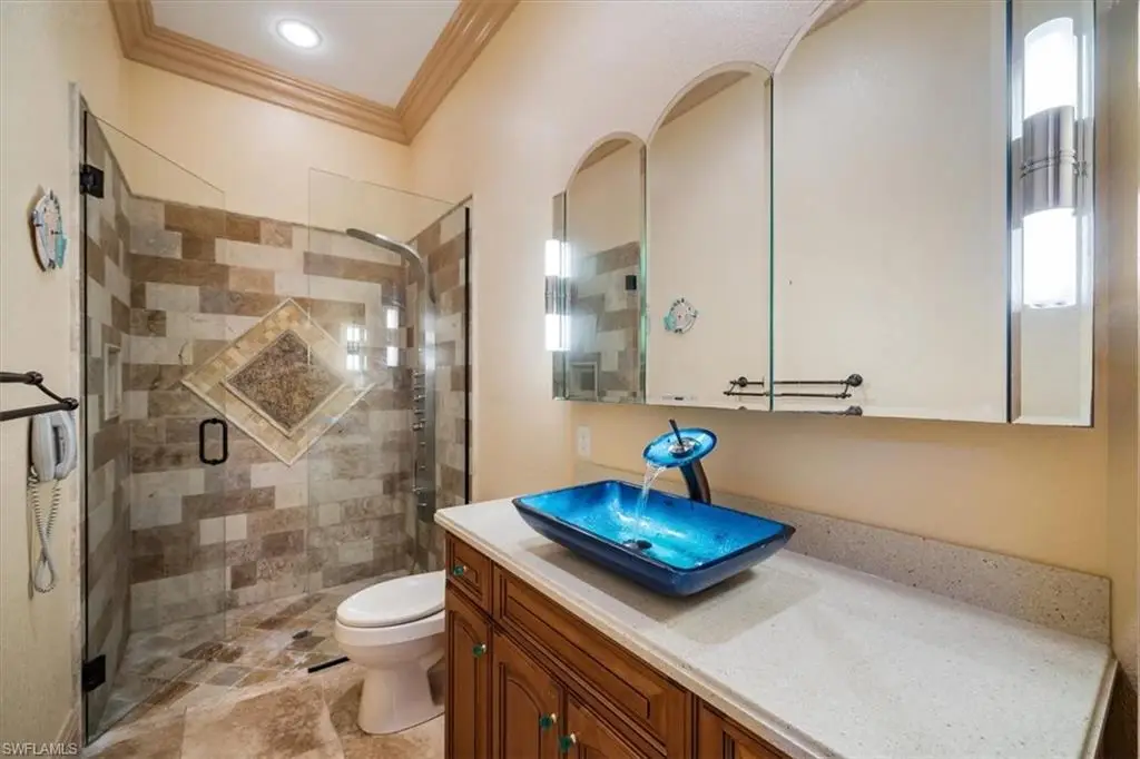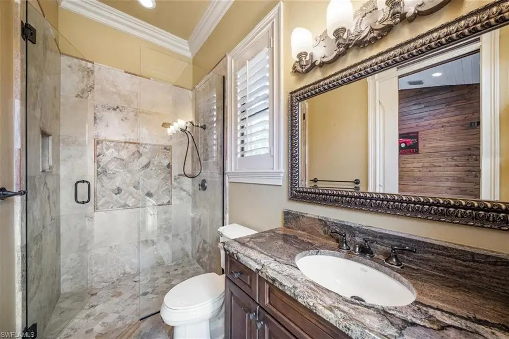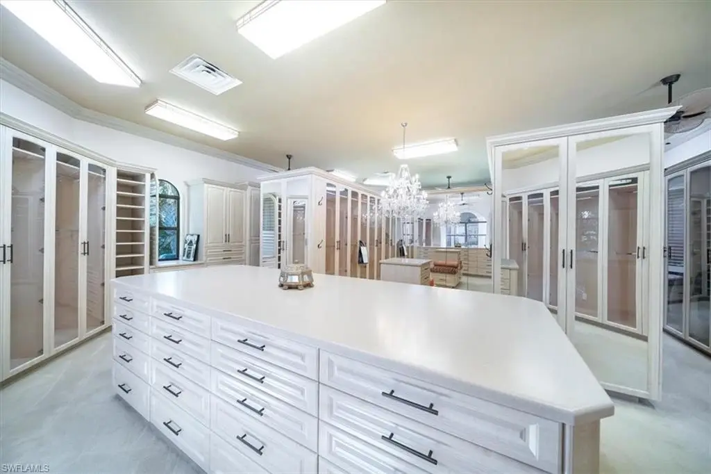 Experience luxury living in this spacious, beautifully appointed 7-bedroom home, designed with superior finishes and stately curb appeal. This exquisite 7,000 square foot property is part of a 2.5-acre fully-fenced gated family compound estate with manicured grounds, accessed via a double electric gated entry. The main house features a charming brick paver driveway, while a separate asphalt drive leads to a large 2,640 sq ft workshop/garage with RV-sized roll-up doors and climate-controlled spaces. This versatile area is perfect for a home-based business, RV, boat, or car collection. Enhancements to the estate include offices, guest suites, and a kitchenette, as well as a magnificent 1,000 sq ft primary bedroom closet with glass-enclosed sections, a cedar-lined room, and a fur vault/wine room. The primary suite also boasts a private spa with steam shower. The living space is enriched by a gas fireplace, and the kitchen is equipped with a six-burner Dacor gas stove and a dual-room pantry. The dining room features a wet bar, while an air conditioned gazebo with wet bar, sink and seating complements the pool and spa area, creating an ideal setting for entertaining. Additional amenities include a water treatment system in a 16x12 CBS building, Croci roll shutters, and generators for both the house and the workshop. This estate offers unparalleled luxury and functionality for discerning buyers.