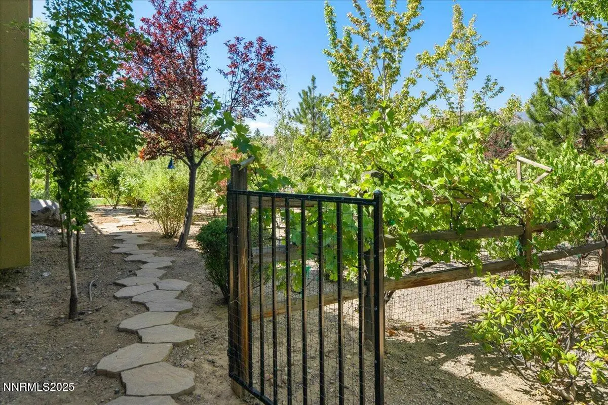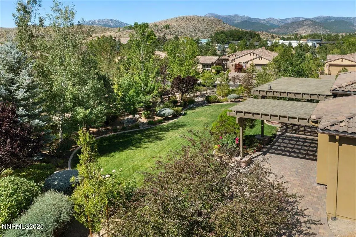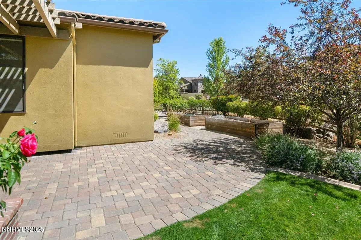 Beautiful Single-Level Home in the Gated Monte Rosa Community. Tucked within the secure gates of Monte Rosa, this thoughtfully designed SINGLE LEVEL home combines quality construction with a bright, open floorplan. Surrounded by mature, park-like landscaping, the property with picturesque views of Mt. Rose and the Sierra Mountains. Enjoy spacious living with tall ceilings, a great room layout perfect for entertaining, and a formal dining room with custom built-ins. The large primary suite features dual walk-in closet. A charming gated front courtyard welcomes you, while the backyard offers a covered pergola, paver patios, and raised garden beds—ideal for relaxing or outdoor dining. Additional features include a three-car garage, paver driveway, and light-filled interiors throughout. Located just oF Mt. Rose Highway, you're minutes from shopping, hiking trails, Mt. Rose Ski Resort, and only 15 minutes to the airport. This well-maintained home offers rare comfort and convenience in one of Reno's most desirable gated communities.