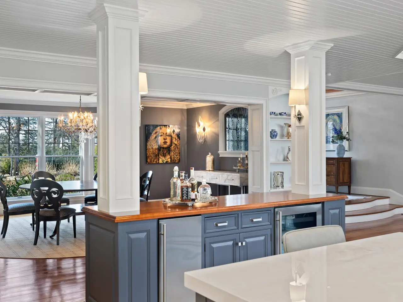 When you want to find your dream home on the South Coast, look no further than Mattapoisett. Experience resort-style living on exclusive Ned’s Point Road! This jewel with an extra lot combines the perfect harmony of superbly crafted design with the elegance, charm and flair of living in a historic seaside community. You’re welcomed into a soaring cathedral fireplaced living room adjacent to a newly renovated custom chef’s kitchen with fine workmanship and quality throughout. Two home offices, full gym and cozy den complete the first floor. Upstairs, find the primary suite with dual walk-in closets and spa-like bath as well as two additional en suites and an in-law/guest quarters with its own kitchen. Finished lower level for family entertainment with full bar, pool table, fireplace and media area. Professionally landscaped, pool and three-car garage.