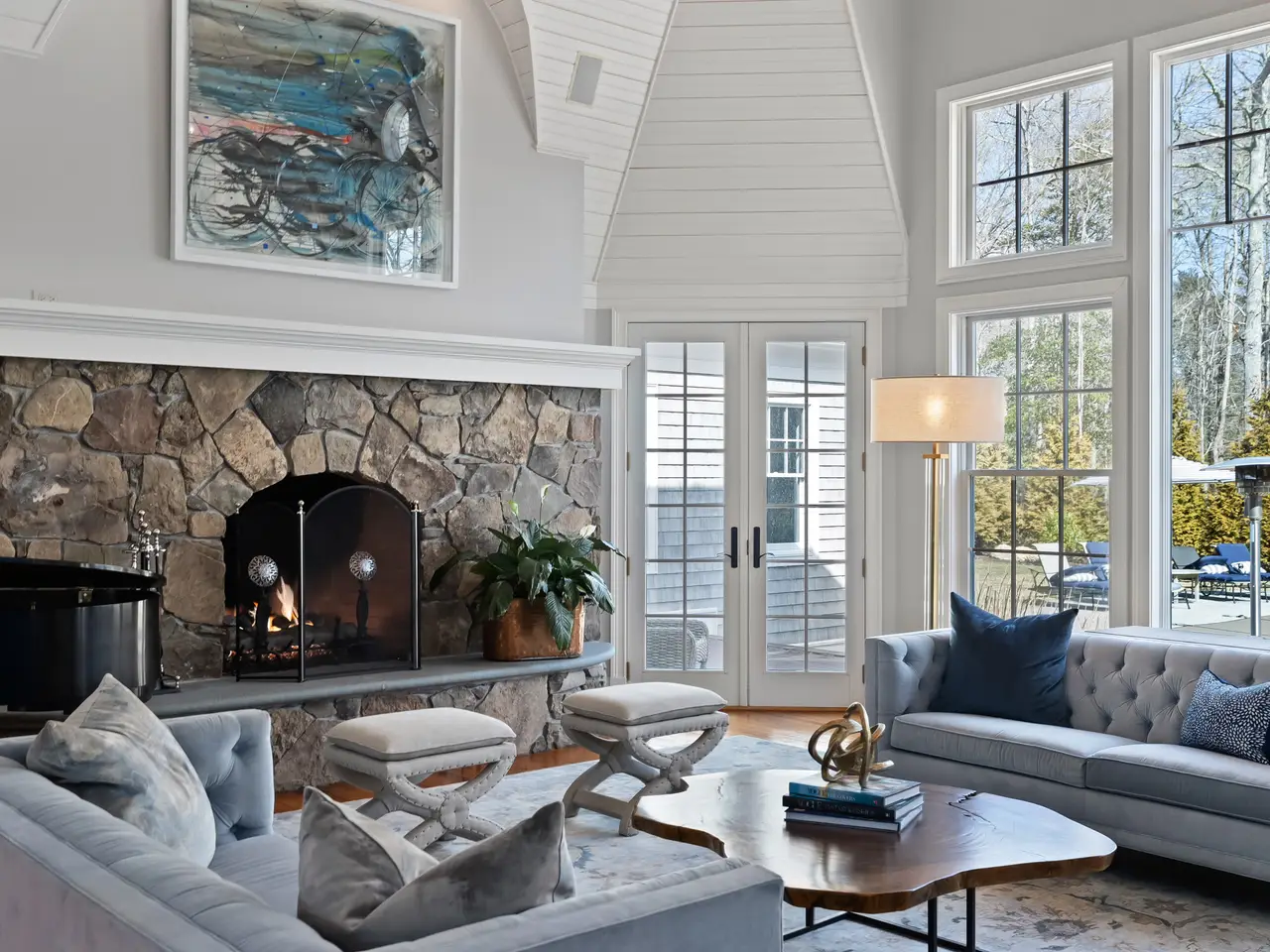 Cathedral fireplaced living room