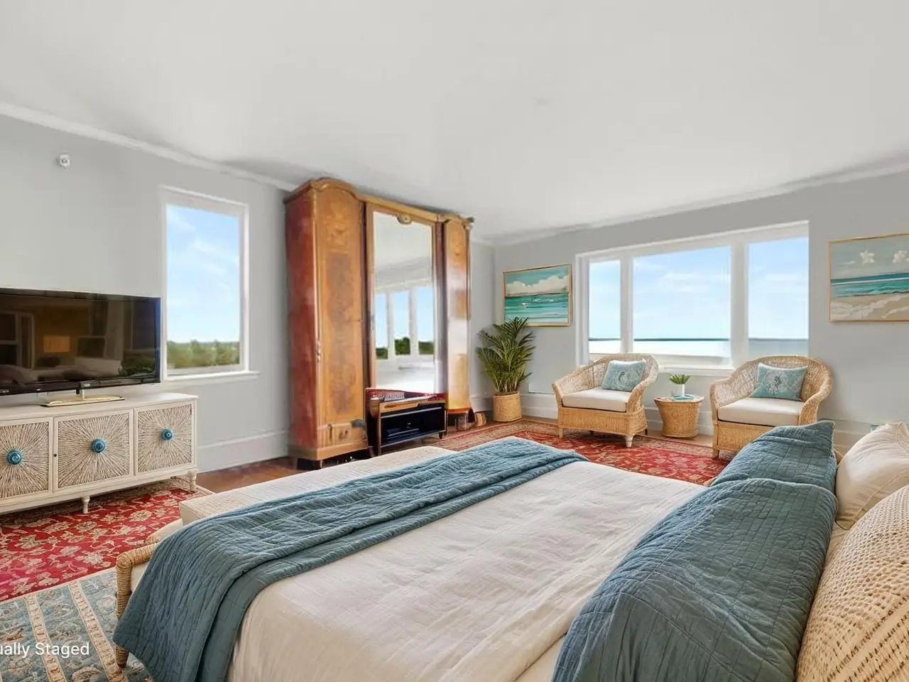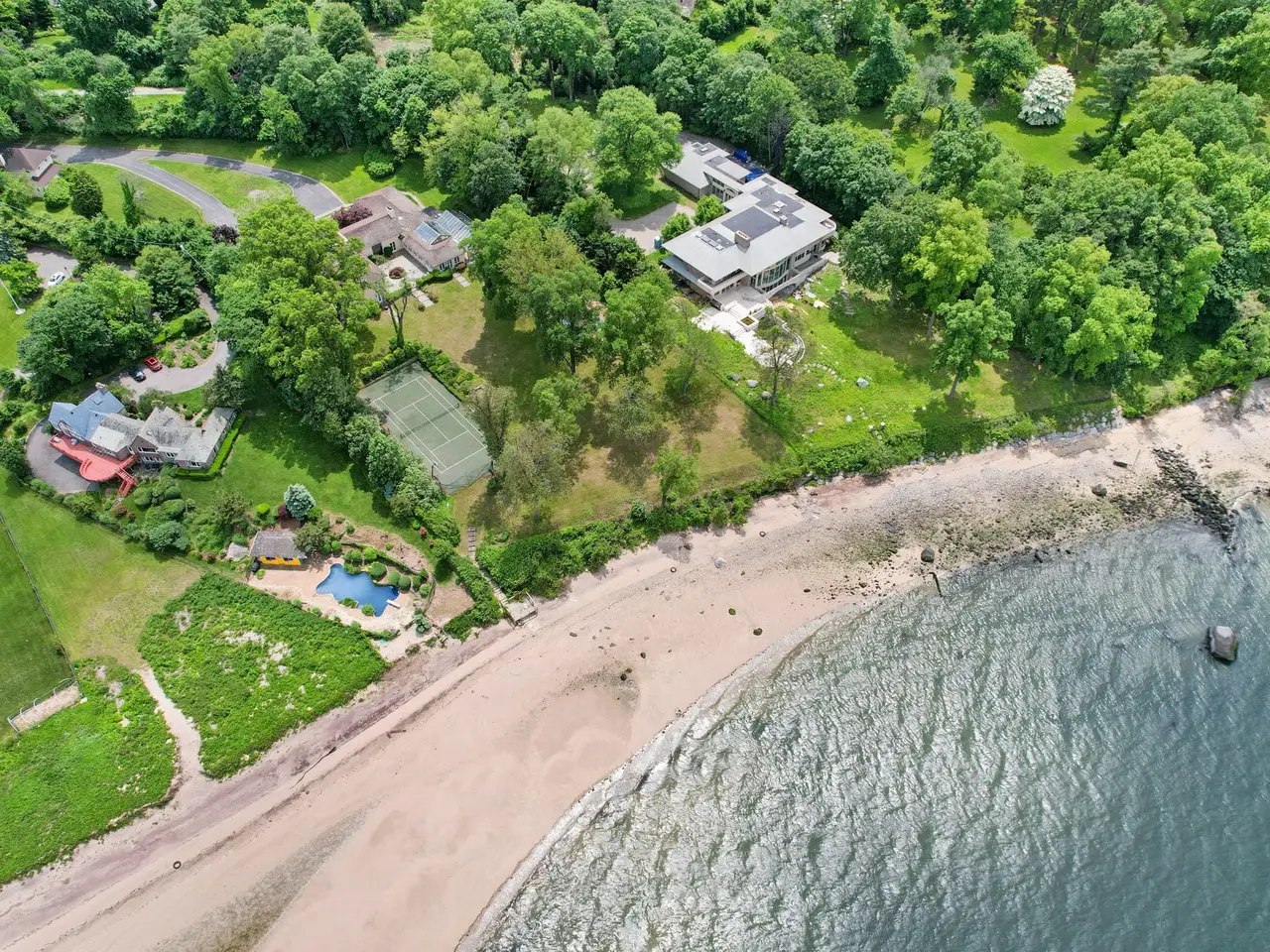 Open floor plan, Preached high above with panoramic water views from every room, this exceptional waterfront ranch offers an unparalleled lifestyle in one of Sands Point's most prestigious and private enclaves. Nestled on over an acre of lush, landscaped grounds, the property exudes serenity and grandeur. This historic estate has been meticulously reimagined into a bespoke masterpiece, where timeless architecture meets sophisticated modern design. Every detail has been thoroughly curated to preserve classic charm while while incorporating today's most elegant finishes. This open and expansive layout, offers versatile spaces ideal for both everyday living and grand entertaining - all oriented to capture the home's sweeping water views. water front, beach, Featuring 5 bedrooms, 3 full baths and a powder room, Library, Deck the main residence offers beautifully proportioned rooms filled with natural light and framed by expensive windows that showcase sweeping panoramic views. Inground Pool fenced in with Pool House with Full Bathroom. This property is inspired by the architecture of Falaise, the Henry F. Guggenheim estate which is now Sands Point Preserve.