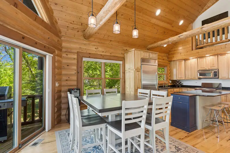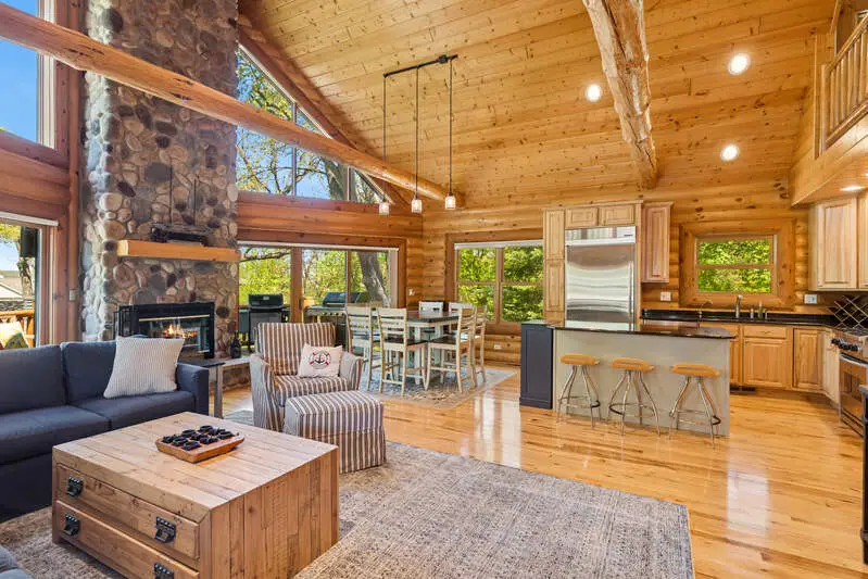 Discover refined luxury in this exceptional log home, nestled in the sought-after Lake Geneva Beach Association community with exclusive lake access. Perfectly designed for upscale living and effortless entertaining. This beautifully crafted retreat offers the ideal balance of sophistication, comfort, and outdoor adventure. The expansive open-concept features rich wood finishes, soaring ceilings, and panoramic views that bring the outdoors in. Downstairs, a spacious rec room provides a versatile area for games, movies, or quiet family time. Step outside to enjoy the beautifully landscaped grounds with a built-in firepit. Offering swimming and boating access, this home is your family's getaway to lakeside luxury.
