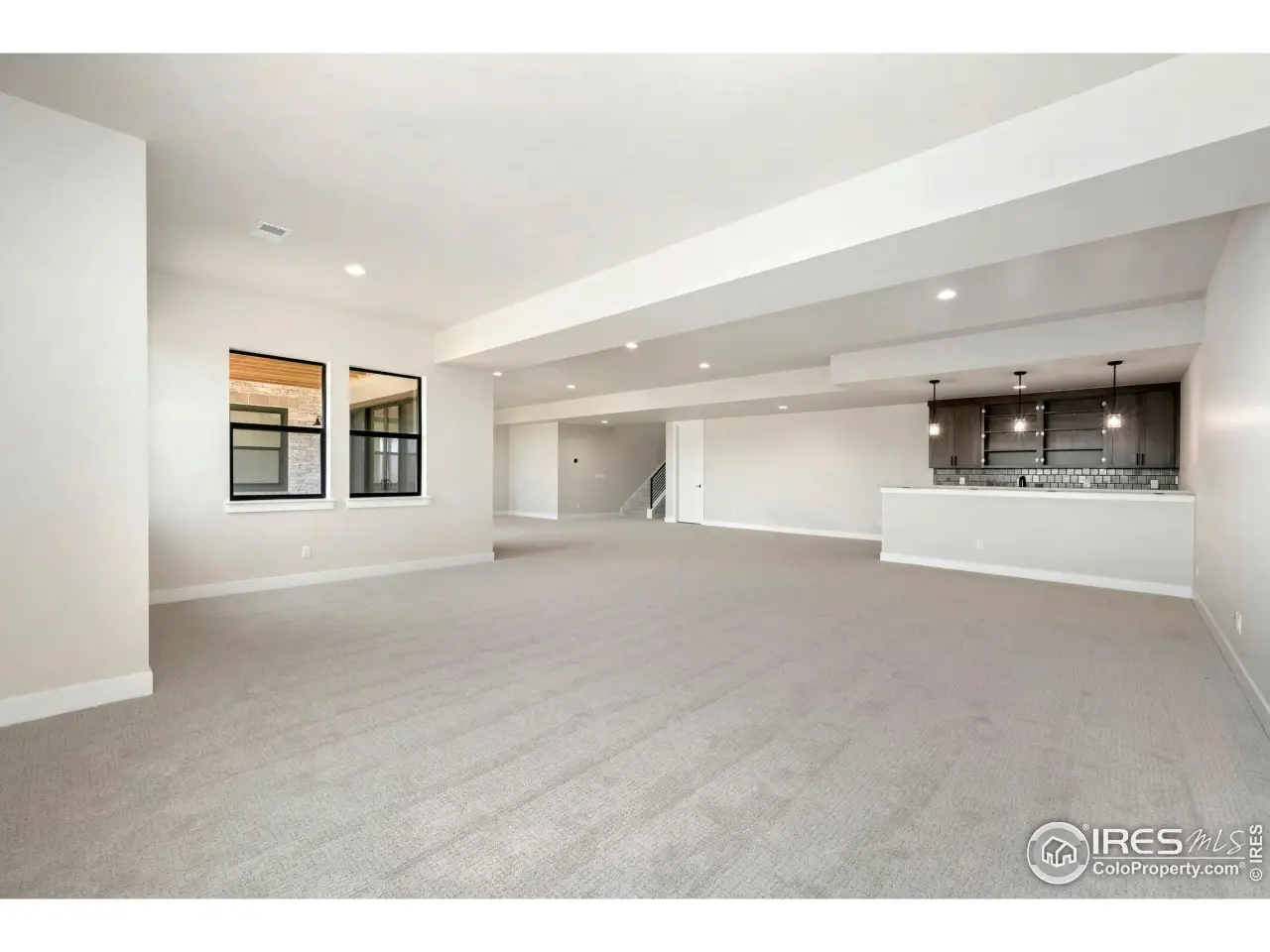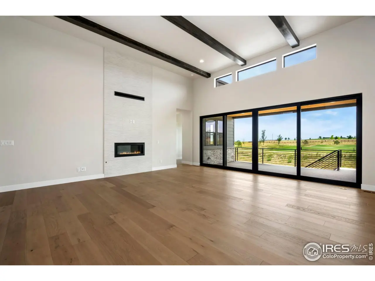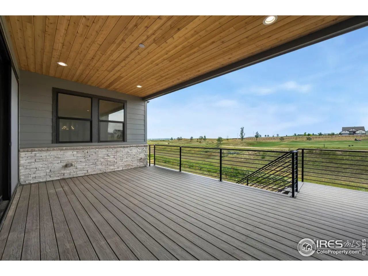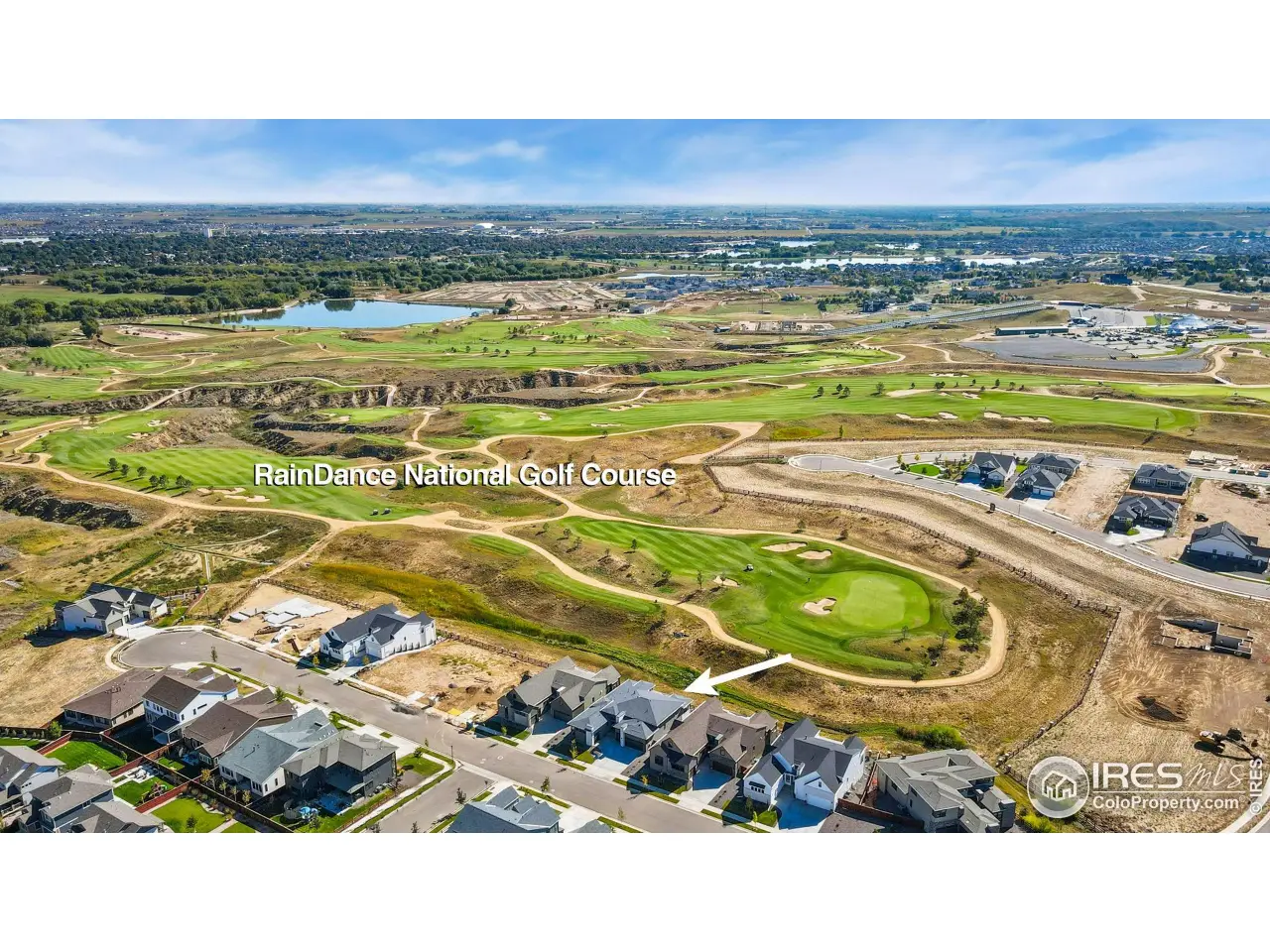 The stunning Modern Prairie Broadmoor at The Fairways in RainDance by Trumark Homes features an inviting porch. Beautiful single-story home offers 4,871 sq. ft. of finished space with 4 bedrooms and 4.5 baths. Past the entryway is a large great room and gourmet kitchen with a walk-in pantry and a prep island. Enjoy dusk-stained shaker-style cabinetry, Calacatta Laza countertops with tile backsplash, chef grade stainless steel appliance package, and decorative matte black fixtures. The great room, complete with stained ceiling beams and a modern linear gas fireplace, is filled with natural light and overlooks the covered outdoor deck to take in the stunning views of the high-plains links-style golf course at RainDance National. Down the hall you'll find a second sitting room, spacious laundry with sink, and two bedrooms both with ensuite baths. Off the great room is the office with glass wall and door and contemporary grand suite, including a luxurious bathroom with two sinks, walk-in shower, and an elegant freestanding tub. An expansive walk-in closet completes the primary suite. The home also comes with natural stained engineered hardwood flooring throughout the main floor with luxurious carpet in bedrooms, spacious 10-foot ceilings on the main floor and the partially finished walkout basement is complete with wet bar, bedroom, bath and large rec room for entertaining with a sliding glass door and oversized private concrete patio. Eight- foot interior doors, insulated steel garage doors, tankless water heater, AC, front yard landscaping, golf cart garage, and more! Neighborhood amenities; trails, orchards, non-potable water, trash, included in your metro district fees. Membership to the Raindance pool is optional/currently $510/year; other options combining amenities in Raindance and Water Valley - "WaterDance"!