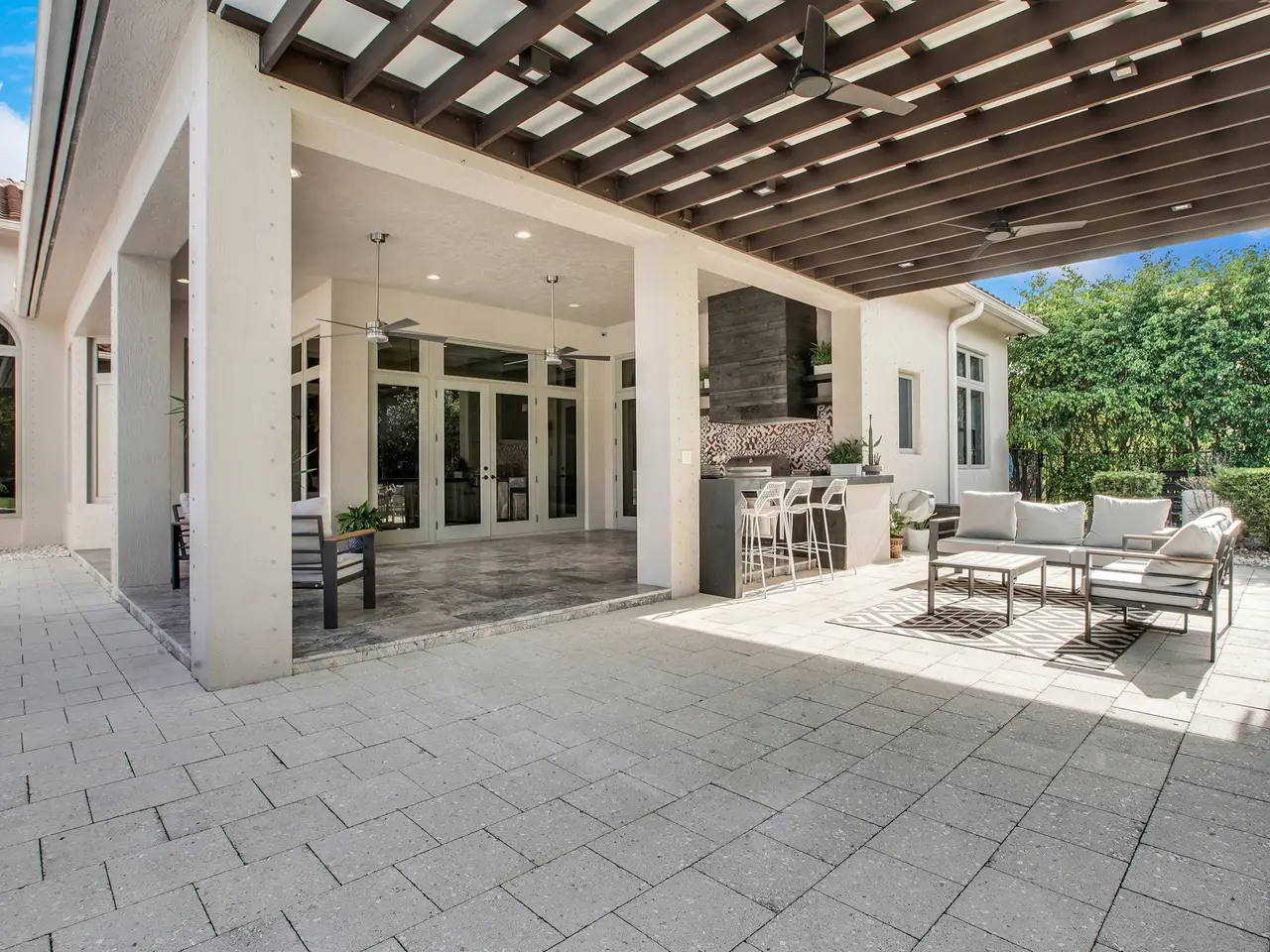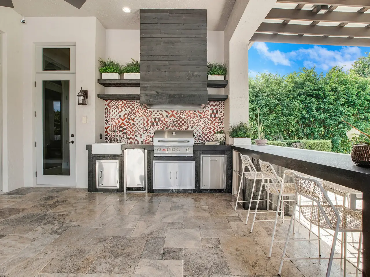 Full outdoor kitchen with pergola