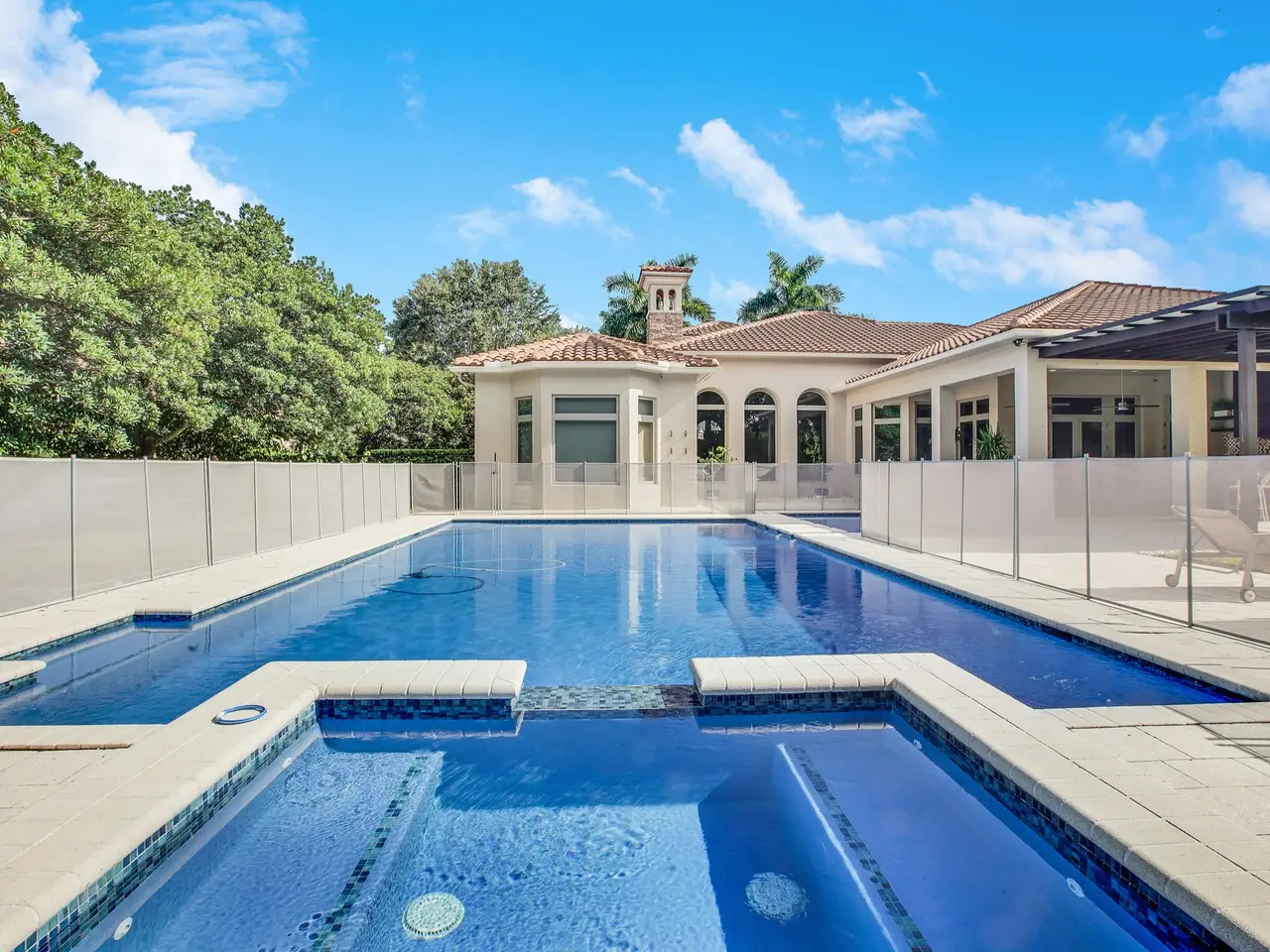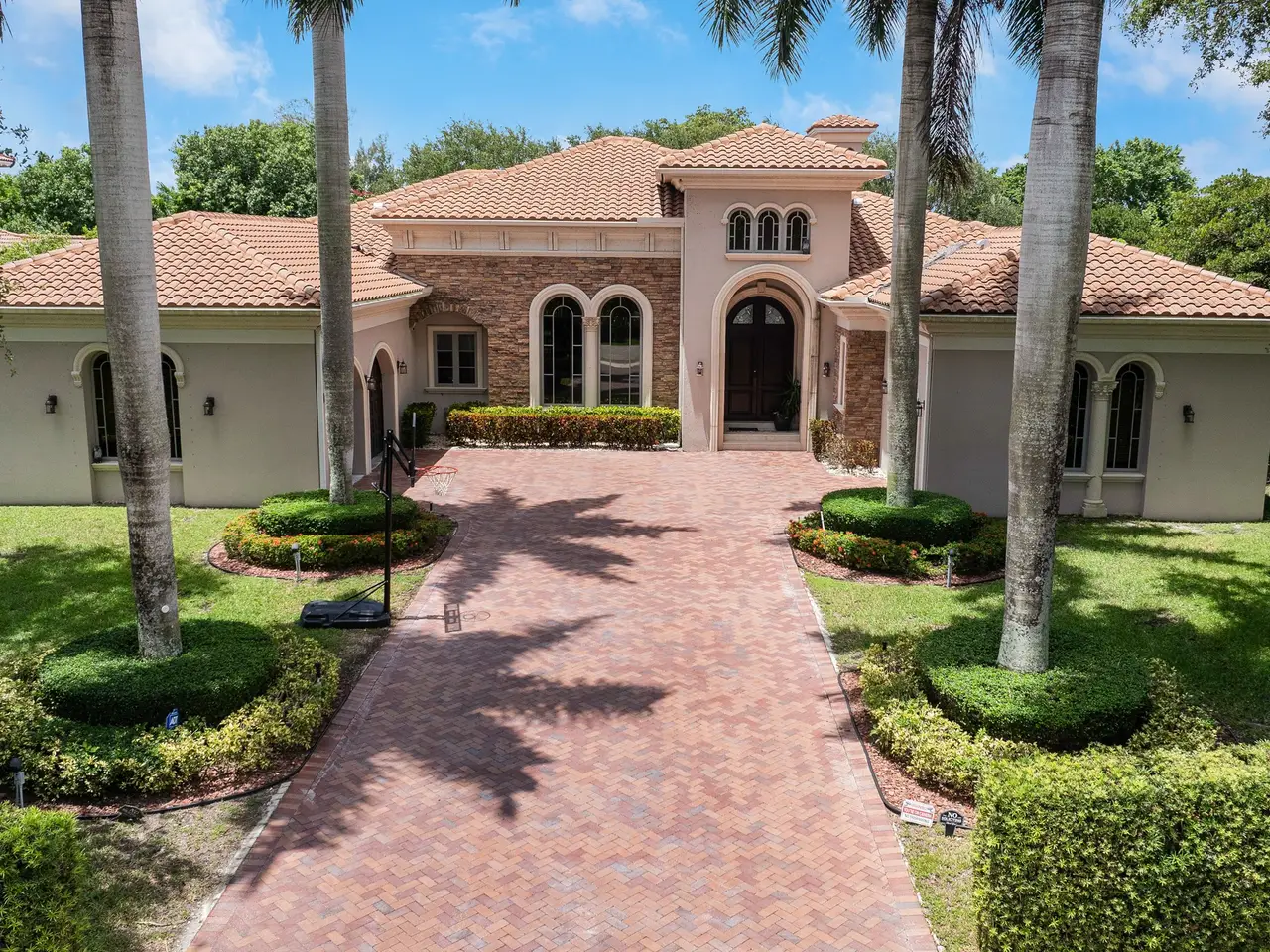 Exquisite Single Story Estate in prestigious Saddle Club Estates. Tastefully decorated 5bed/5.5bath custom home boasts 5179' living space w/elegant finishes & upgrades. Oversized master suite w/2 closets, spa-like tub and shower. 16' coffered ceilings, open layout featuring 2 living areas, marble and wood floors, custom walk-in closets and built-ins, huge gourmet kitchen w/Miele and Subzero, 2021 roof, 3 AC, impact windows&doors,3 car garage w/EV charger, full house generator. Spacious front yard w grand palms and large back yard w/heated saltwater pool and child gate, full outdoor kitchen w/pergola, multiple fruit trees. This home provides privacy and serenity while being conveniently close to top-rated schools, shopping and recreation w/ access to Bonaventure Town Center Club. Come experience it in person!