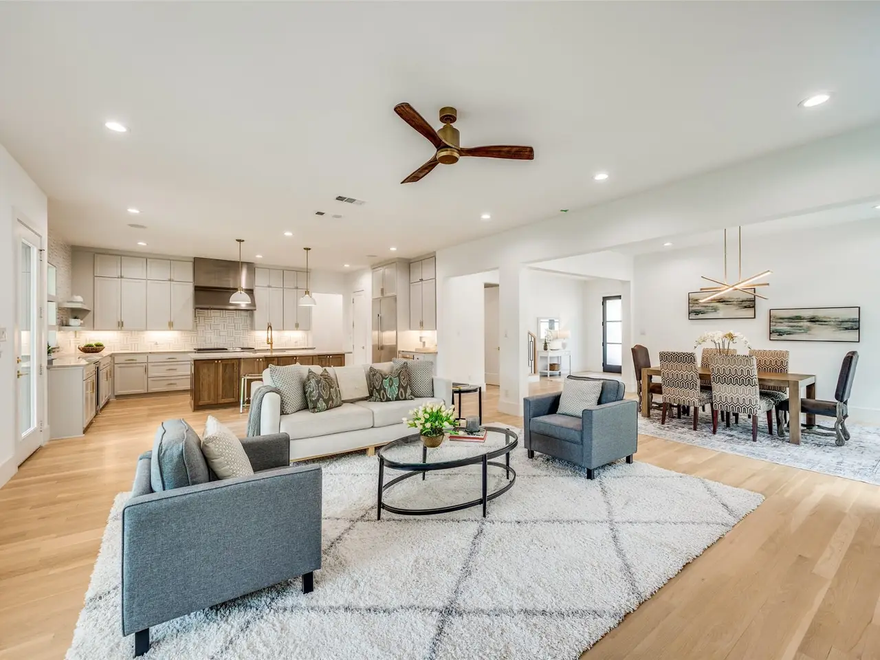 This light-filled contemporary home built in 2021 by Phil Woodward, offers a clean, open floor plan and upscale finishes throughout. The main level features a dining room, office, half bath, spacious kitchen and family room, plus a guest suite with ensuite bath. Upstairs includes game room with built-ins, two secondary ensuite bedrooms, and a spacious primary suite with an oversized bathroom featuring double vanities, a soaking tub, and a separate shower. Enjoy outdoor living in the fully fenced, landscaped backyard with a covered patio, built-in Green Egg, gas grill, and TV area. Attached front-entry 2-car garage completes this stylish, move-in-ready home. Minutes from the shops and dining in Lakewood, this home is in a prime location in East Dallas!