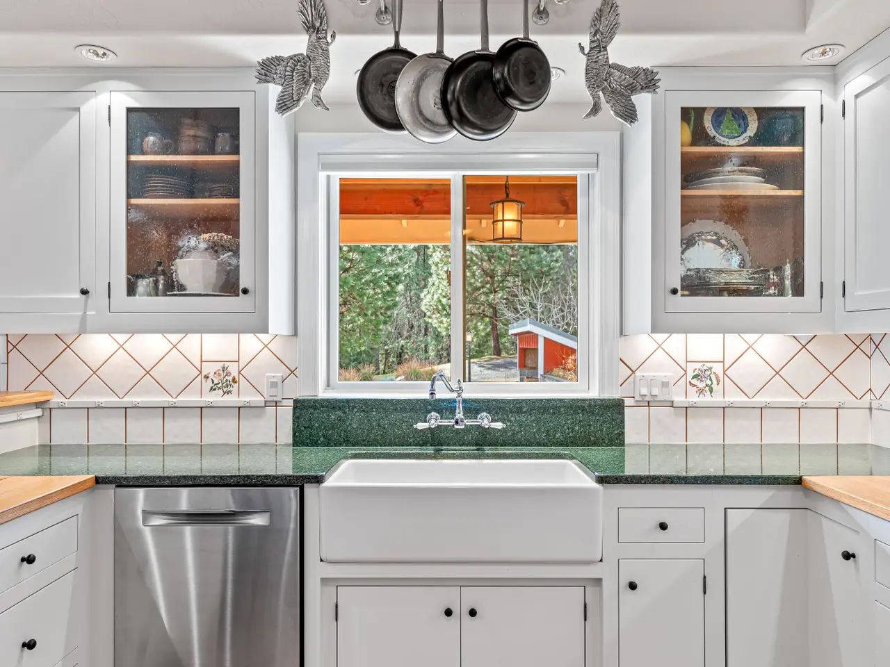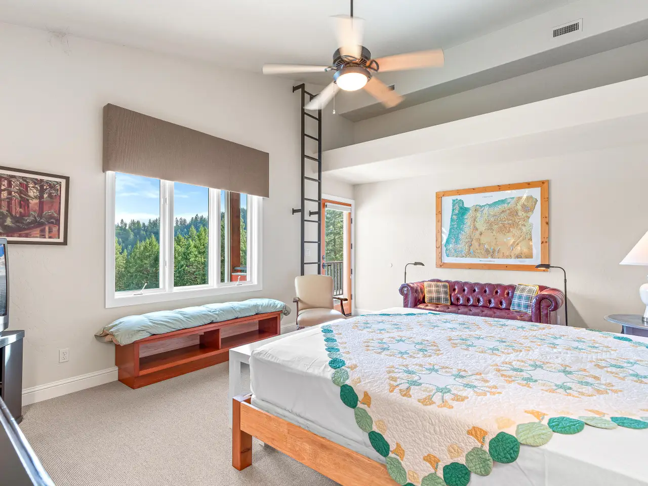 Refined custom view home on 95 acres in a private setting just five miles from downtown Rogue River. Vaulted great room with reclaimed Canadian oak floors, gourmet kitchen with Silestone and oak counters, Shaws farmhouse sink, and stainless appliances including an oversized Thermador refrigerator, Electrolux convection oven, and 6-burner propane cooktop. Main-level primary bedroom with built-in Walnut headboard and expansive walk-in closet. Primary bath with granite counters, cherry cabinets, soaking tub, shower, and water closet. Elevator or interior stairs to vaulted upper level with office, spectacular artist studio with skylights, half bath, and French doors to covered decks. Guest wing with two exterior entrances, kitchenette, bedroom, bonus room, and full bath with solid slate counter and tub shower. Property is bordered by over 1,100 acres of actively managed BLM property, and Birdseye Creek has been a Firewise USA certified community site since 2020. Inquire for details!