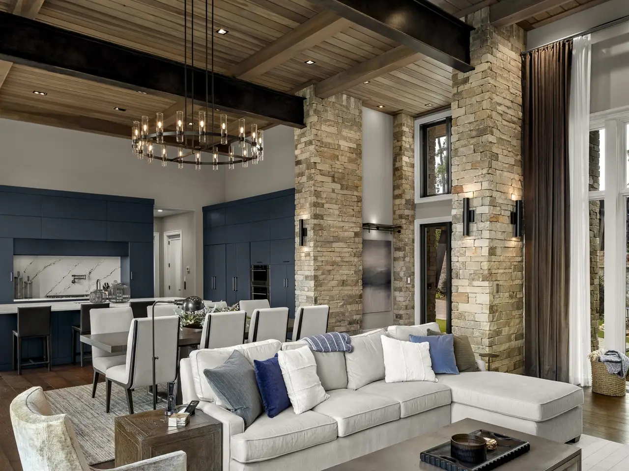 Poised above the pristine fairways of Walnut Cove and framed by panoramic year-round vistas including Asheville's twinkling lights, this exquisite residence offers over 7400 SF of refined mountain living. Designed by Jeff Dishner, architect, Dillard-Jones construction and decor by Tribus Interiors, you'll find two expansive living levels that capture the beauty of the surrounding valley with year-round vistas. The main-level layout is tailored for both relaxation and productivity, with two home offices and an owner's suite. This private retreat is complete with its own balcony, spa-like bath featuring a jetted soaking tub, heated floors, steam shower, separate water closet, and walk-in closet. The kitchen includes a hidden pantry, custom cabinetry, Sub-Zero and Wolf appliances. The Cliffs at Walnut Cove membership is available.
