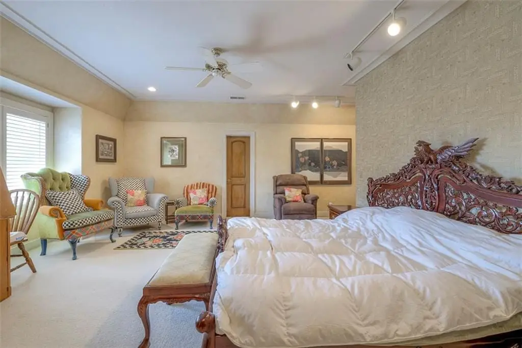 Experience luxury living at its finest in this stunning custom-built Paul Brown estate, nestled within the prestigious Hallbrook Farms community of Leawood. Designed with timeless architecture and impeccable craftsmanship, this 1.5-story residence blends elegance with comfort across every detail. Step inside to discover five expansive bedroom suites, including a romantic primary retreat with breathtaking views of the indoor pool. A dramatic two-story library with fireplace provides a warm and sophisticated space for work or relaxation, while the home's flowing layout is ideal for both everyday living and grand entertaining. Entertainment reaches new heights with a custom in-home movie theater, complete with luxury seating for the ultimate private cinema experience. Additional highlights include a dedicated craft room for creative pursuits and a refined wine room designed for the collector and entertainer alike. A thoughtfully designed and installed chair lift on the rear staircase ensures effortless access to all three levels of the home, making it ideal for multi-generational living or accommodating guests with ease. The resort-style indoor pool, surrounded by walls of windows, creates a year-round private oasis. Outdoors, a beautifully landscaped private courtyard offers additional space for leisure and gatherings, enhancing the home's serene setting. Hallbrook Farms is one of Johnson County’s most desirable neighborhoods, celebrated for its exclusivity, lush grounds, and convenience to premier shopping, dining, and lifestyle amenities. This remarkable estate offers an unmatched opportunity to own a true Hallbrook masterpiece - where luxury, privacy, and timeless design meet. Owner is licensed agent in KS and MO.