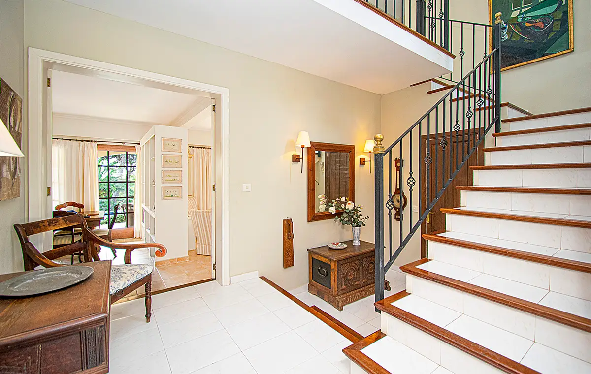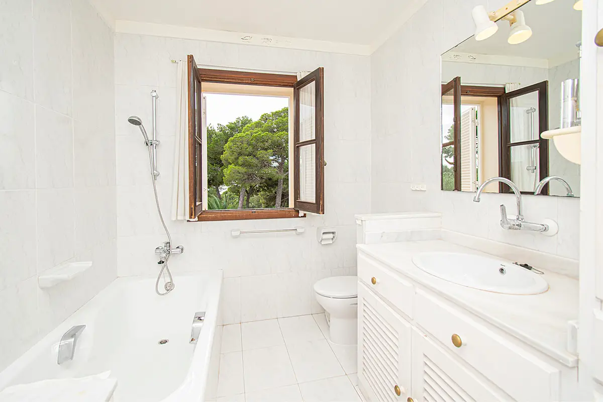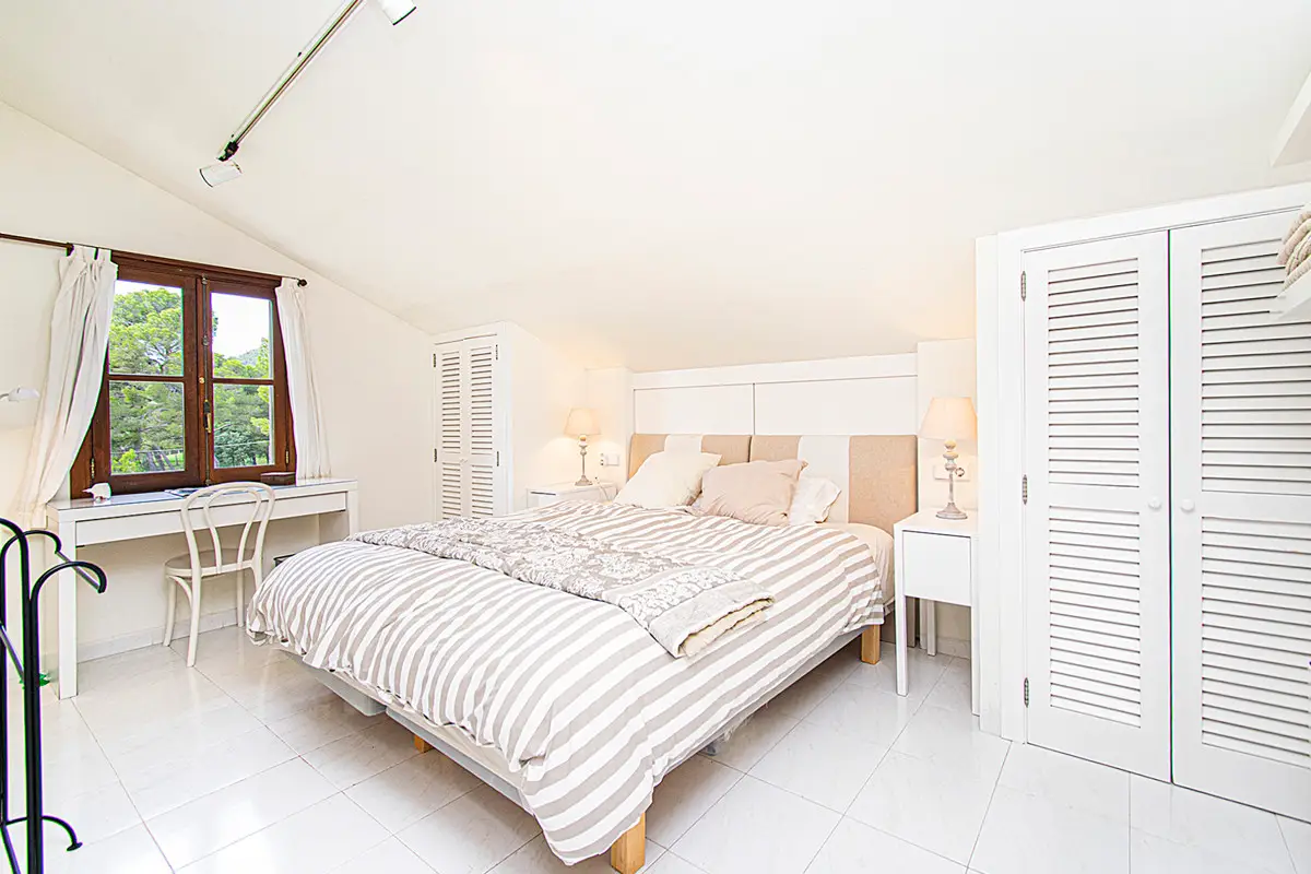 Beautiful villa with a large swimming pool and a wonderful Mediterranean garden in the exclusive residential area of Costa de los Pinos near Son Servera. Just a few steps from the sea is this property whose garden directly borders golf hole number 5 of the Son Servera golf course. The house has two floors and offers a total of five spacious bedrooms, four bathrooms, a guest toilet, a large open room with a beautiful fitted kitchen and a sunny living-dining room with a fireplace. From this floor there is access to a large covered terrace with dining area and a few steps down to the sun terrace with a magnificent swimming pool. On the first floor there is also a terrace from which you have a beautiful view of the garden, the pool and the sea. Outside there is a fantastic garden with lots of vegetation. The villa also has hot/cold air conditioning, built-in wardrobes in the bedrooms, lots of natural light, parking, plenty of space and proximity to the sea. This property lacks absolutely nothing to become your dream home! Son Servera is a coastal town in the east of the island. It is 71.2 km from Palma and 20.1 km from Manacor. The towns of Artá, San Llorenç and Capdepera are nearby. The municipality of Son Servera has three town centers on the coast: Cala Millor, Cal Bona and Costa de los Pinos. In the center of this place are the town hall, the church of Sant Joan Baptista and the New Church. The old town of Son Servera is a pedestrian street with a few shops and cafes. Near Son Servera you can visit the Arta weekly market, which takes place every Tuesday. Parking Space 1 x free space