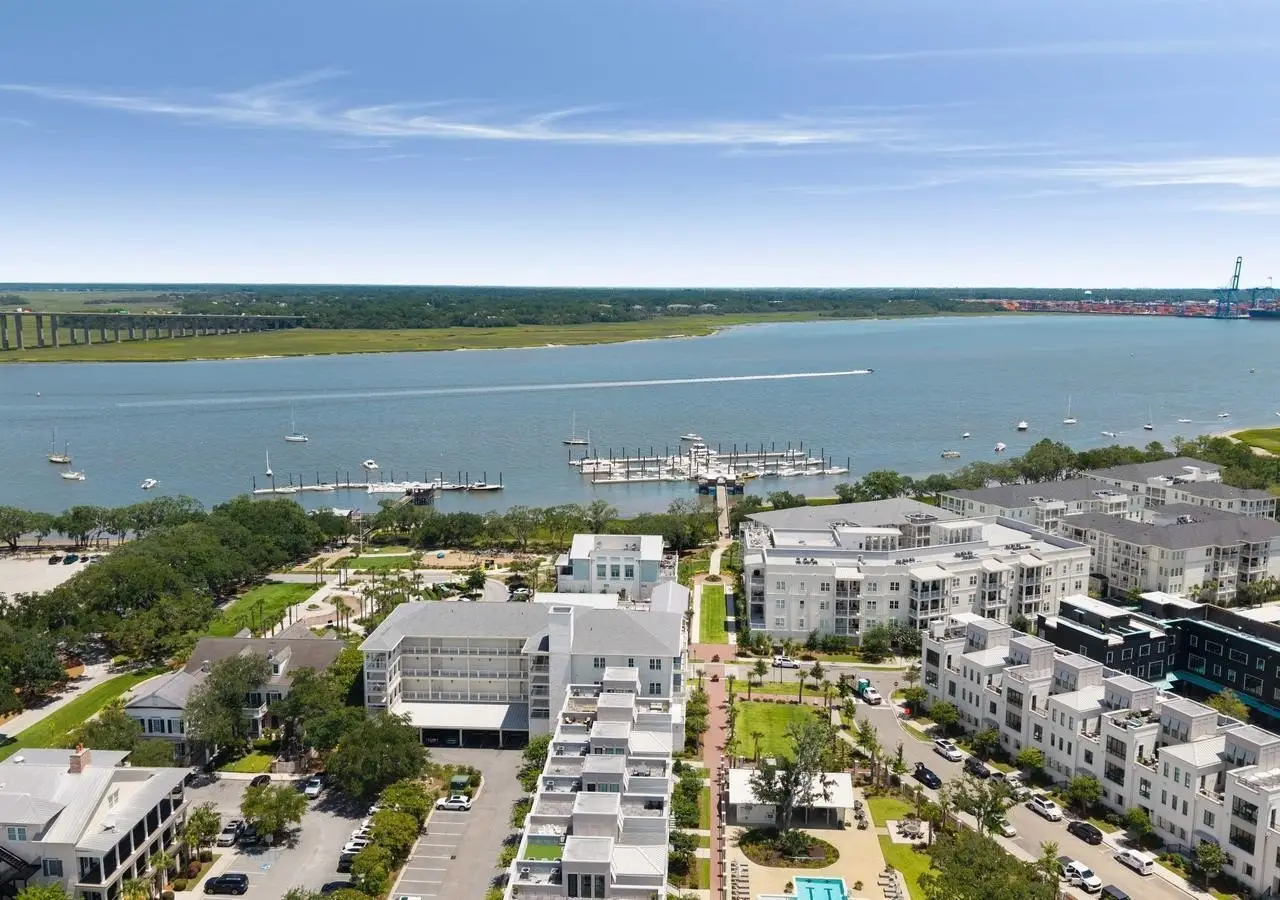 Stunning PENTHOUSE coastal 3 bedroom 3.5 bath retreat with big water views. Reside in arguably one of the most appealing condominium communities on the highly desirable Daniel Island. Ride the elevator and walk to everything from your waterfront home including shops, restaurants and concerts. Boating is directly out your front door at The Daniel Island Yacht Club or the Carefree Boat Club. Steps away travel downtown on the DI Ferry. Top notch private community fitness, pool, cabana and grilling facilities all included. This IS the lifestyle you have been dreaming of. Reside full time or lock and go with The Waterfront concierge offerings. Large luxury primary suite with custom walk in closet, gourmet eat in kitchen, upgraded appliances, ice maker, wine refrigand office space; two additional bedroom suites and large wrap around porch. Carefree living and never have to move your car! Regime fee includes most utilities, insurances and much more.