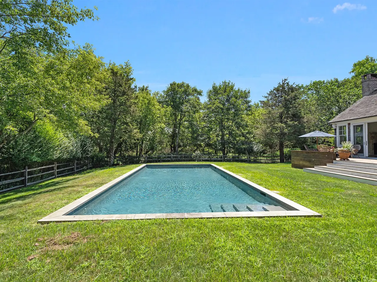 Nestled in the heart of Sag Harbor's Historic Whaling Village, this 3 bedroom 3 and 1 half bath house seamlessly blends charm and elegance. Bathed in natural light, the property boasts a modern kitchen perfect for gatherings, and a cozy living room featuring a wood-burning fireplace and cathedral ceiling. The first floor offers two bedrooms, including an en-suite, a shared hall bath, and a versatile den space with pocket doors. Ascending to the second floor, you'll discover a loft-like primary bedroom complete with a generous walk-in closet and bathroom, showcasing a double vanity and tasteful design. Step outside onto the expansive deck, ideal for entertaining, which overlooks the heated gunite pool and a serene wildlife reserve. Set on a .42-acre lot, this home provides a sense of seclusion and tranquility while being mere moments from the vibrant heart of Sag Harbor Village.
