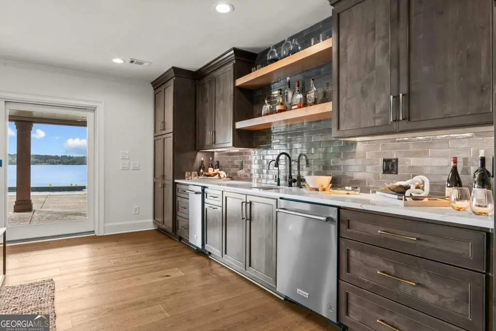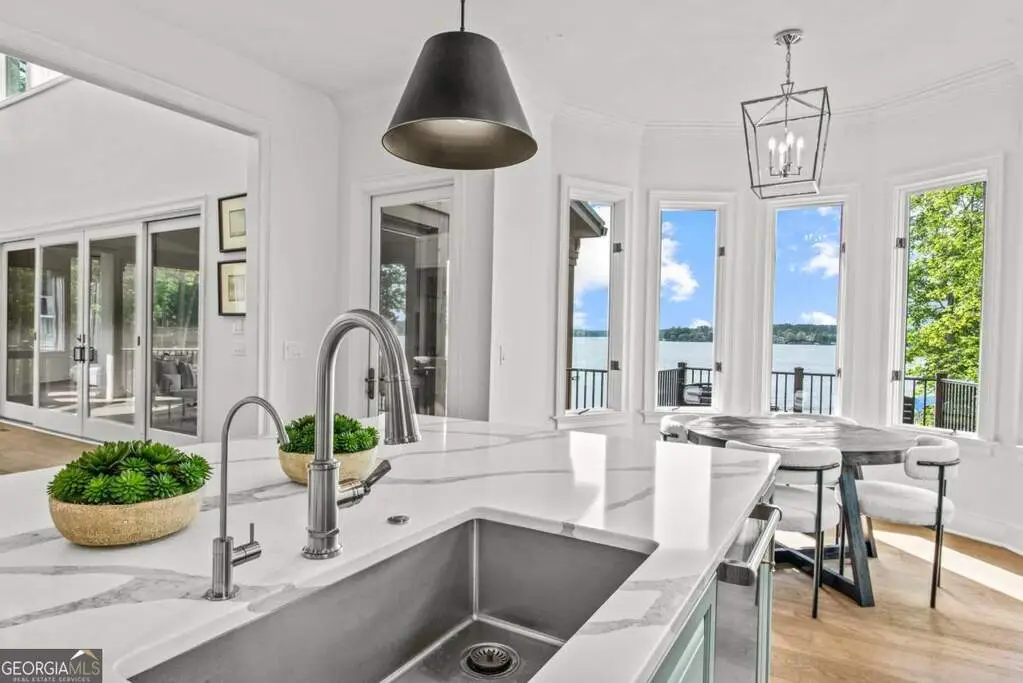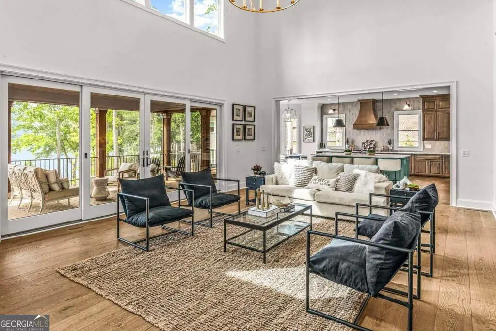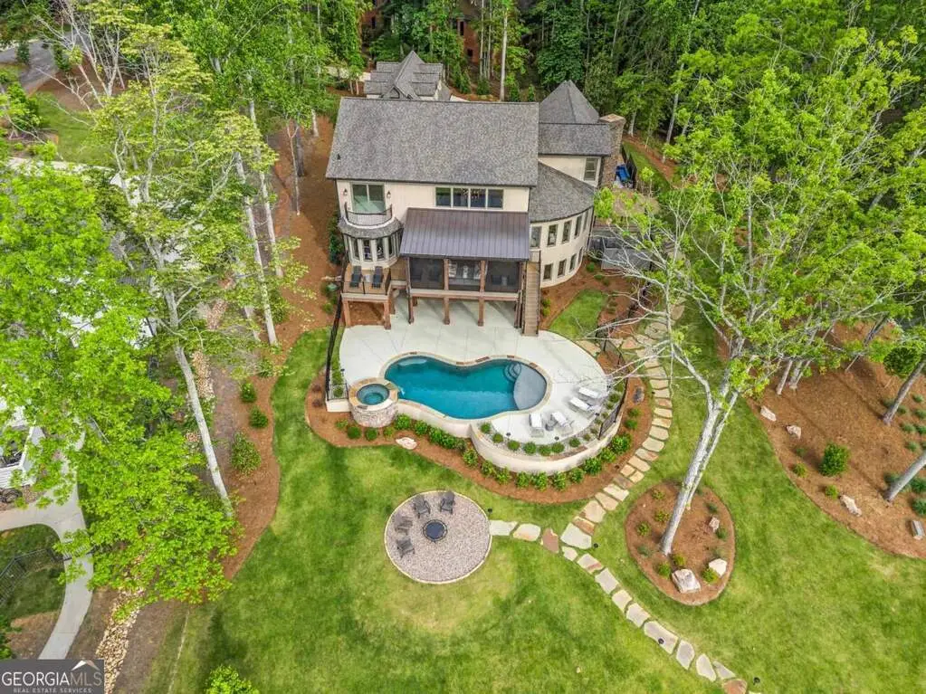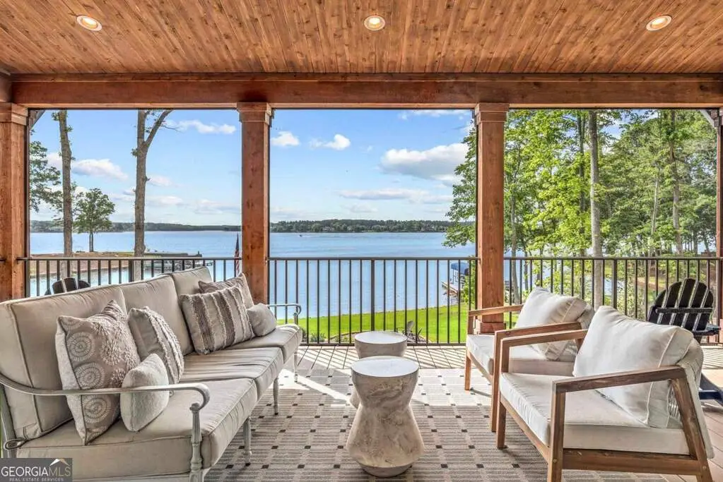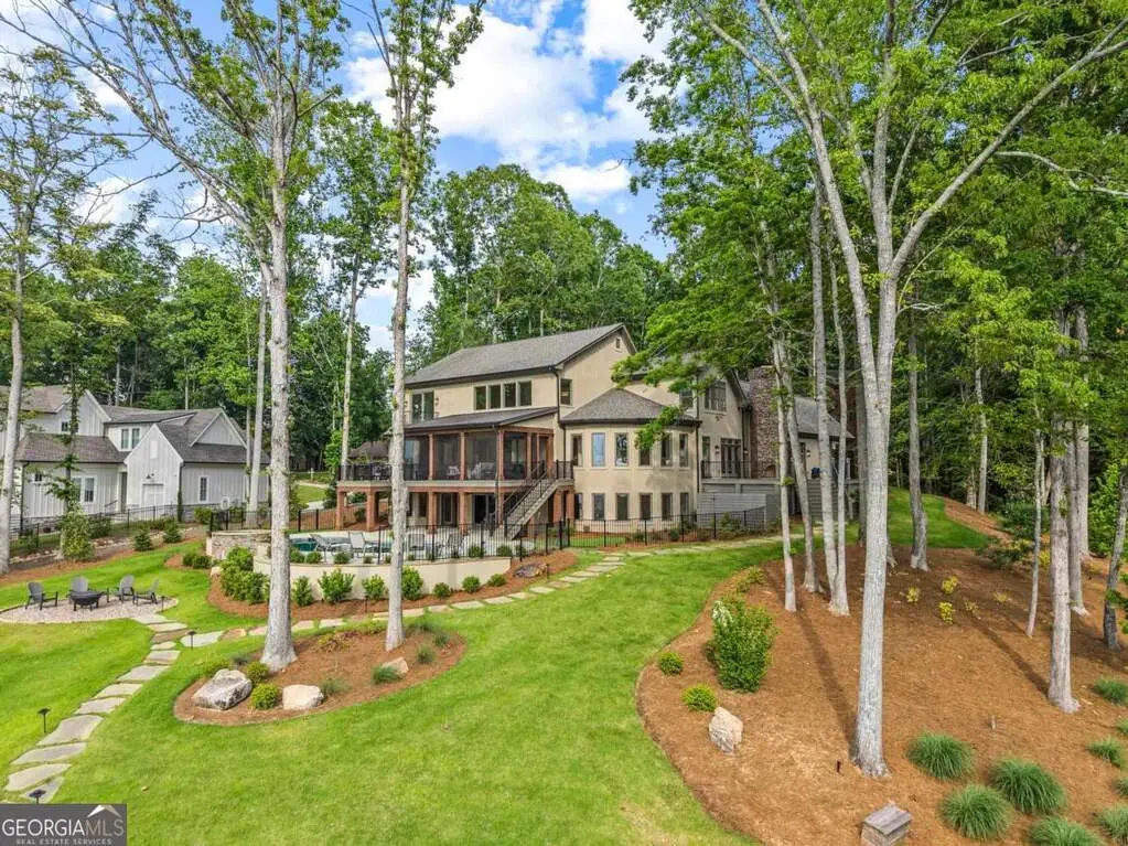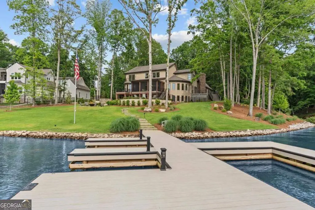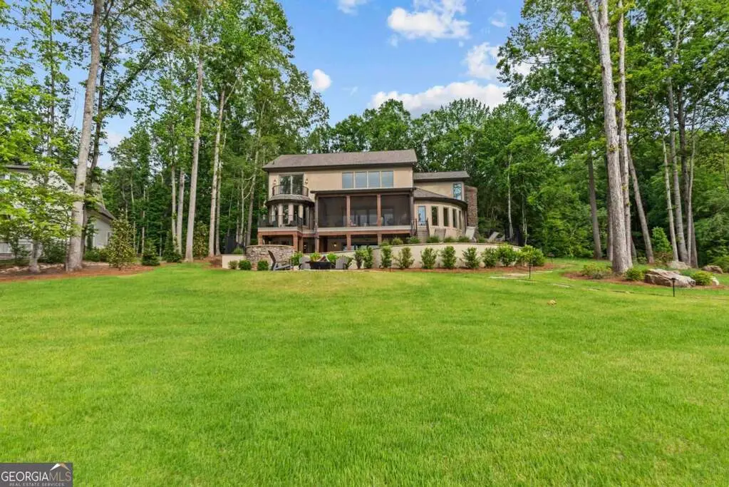 OUTSTANDING PANORAMIC VIEWS - 6BR/6.5BA LAKEFRONT HOME IN REYNOLDS AT GREAT WATERS!! WELCOME TO YOUR STUNNING LAKESIDE RETREAT, COMPLETELY REMODELED IN 2024 AND BOASTING OVER 325 FT OF LAKEFRONTAGE WITH UNPARALLELED VIEWS. THIS EXCEPTIONAL HOME FEATURES AN OPEN FLOOR PLAN DESIGNED FOR MODERN LIVING AND ENTERTAINMENT. WITH SOME OF THE BIGGEST VIEWS OF THE LAKE AND AMPLE SPACE FOR ENTERTAINING, THIS HOME IS A MUST-SEE FOR THOSE SEEKING LUXURY, COMFORT, AND UNPARALLELED LAKESIDE LIVING. DISCOVER YOUR NEW OASIS WHERE EVERY DETAIL EXUDES SOPHISTICATION AND RELAXATION. UPON ENTRY, YOU ARE GREETED WITH A TWO-STORY FOYER AND A GREAT ROOM WITH SLIDING DOORS AND A WALL OF WINDOWS THAT PROVIDES PANORAMIC LAKE VIEWS!! STEP OUTSIDE ONTO THE SCREENED PORCH OVERLOOKING THE NEWLY BUILT POOL AND FIRE-PIT AREA, PERFECT FOR AL FRESCO DINING AND RELAXATION. PREPARE CULINARY DELIGHTS IN THE GOURMET KITCHEN WITH TOP-OF-THE-LINE WOLF AND SUB-ZERO APPLIANCES, A LARGE QUARTZ-TOPPED ISLAND, LAKESIDE DINING, AND A WALK-IN PANTRY. HARDWOOD FLOORS FLOW THROUGHOUT, COMPLEMENTING THE ELEGANT AESTHETIC. THE OWNER'S PRIVATE WING FEATURES A SPACIOUS FIRESIDE BEDROOM, A PRIVATE STUDY, AND A LAKESIDE SITTING AREA. THE LUXURIOUS BATHROOM HAS DOUBLE VANITIES, HIS/HER CLOSETS, AN OVERSIZED WALK-IN SHOWER, AND A RELAXING GARDEN TUB. UPSTAIRS PROVIDES TWO ADDITIONAL EN-SUITE BEDROOMS AND A COZY SITTING AREA WITH 1/2 BATH. THE MAIN HOUSE HAS 6, 796 SQFT AND ABOVE THE 3-CAR GARAGE IS AN EXPANSIVE BUNK ROOM/IN-LAW SUITE WITH A FULL BATH IDEAL FOR GUESTS OR EXTENDED FAMILY. THE TERRACE LEVEL IS AN ENTERTAINER'S DREAM FEATURING TWO BEDROOMS, 2 BATHS, AN EXERCISE ROOM, YOGA/FLEX ROOM, AND A FULL BAR COMPLETE WITH REFRIGERATOR, DISHWASHER, AND ICE MAKER. LARGE SLIDING DOORS PROVIDE EASY WALK-OUT ACCESS TO THE LAKESIDE OASIS, INCLUDING A GORGEOUS POOL, JACUZZI, FIREPIT, A MAX DOCK WITH DEEP WATER, AND OVER 325 FEET OF WATERFRONTAGE WITH A NEW SEA WALL. DON'T MISS THE OPPORTUNITY TO OWN THIS MAGNIFICENT LAKEFRONT RETREAT IN REYNOLDS AT GREAT WATERS!! GOLF MEMBERSHIP IS AVAILABLE.