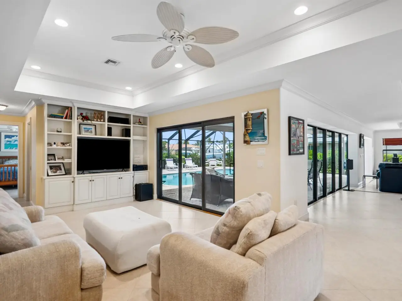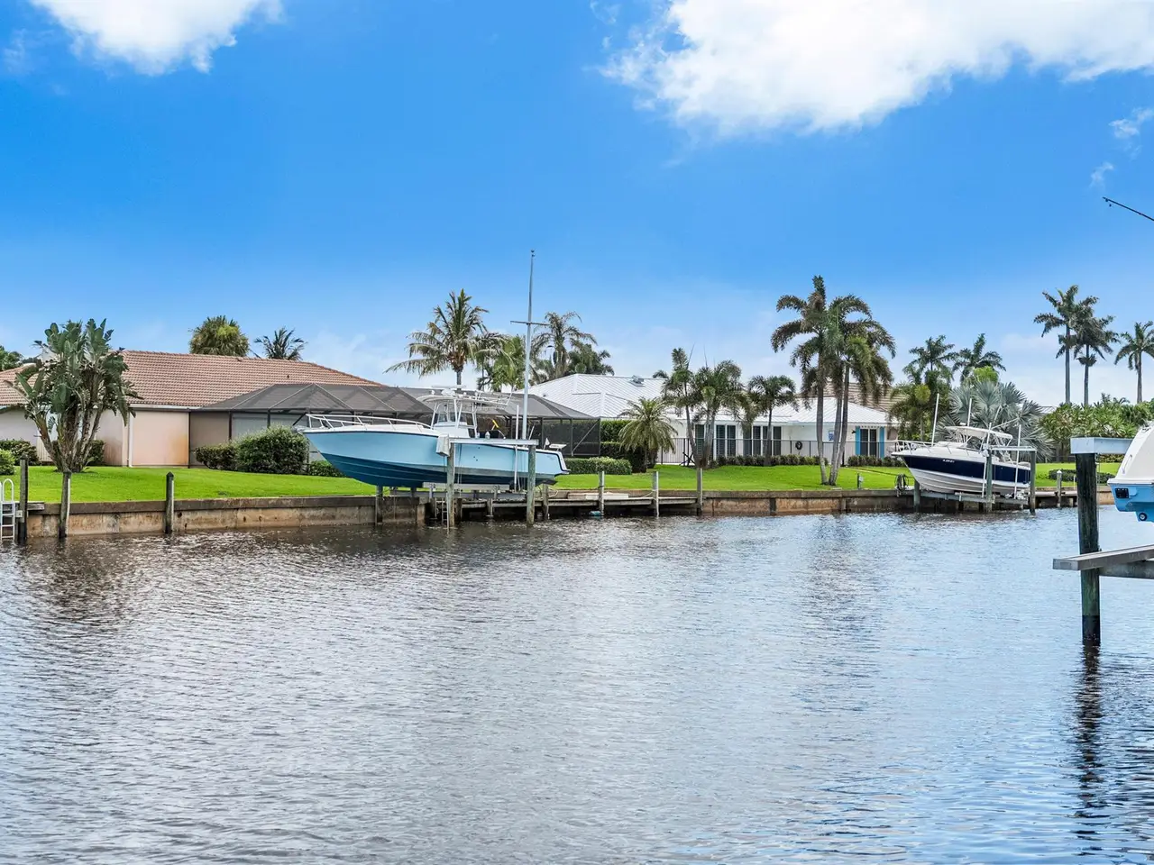 Welcome Home to your impeccably renovated 3-bdrm, 3-bath waterfront home with private dock located in the prestigious, guard-gated Stuart Yacht & Country Club. Perfectly positioned on a quiet cul-de-sac with direct canal access, this residence blends luxury living with effortless coastal charm. Designer chef's kitchen boasts custom cabinetry, Thermidor 6‑burner gas range & wall oven, wine fridge and newer S/S fridge, dishwasher & microwave. Airy and open living area perfect for entertaining or just relaxing, impact glass window's/sliders throughout, owner's suite w/ spa bath; 2 en‑suite guest rooms. Step through the sliders to your newly screened lanai and stunning pool! 30,000 lb boat lift with newer Seawell cap and tiebacks (2019). Enjoy this low HOA gated community with golf