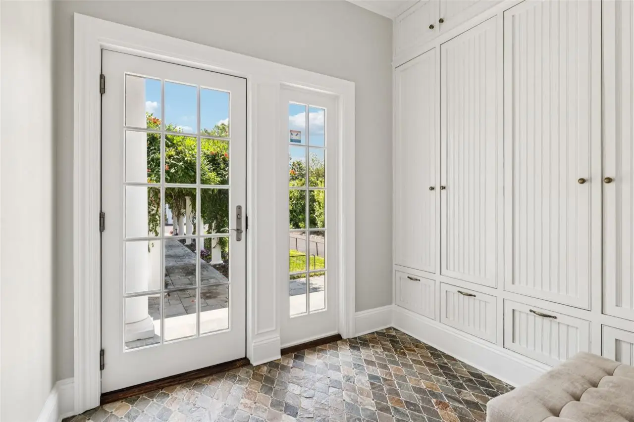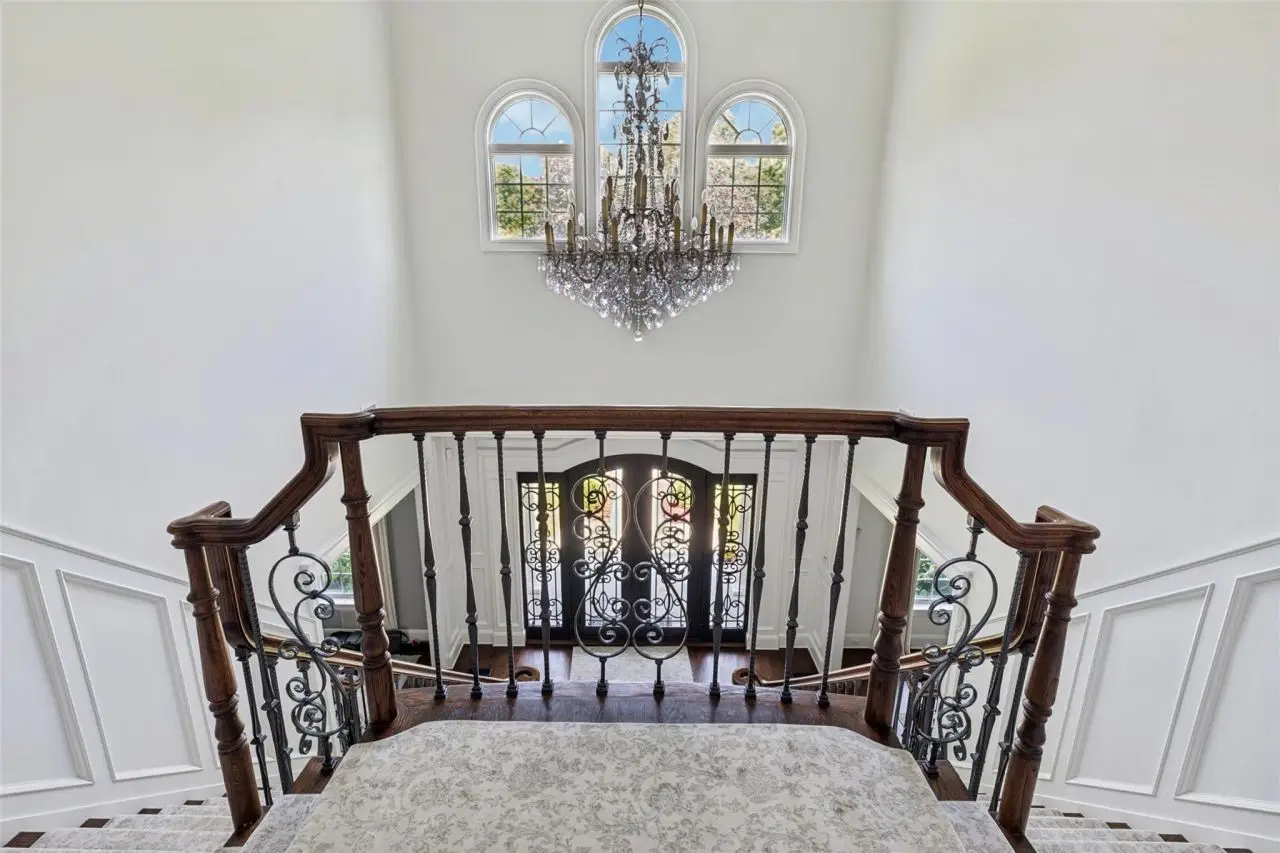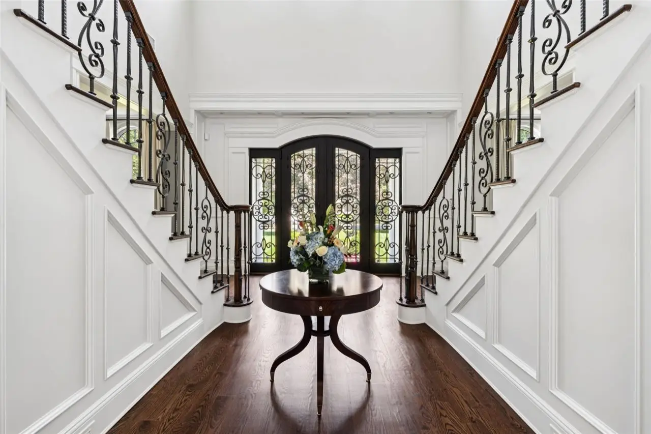 Two-story foyer with double staircase