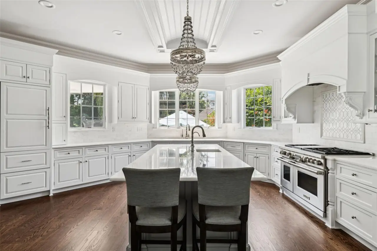 Gourmet eat-in kitchen with custom cabinetry