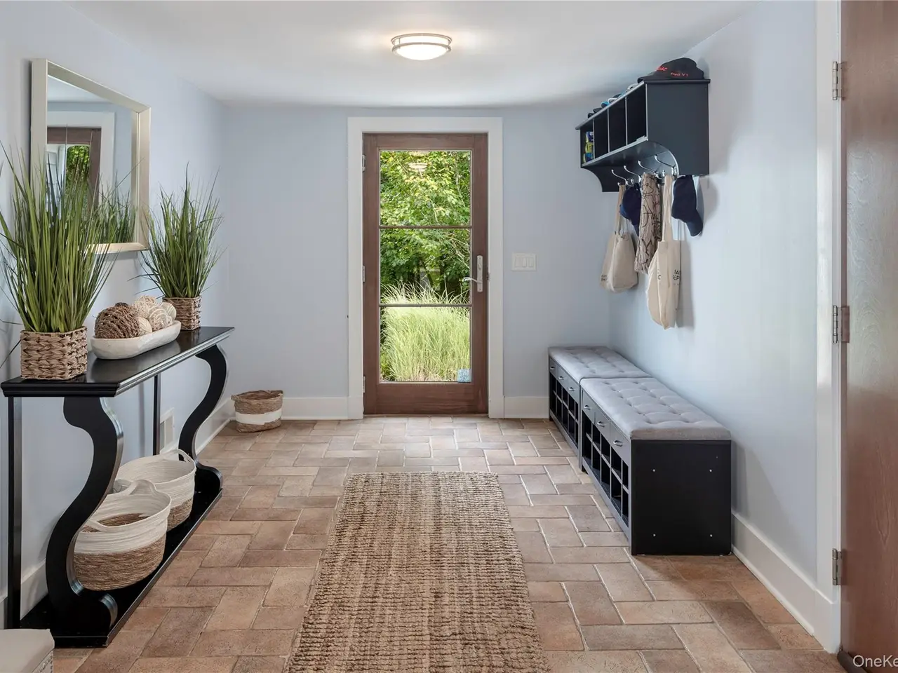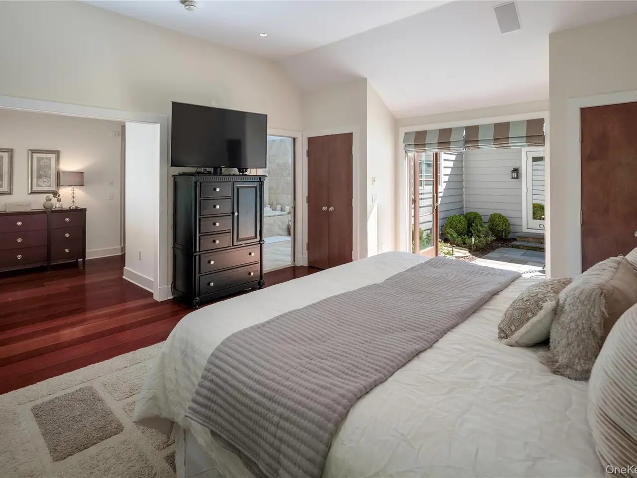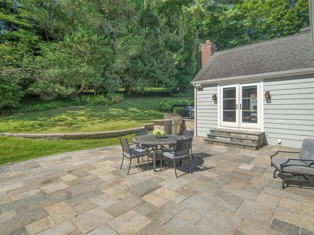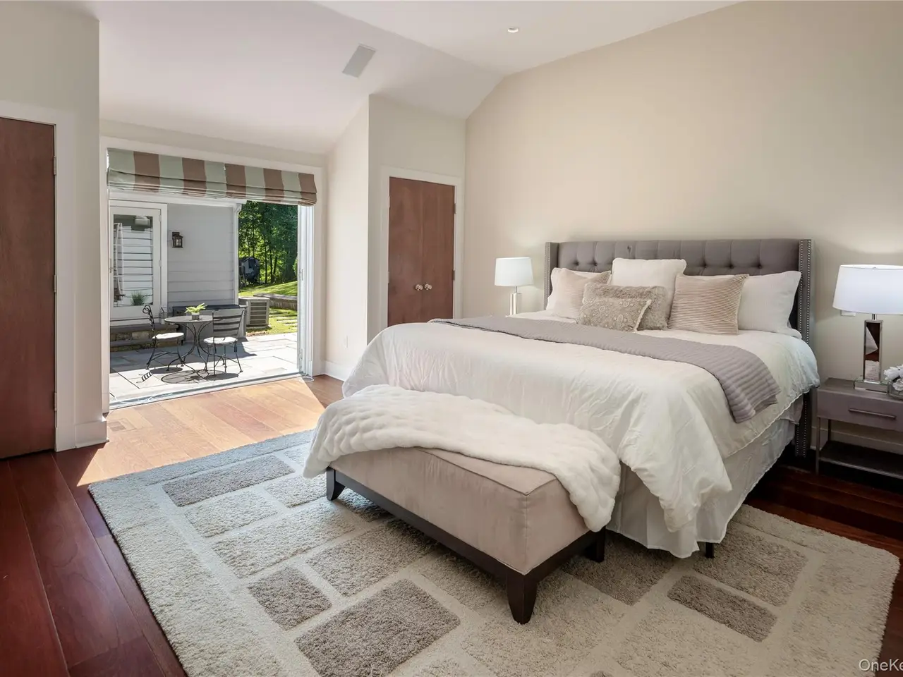 French doors to opposing patios