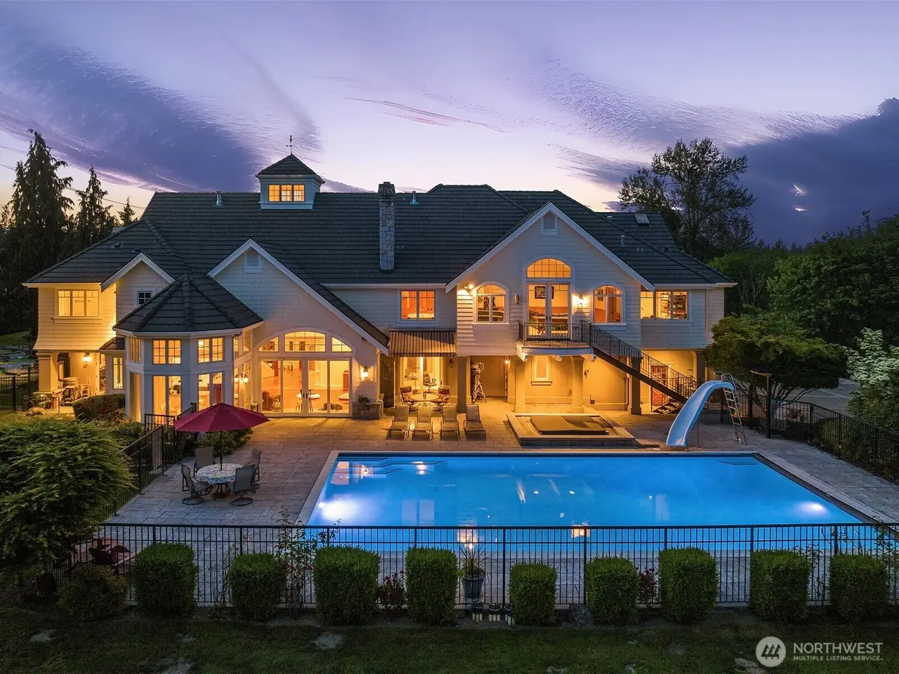 Welcome to a timeless masterpiece by Odegard Gockel, nestled in the heart of the Sammamish Plateau. This exceptional estate blends casual equestrian charm with refined luxury across nearly 6 acres of usable land. The 6,550 sq ft home offers a seamless layout, featuring formal and great room living spaces, a tranquil waterfall entry, and expansive amenities including an in-ground pool, full tennis/sport court, and private putt-putt golf. Crafted by a Street of Dreams builder, this estate is a rare fusion of elegance and versatility. Whether your lifestyle calls for privacy, space for horses or farm animals, or simply relaxing poolside, this property delivers boundless opportunities - all just minutes from I-90 and in city conveniences.
