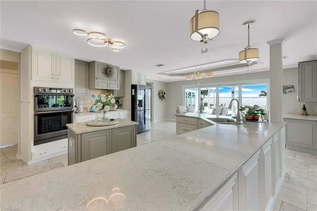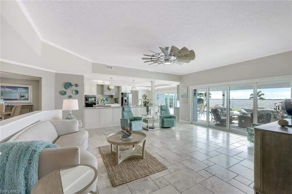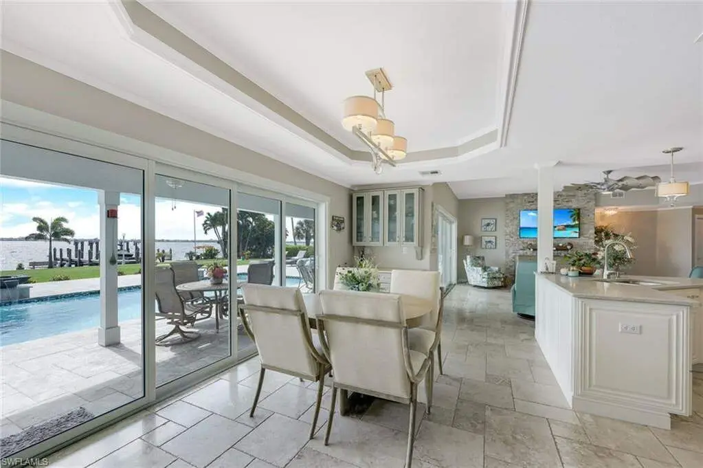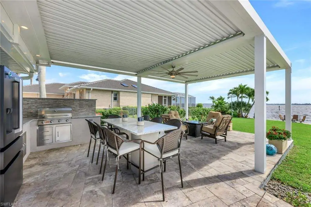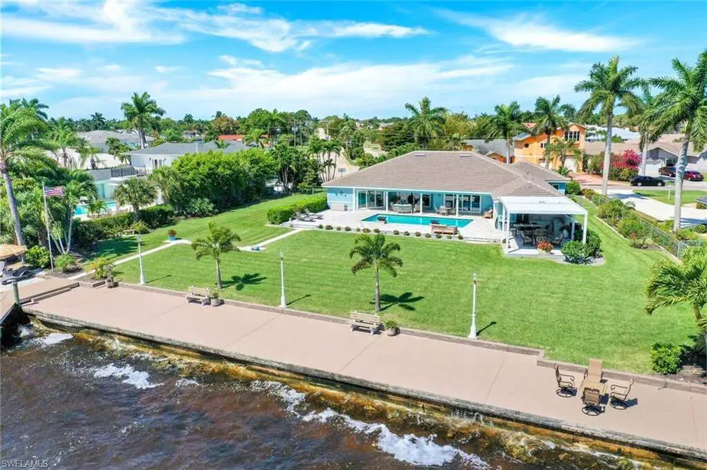 This perfect home is located on one of the largest, most spectacular riverfront lots in all of Cape Coral. This estate size lot features over 170 feet of water frontage, on 2/3 of an acre of land. The home has never flooded in any of the storms. This home was completely redesigned from top to bottom in 2019. New tile roof, new electrical panels, new impact front doors, windows and sliders. The kitchen and bathrooms were renovated to the highest standards. The living area flows together and maximizes the views and the natural light. All appliances are top of the line, Wi-Fi enabled. The flooring is beautiful marble tile throughout. Everyone will appreciate the custom finishes and high-end touches throughout this house. The outdoor space is incredible! There is a dedicated pool bath for outdoor entertaining. The pool deck area matches the indoor tile for continuity of design and there are fire features and waterfalls at the poolside. You'll find numerous spots to soak up the sun and there is a covered pergola with a rain sensor roof which opens and closes automatically. The huge dock features a 40,000 lb. lift & composite decking. When it is time to unwind, grab your pina colada and head to the sandy beach to relax! The owner will offer financing to a qualified buyer.