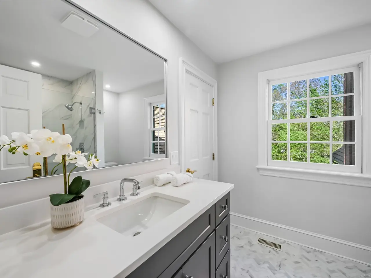 Nestled at the end of a private lane and set on 4.4 beautifully landscaped acres, this stunning brick colonial-crafted by award-winning builder Kaali-Nagy-offers nearly 7,000 square feet of luxurious living space. A dramatic three-story entryway fills the home with natural light, leading into a formal living room with a fireplace and French doors. A richly paneled office tucked just behind the living room includes built-ins, a wet bar and a second fireplace, creating the perfect work-from-home retreat. Designed for entertaining, the sprawling dining room easily accommodates large gatherings and opens onto a spacious deck overlooking spectacular grounds filled with specimen trees and a designated play area. The newly renovated chef's kitchen features quartz countertops, top-tier appliances, a large island, and a sunlit eat-in area. The adjacent family room showcases a vaulted ceiling, a floor-to-ceiling fieldstone fireplace, and French doors that open to the tranquil exterior. Upstairs, the expansive primary suite boasts its own fireplace, a brand-new spa-like bathroom with a soaking tub, oversized walk-in shower, and dual walk-in closets. Four additional en-suite bedrooms, all with brands new bathrooms, provide ample space for family and guests. A vaulted-ceiling bonus room, a cozy game room, and a second office or exercise space offer flexibility for every lifestyle. An area off the bonus room could easily be transformed into an ideal au-pair or guest suite. Located within walking distance to St. Luke's School and less than 10 minutes to the heart of town with its charming shops and restaurants, this home offers the perfect blend of privacy, tranquility, luxury, and convenience. Truly a special opportunity to own an exceptional property. Pool Design in Documents.