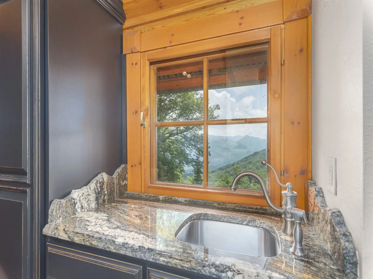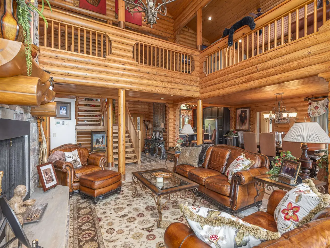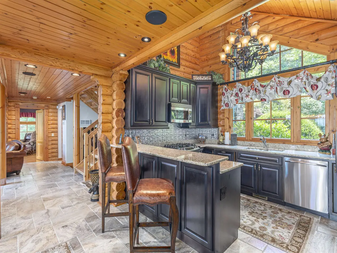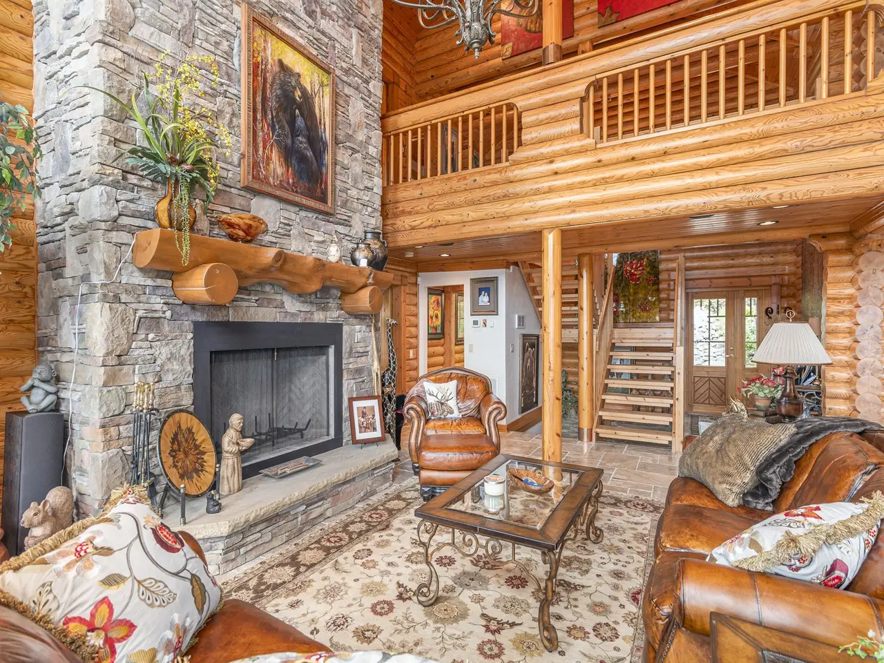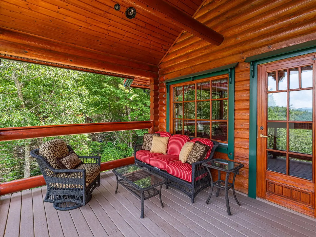 Discover this breathtaking Honka log home of Scandinavian design & precision nestled atop Maggie Valley in gated Laurel Heights. At 4800' elevation, enjoy cool temps and unparalleled long-range views from countless windows. Each of the three luxurious primary suites is a private retreat, boasting spacious rooms, walk-in closets and showers, and garden tubs for ultimate relaxation. For the culinary enthusiast, the main level chef's kitchen is seamlessly connected to the great room, which features a towering wall of windows framing magnificent south-facing views. Downstairs you'll find a second full kitchen, dining area, den, and a sprawling primary suite. The rec room/den is a great secondary entertaining space for gatherings. While mountain living fosters relaxation, the versatile upstairs loft serves as an ideal home office (or a spacious fourth sleeping room). Outside, the curated grounds are filled with exceptional, usable spaces to revel in the fresh mountain air.