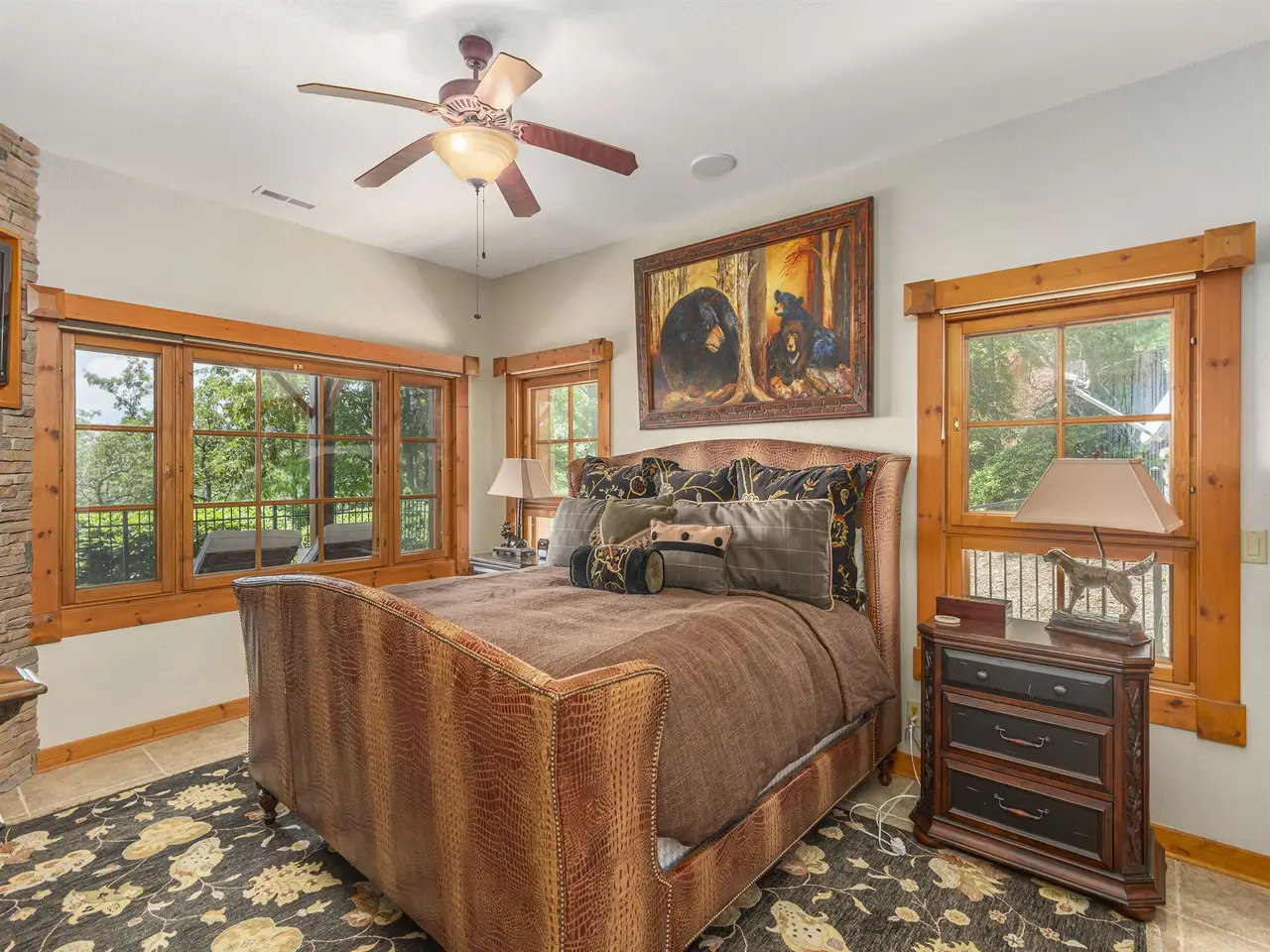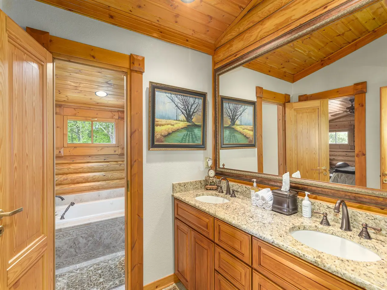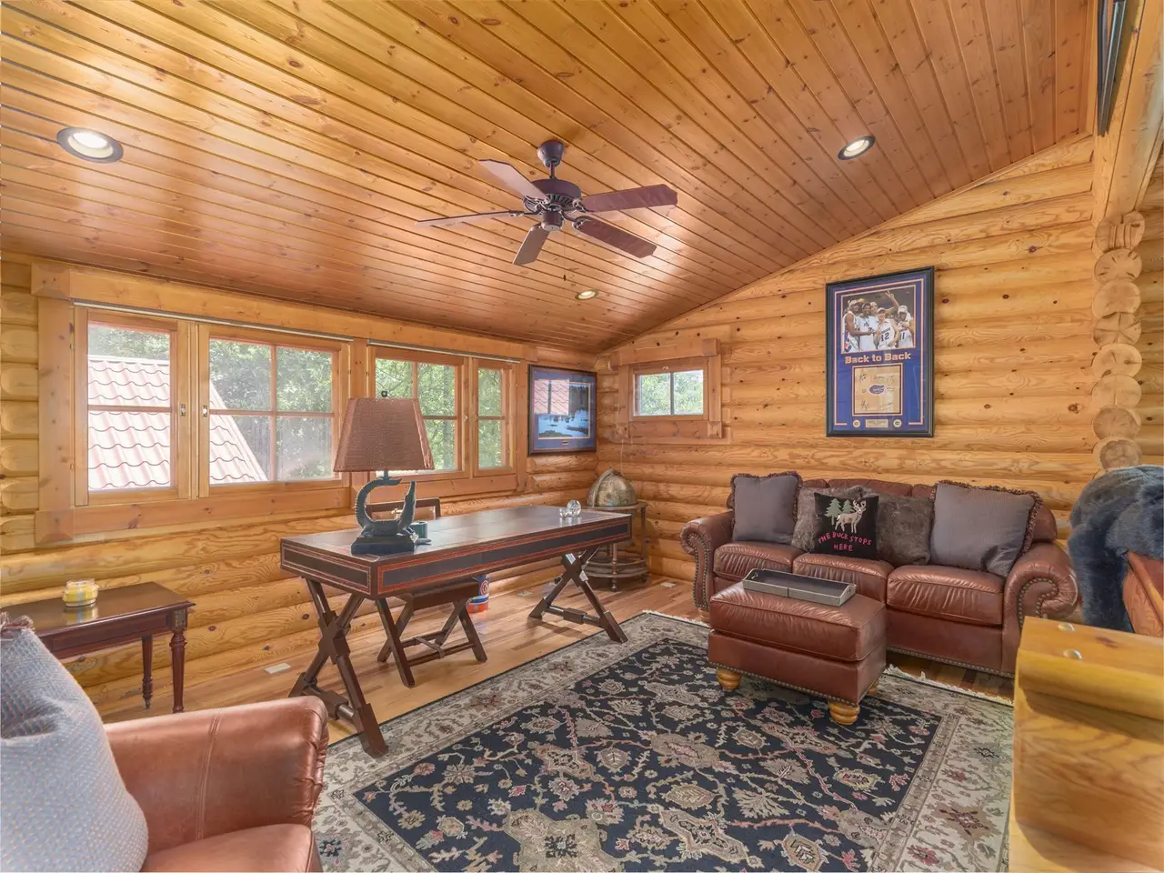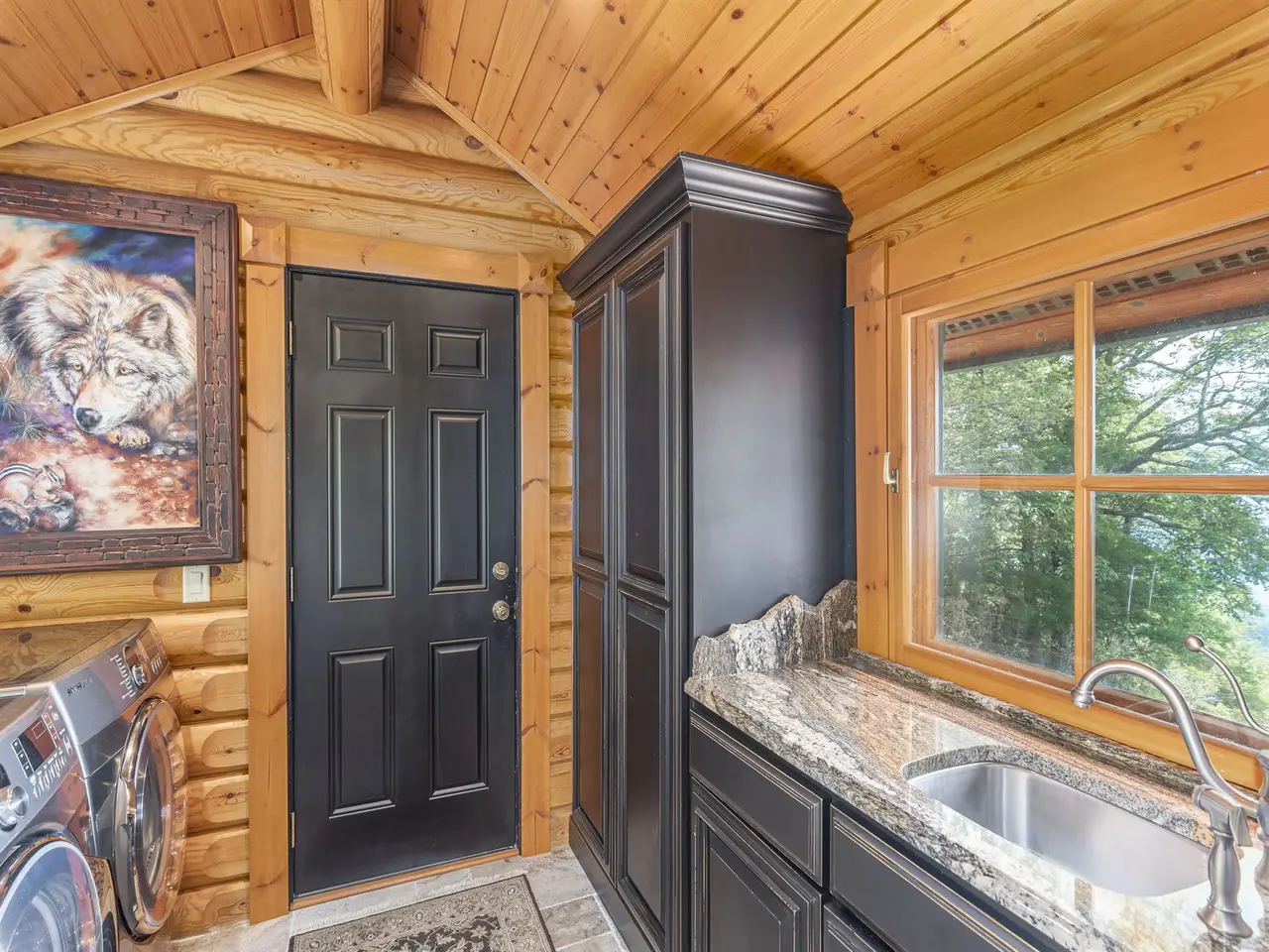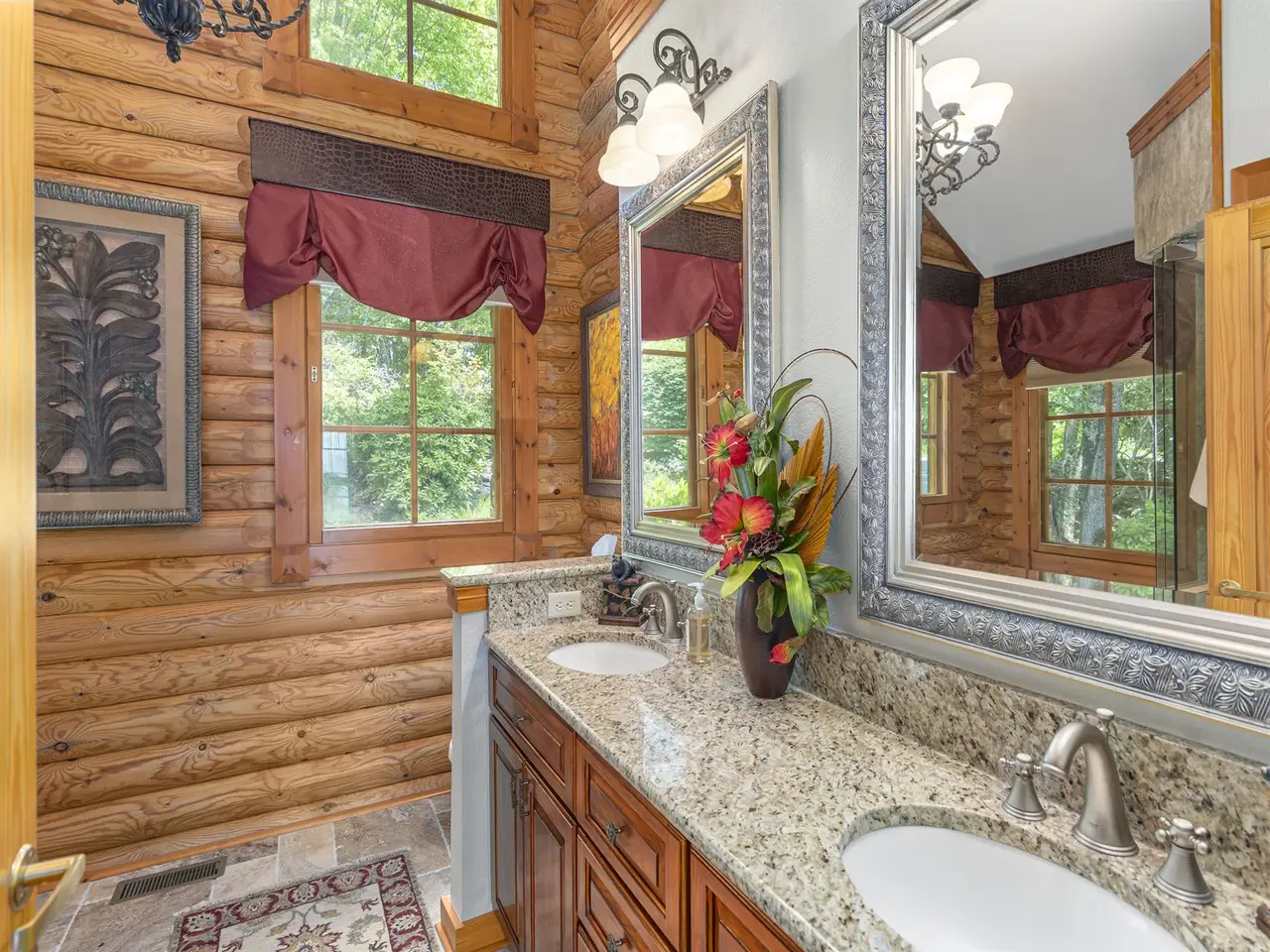 Discover this breathtaking Honka log home of Scandinavian design & precision nestled atop Maggie Valley in gated Laurel Heights. At 4800' elevation, enjoy cool temps and unparalleled long-range views from countless windows. Each of the three luxurious primary suites is a private retreat, boasting spacious rooms, walk-in closets and showers, and garden tubs for ultimate relaxation. For the culinary enthusiast, the main level chef's kitchen is seamlessly connected to the great room, which features a towering wall of windows framing magnificent south-facing views. Downstairs you'll find a second full kitchen, dining area, den, and a sprawling primary suite. The rec room/den is a great secondary entertaining space for gatherings. While mountain living fosters relaxation, the versatile upstairs loft serves as an ideal home office (or a spacious fourth sleeping room). Outside, the curated grounds are filled with exceptional, usable spaces to revel in the fresh mountain air.