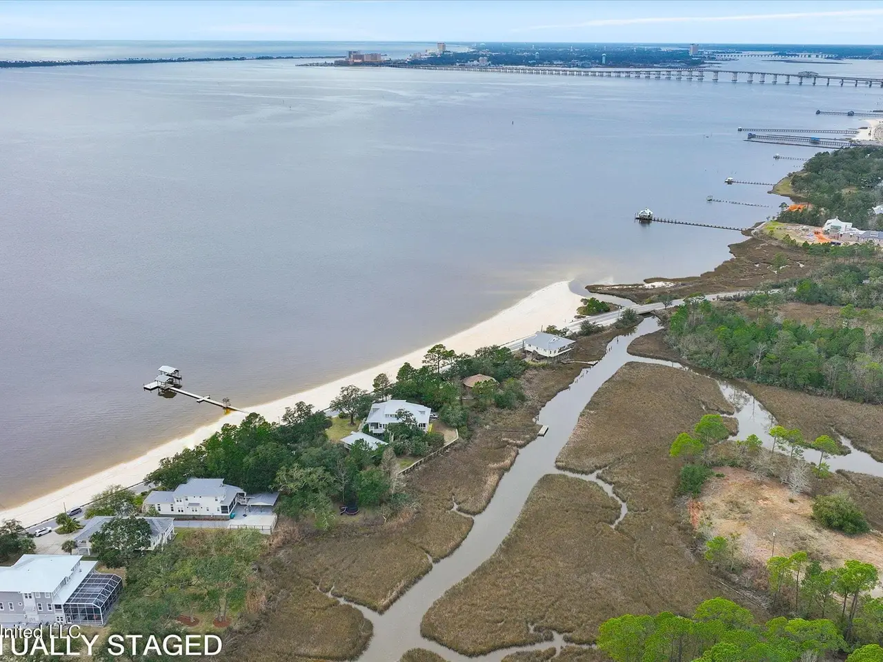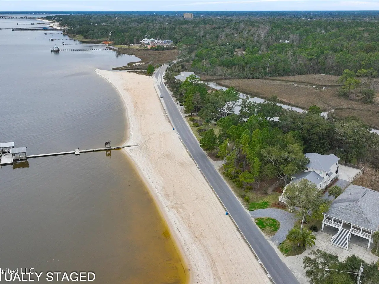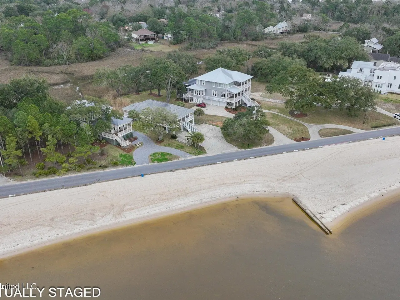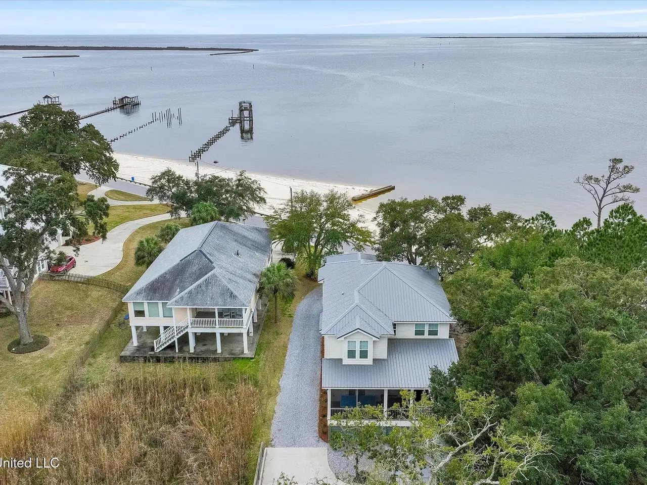 Rare opportunity on sought-after East Beach Drive, within the golf cart district and just minutes from downtown Ocean Springs! This stunning custom-built 2019 home combines breathtaking views of both the beach and the bayou with luxury, comfort, and location all in one exceptional package. From the moment you arrive, the attention to detail and quality craftsmanship are unmistakable. Inside, you'll find heart-of-pine flooring flowing through both levels, designer lighting, and expansive windows framing captivating water views from nearly every room. The living room impresses with its tall, dark-stained wood ceilings, large brick hearth fireplace, and abundant natural light. Adjacent to the living area is a formal dining room with stunning glass pocket doors, open shelving, and a built-in wine cooler -- perfect for entertaining guests. This versatile space could also serve as a home office, if desired. Off the hallway leading to the kitchen, you'll find a convenient half bath. The kitchen is a chef's dream, featuring leathered quartzite countertops, a massive wood center island, built-in gas cooktop, double ovens, and a walk-in pantry with a hidden cubby for extra storage. The breakfast nook, with its built-in bench and windows overlooking the beach, provides yet another breathtaking view of the water. A well-designed mudroom with custom built-ins and bench seating adds both function and charm. Step outside to the screened back porch, where you'll enjoy peaceful views of the bayou and private access to the primary suite. Just beyond is an outdoor kitchen with a decorative surfboard bar top and sweeping beach views, ideal for entertaining or relaxing. The primary suite, located on the main floor, offers a spa-like ensuite bath complete with marble counters, a soaking tub, glass shower, and dual walk-in closets with custom built-ins and motion-sensor lighting. Upstairs, the home continues to impress--starting with the laundry room, which features a folding counter positioned to capture one of the most beautiful views of the beach. The second floor includes three spacious bedrooms, each with large walk-in closets featuring custom built-ins. Two of the bedrooms include private ensuite baths with elegant custom finishes and gorgeous tilework. Natural light pours through the windows, highlighting the surrounding coastal beauty and serene waterfront setting. Outdoor living is equally impressive, with panoramic views of both the beach and the bayou from the back patio--perfect for gatherings or quiet evenings by the water. The property offers a circular driveway and electric gate providing secure access to the carport and fenced backyard, ample enclosed storage beneath the home with multiple gated sections, a fenced dog run, and a detached storage shed for convenience. Properties of this caliber rarely become available--don't miss your chance to make this your New Beginning on East Beach. Some photos have been digitally altered. All measurements and information are deemed reliable but not guaranteed. Buyer should verify any and all pertinent information.