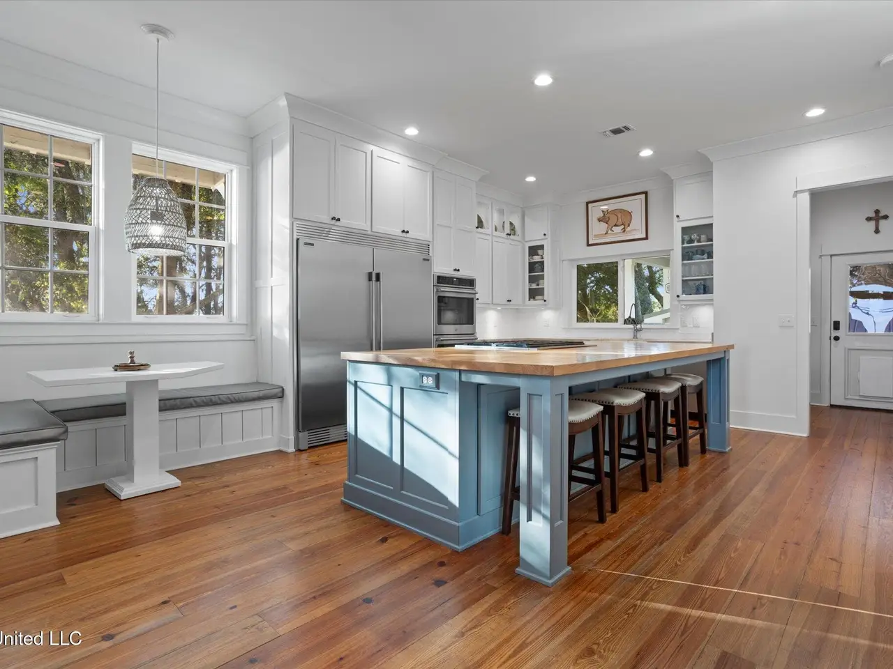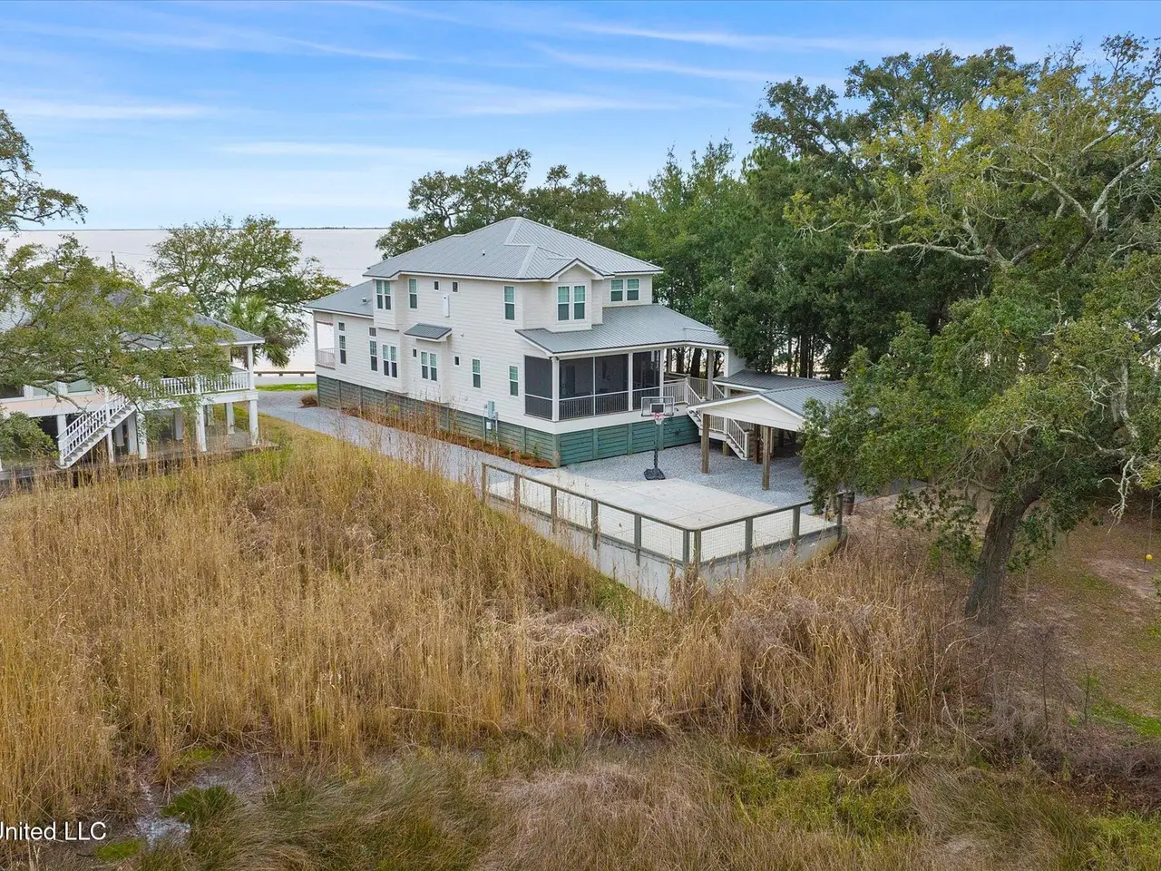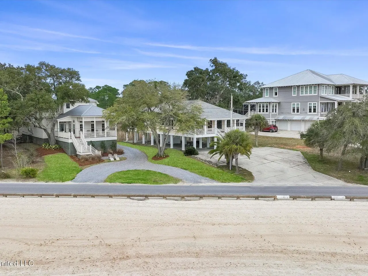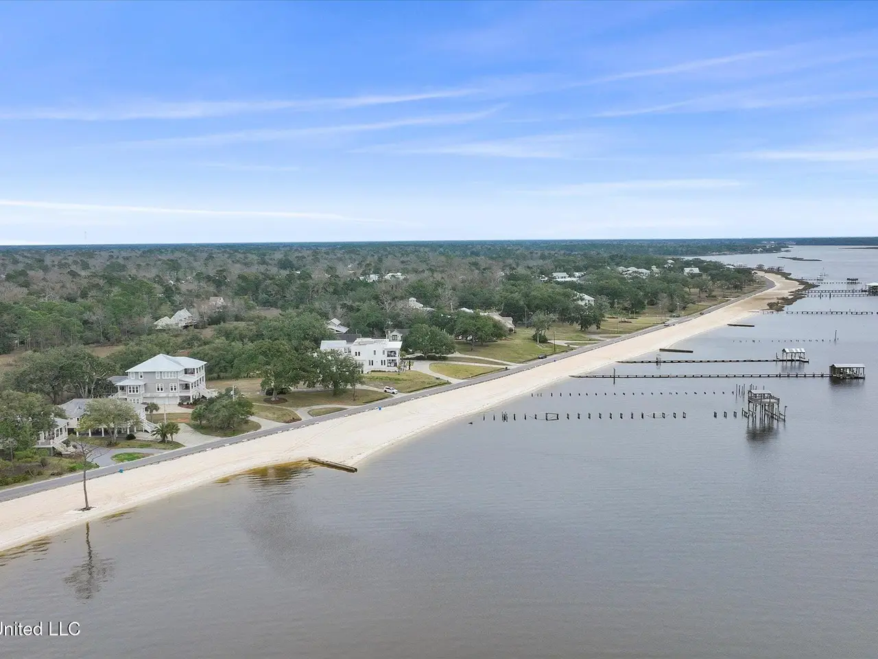 Rare opportunity on sought-after East Beach Drive, within the golf cart district and just minutes from downtown Ocean Springs! This stunning custom-built 2019 home combines breathtaking views of both the beach and the bayou with luxury, comfort, and location all in one exceptional package. From the moment you arrive, the attention to detail and quality craftsmanship are unmistakable. Inside, you'll find heart-of-pine flooring flowing through both levels, designer lighting, and expansive windows framing captivating water views from nearly every room. The living room impresses with its tall, dark-stained wood ceilings, large brick hearth fireplace, and abundant natural light. Adjacent to the living area is a formal dining room with stunning glass pocket doors, open shelving, and a built-in wine cooler -- perfect for entertaining guests. This versatile space could also serve as a home office, if desired. Off the hallway leading to the kitchen, you'll find a convenient half bath. The kitchen is a chef's dream, featuring leathered quartzite countertops, a massive wood center island, built-in gas cooktop, double ovens, and a walk-in pantry with a hidden cubby for extra storage. The breakfast nook, with its built-in bench and windows overlooking the beach, provides yet another breathtaking view of the water. A well-designed mudroom with custom built-ins and bench seating adds both function and charm. Step outside to the screened back porch, where you'll enjoy peaceful views of the bayou and private access to the primary suite. Just beyond is an outdoor kitchen with a decorative surfboard bar top and sweeping beach views, ideal for entertaining or relaxing. The primary suite, located on the main floor, offers a spa-like ensuite bath complete with marble counters, a soaking tub, glass shower, and dual walk-in closets with custom built-ins and motion-sensor lighting. Upstairs, the home continues to impress--starting with the laundry room, which features a folding counter positioned to capture one of the most beautiful views of the beach. The second floor includes three spacious bedrooms, each with large walk-in closets featuring custom built-ins. Two of the bedrooms include private ensuite baths with elegant custom finishes and gorgeous tilework. Natural light pours through the windows, highlighting the surrounding coastal beauty and serene waterfront setting. Outdoor living is equally impressive, with panoramic views of both the beach and the bayou from the back patio--perfect for gatherings or quiet evenings by the water. The property offers a circular driveway and electric gate providing secure access to the carport and fenced backyard, ample enclosed storage beneath the home with multiple gated sections, a fenced dog run, and a detached storage shed for convenience. Properties of this caliber rarely become available--don't miss your chance to make this your New Beginning on East Beach. Some photos have been digitally altered. All measurements and information are deemed reliable but not guaranteed. Buyer should verify any and all pertinent information.
