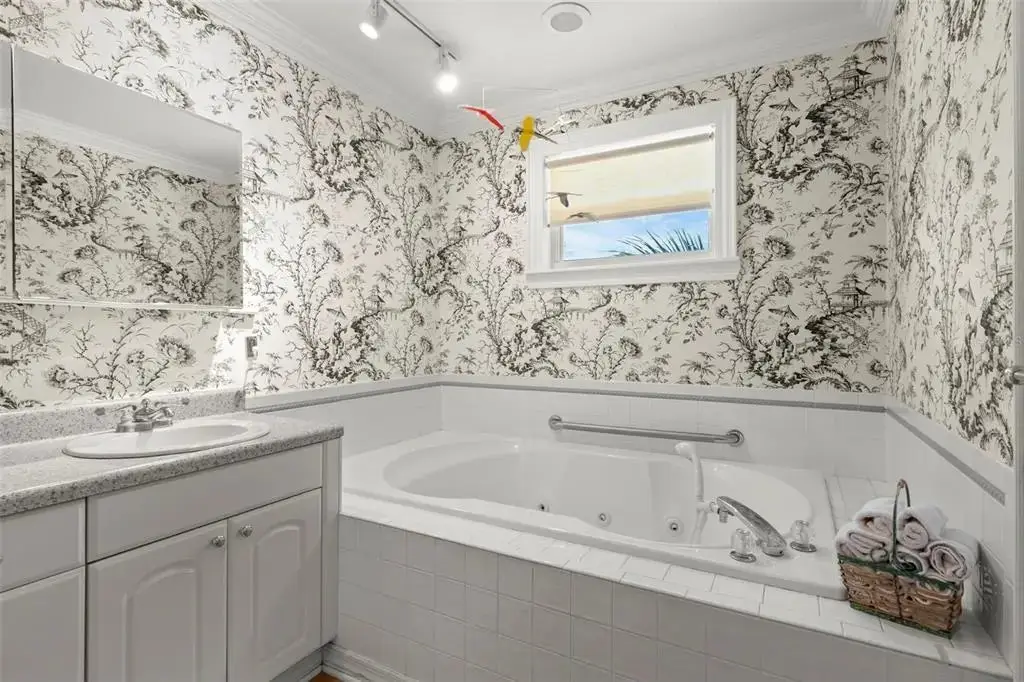 PRIME LOCATION in the highly sought-after Old Northeast neighborhood of St. Petersburg. This light and bright three-bedroom, three-bath block construction home with a den is perfectly situated just steps from the waterfront and a short stroll to vibrant downtown St. Petersburg. Nestled on a spacious 84 x 110 prestigious corner lot, the property boasts lush tropical gardens and multiple covered and outdoor seating areas, perfect for enjoying the best of Florida living. While the home has been updated over the years, it presents a wonderful opportunity for its next owner to make this location their own. The downstairs features an open and spacious layout, ideal for entertaining, including a large living room, dining room, sunroom, den, kitchen, and a convenient bedroom with an en-suite bath. Bringing in groceries is a breeze with direct access from the attached two-car garage into the home or the laundry room, which offers a sink with folding counter and ample storage. Additionally, a wet bar with built-in cabinets and a wine cooler enhances the entertaining possibilities. Upstairs highlights include a large primary suite with a spacious walk-in closet, shower and soaking tub, and a second bedroom with a full ensuite bath. Plenty of parking is available in the oversized two-car garage or on the parking pad behind with alley access. Schedule a private showing to fully appreciate this unique property in a great location!